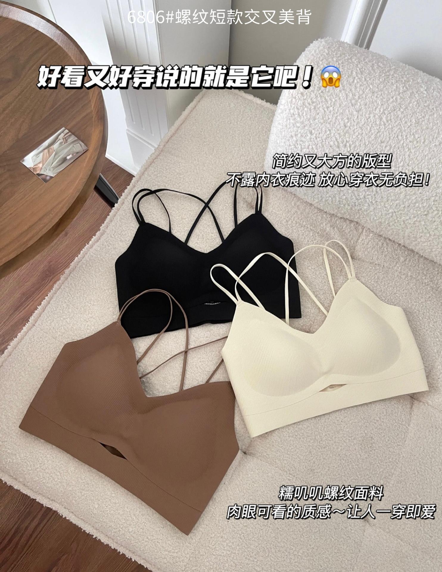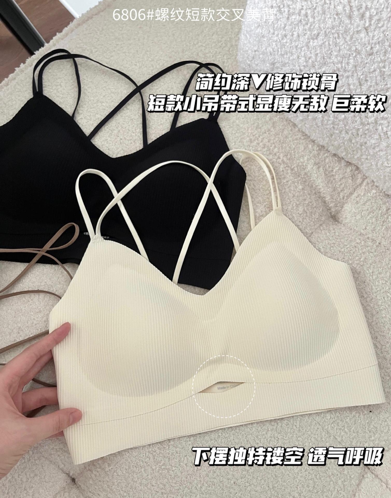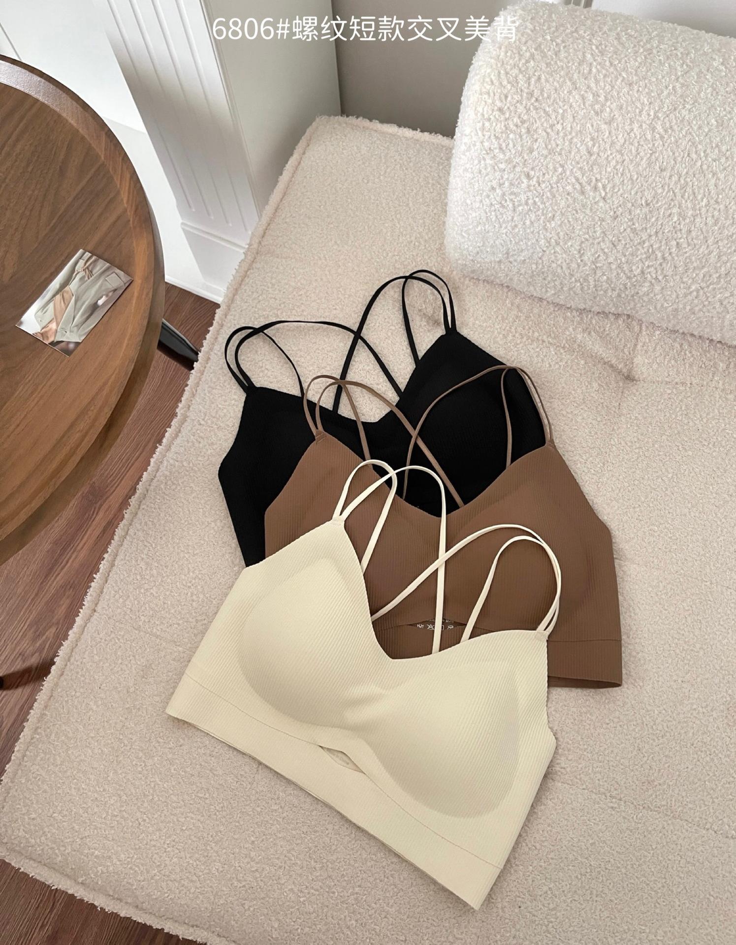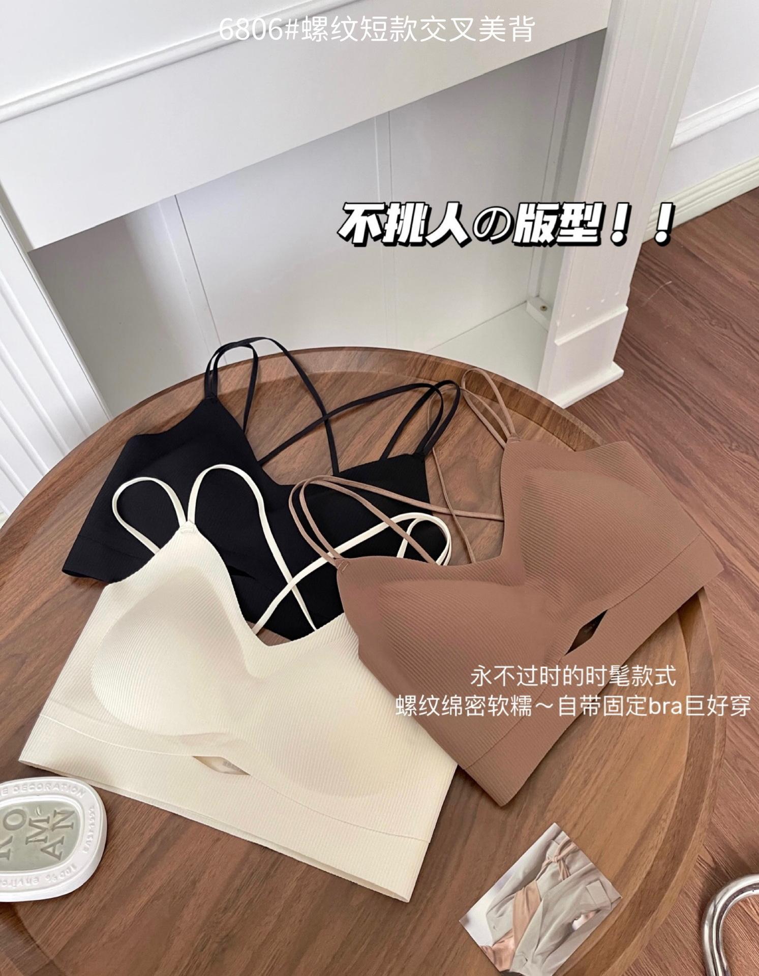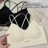 Camisola corta de hilo con escote en V de color liso estilo coreano, sin costuras, con espalda cruzada, para mujer