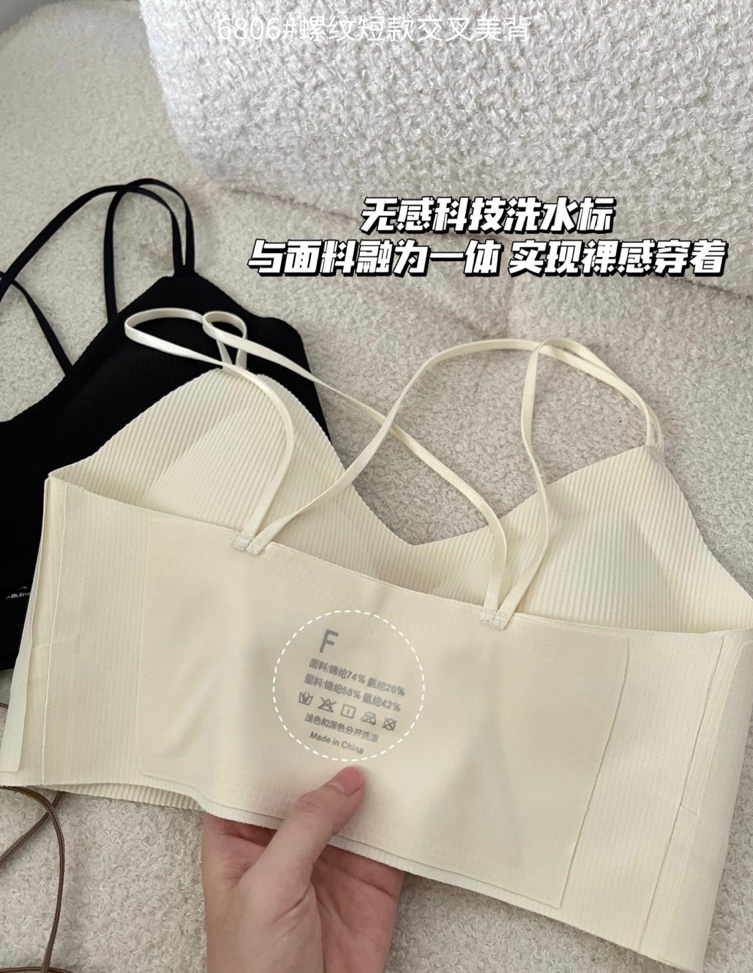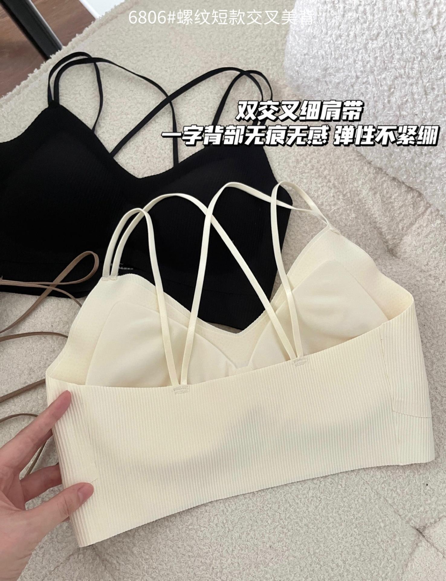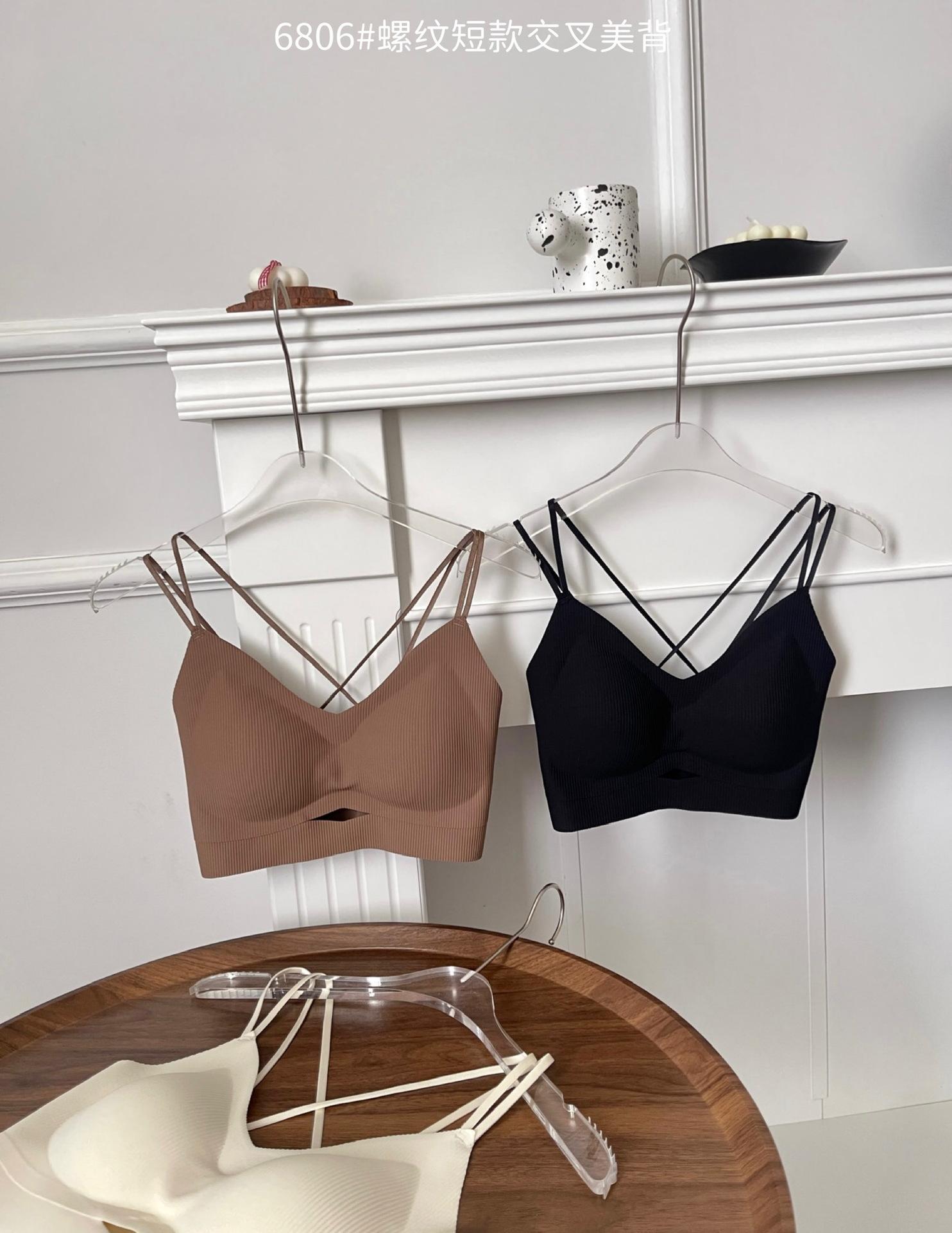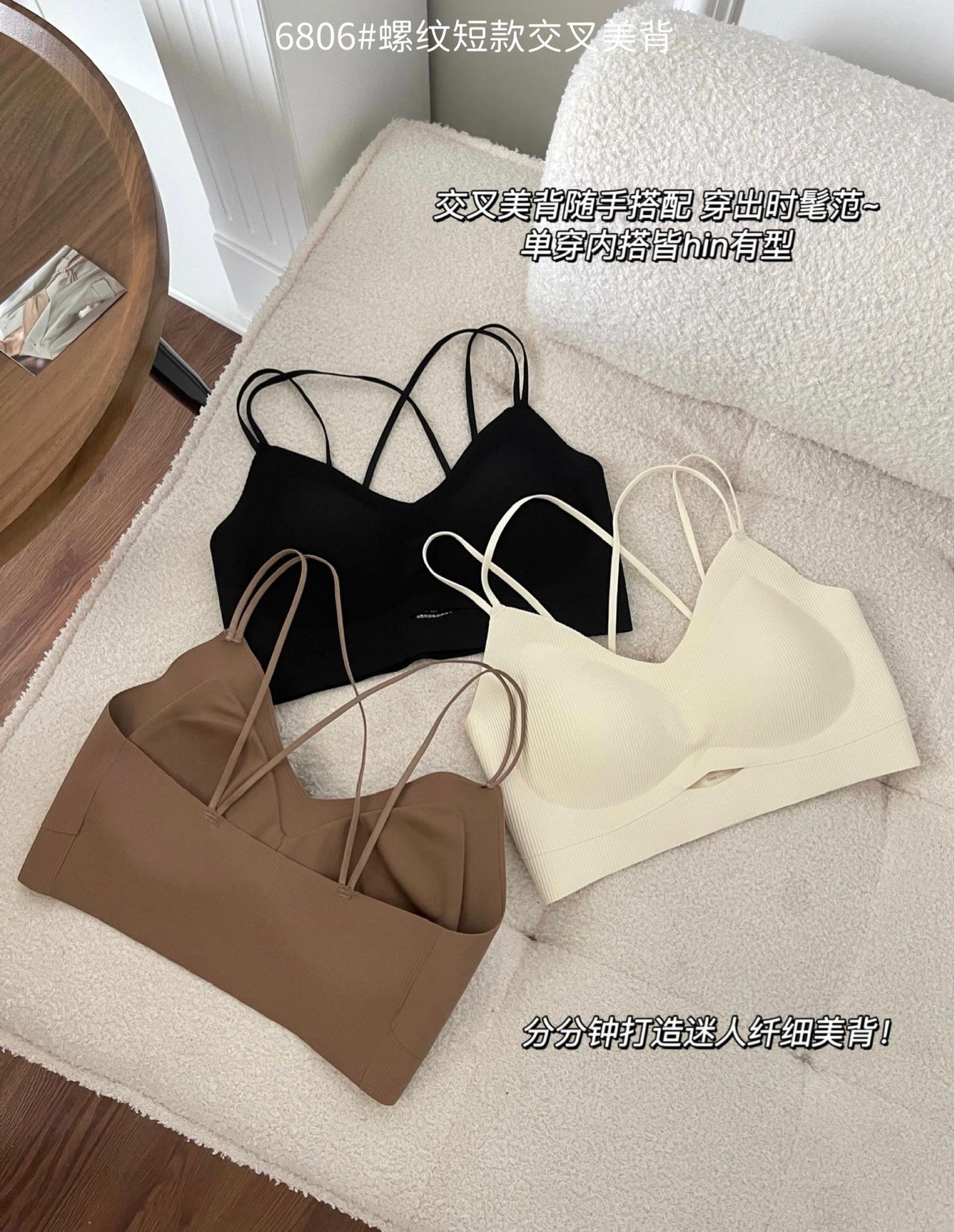 Camisola corta de hilo con escote en V de color liso estilo coreano, sin costuras, con espalda cruzada, para mujer