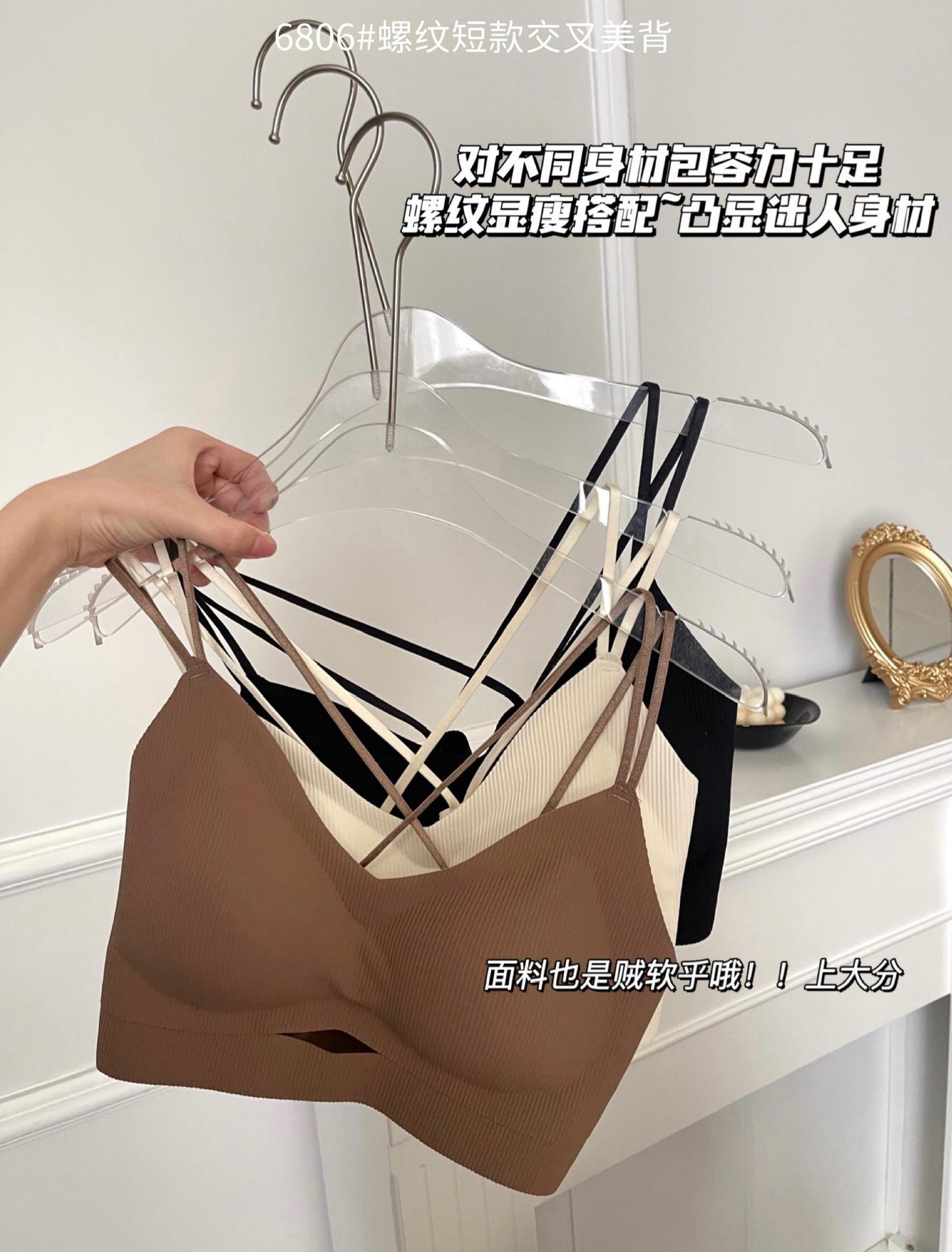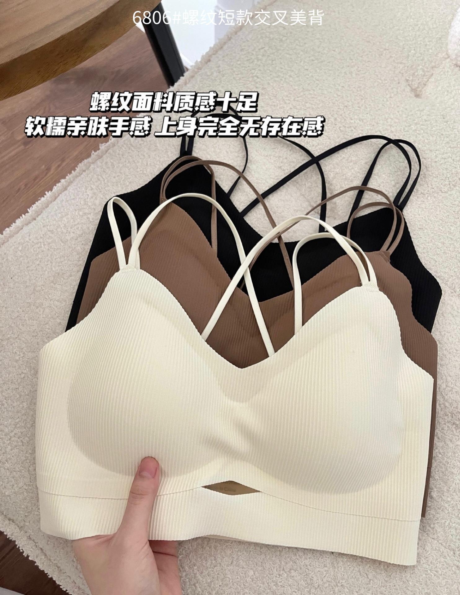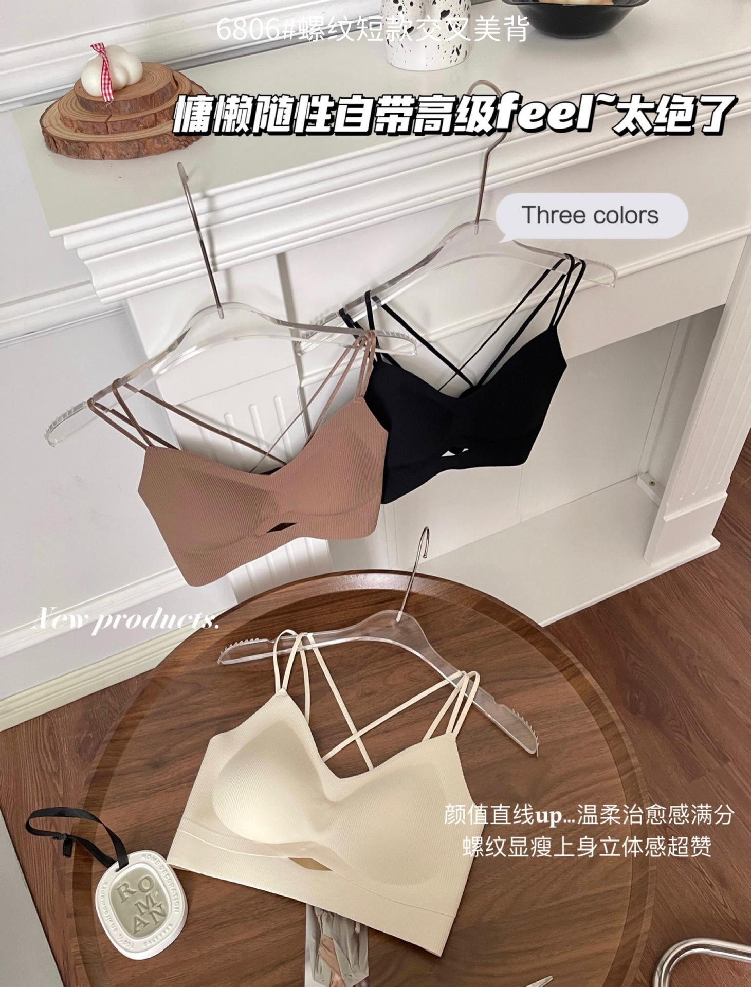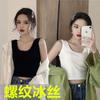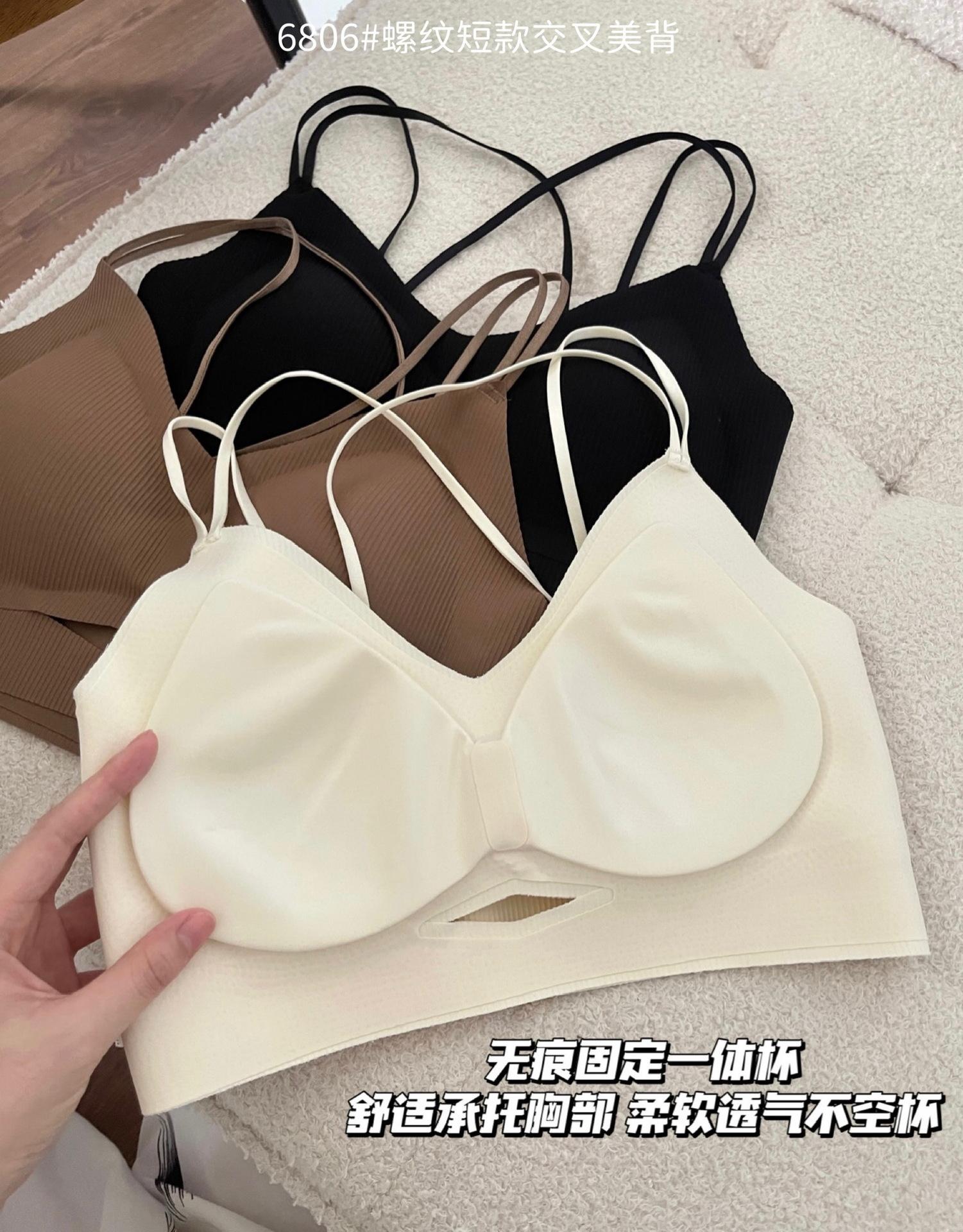Camisola corta de hilo con escote en V de color liso estilo coreano, sin costuras, con espalda cruzada, para mujer