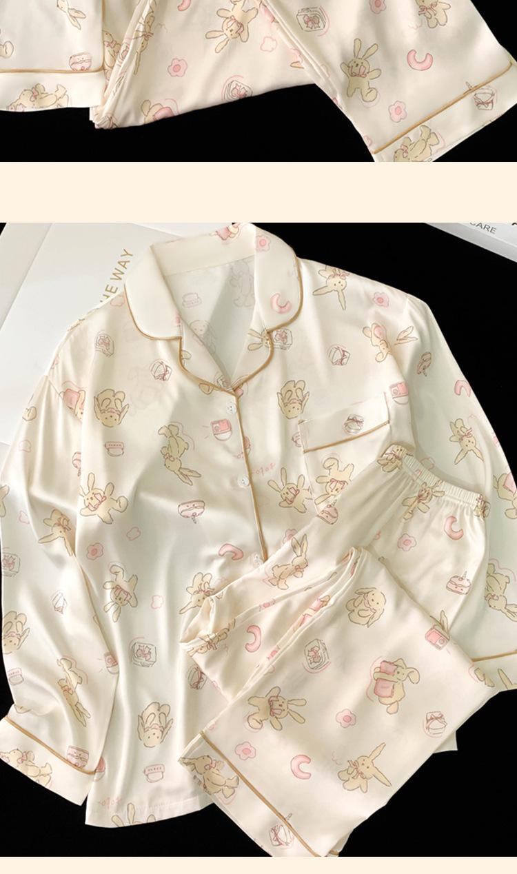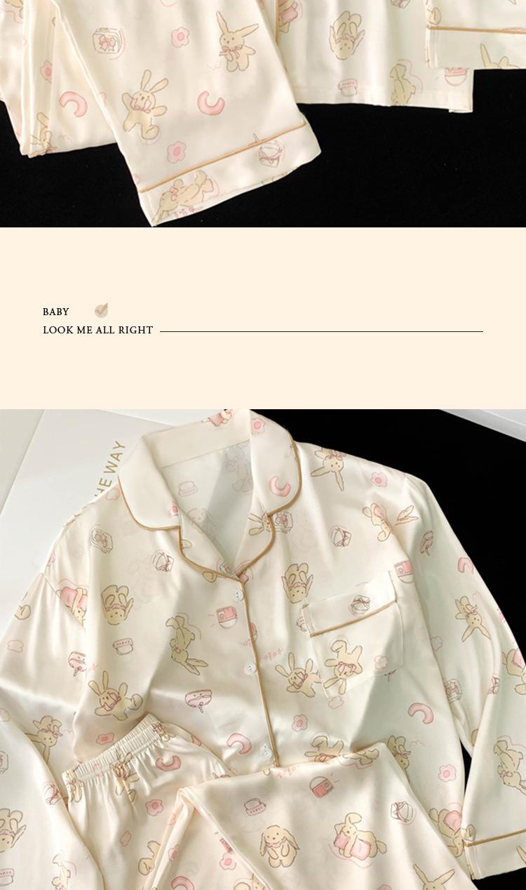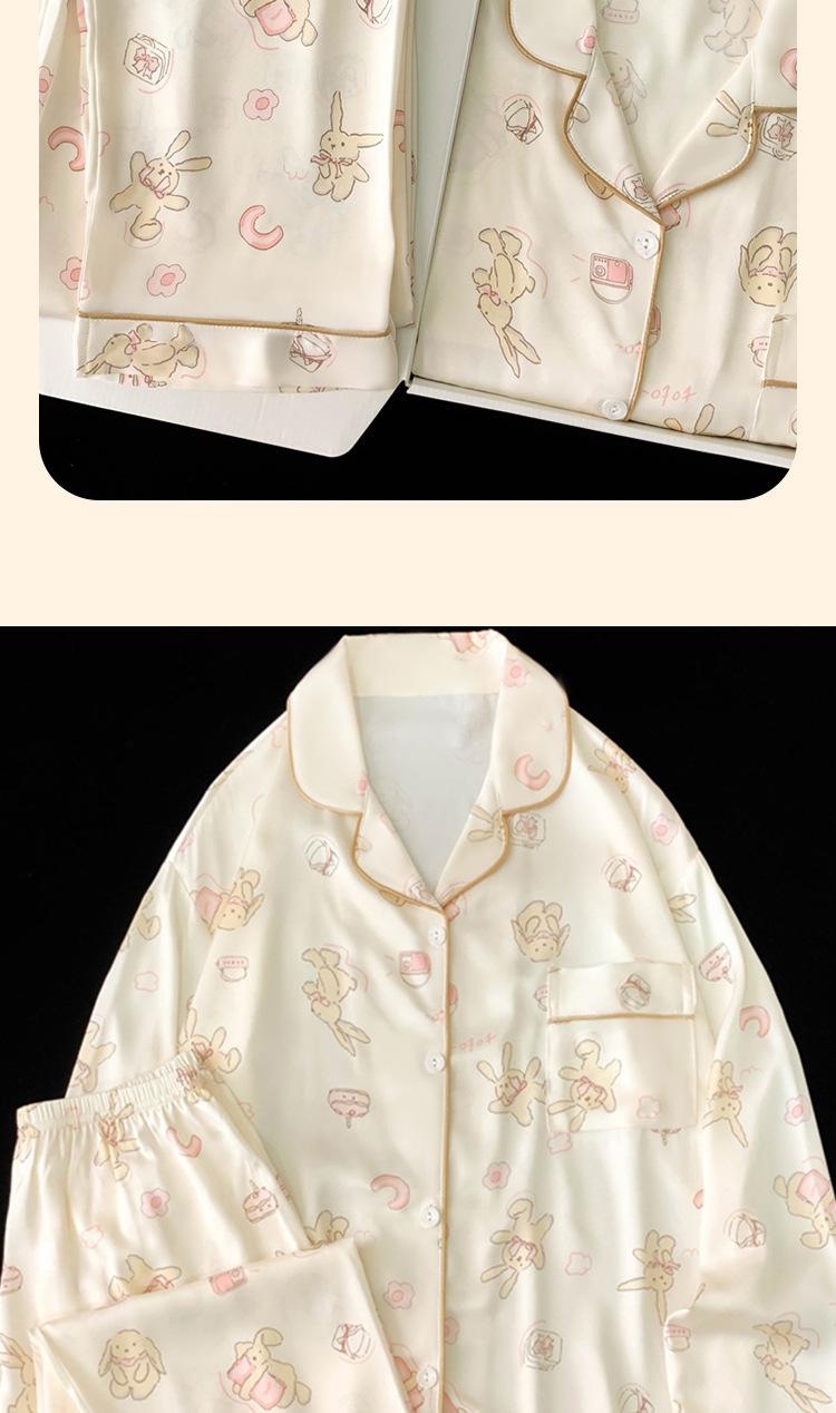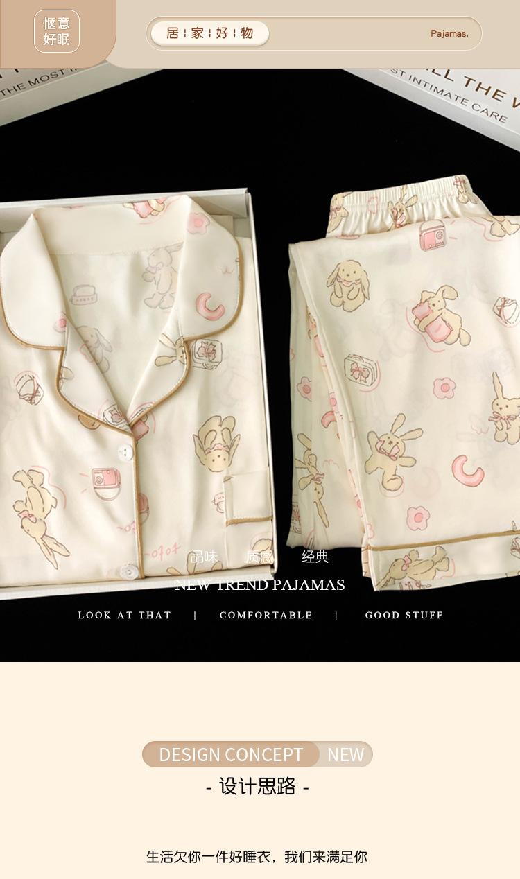Pijama de seda helada con estampado de conejo de dibujos animados, pantalones de manga larga, ropa para el hogar, venta al por mayor, venta al por mayor
