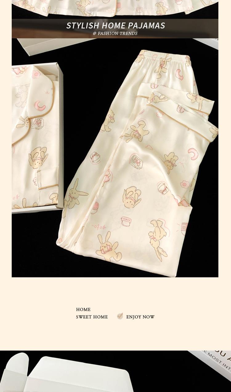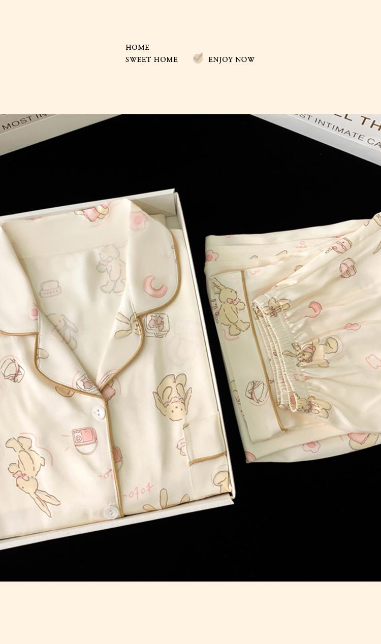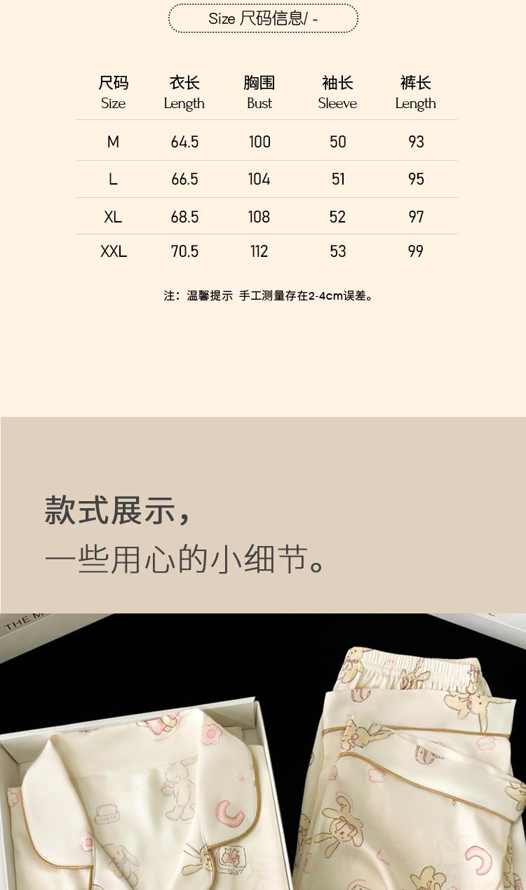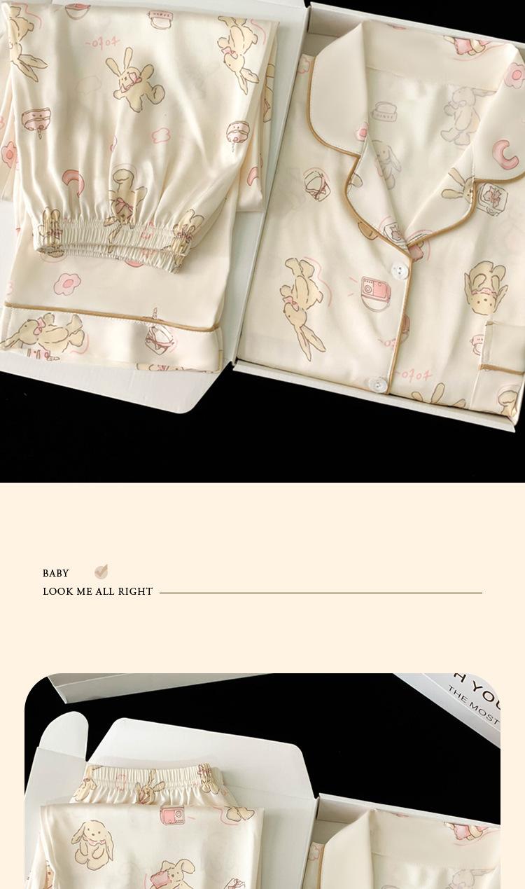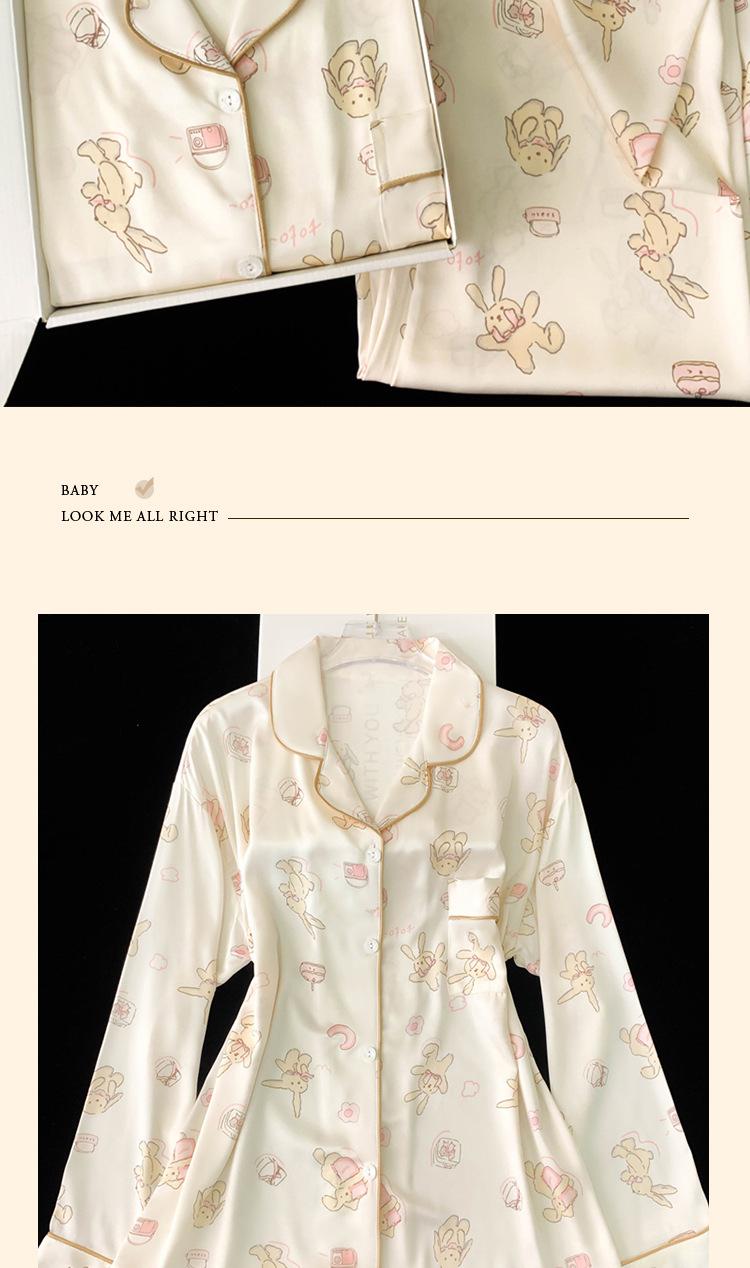 Pijama de seda helada con estampado de conejo de dibujos animados, pantalones de manga larga, ropa para el hogar, venta al por mayor, venta al por mayor