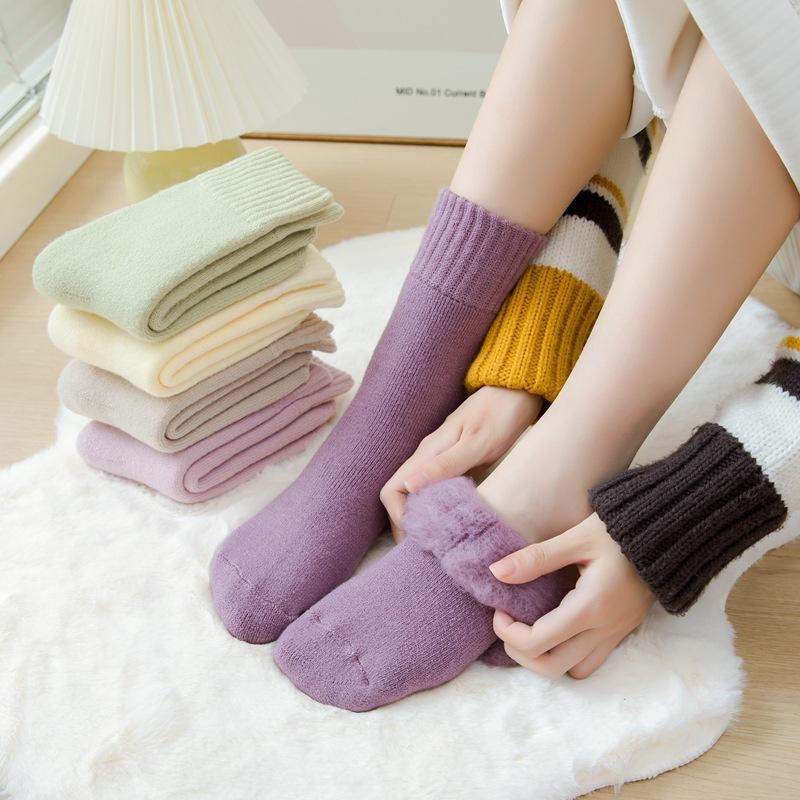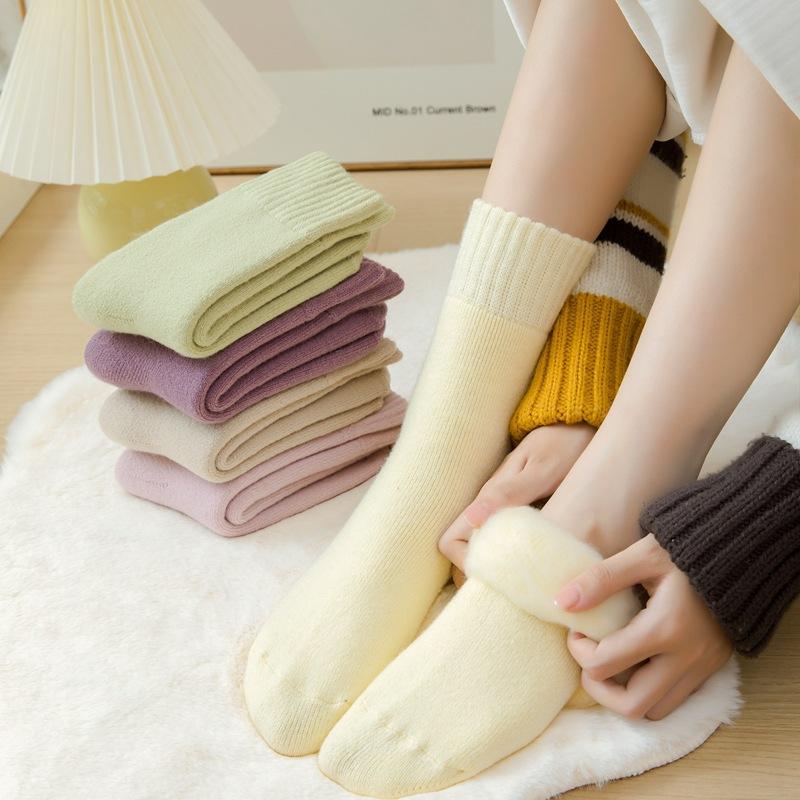 Calcetines de Cachemira para Mujer Otoño e Invierno Calcetines de Media Caña Forrados de Felpa Engrosados Calcetines de Luna Felpa para Dormir en el Piso Calcetines de Invierno Super Gruesos