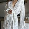 Cárdigan de punto elástico estampado de amor otoñal europeo y americano 2024, camisón con cordones, ropa de casa holgada, casual y cómoda para mujer