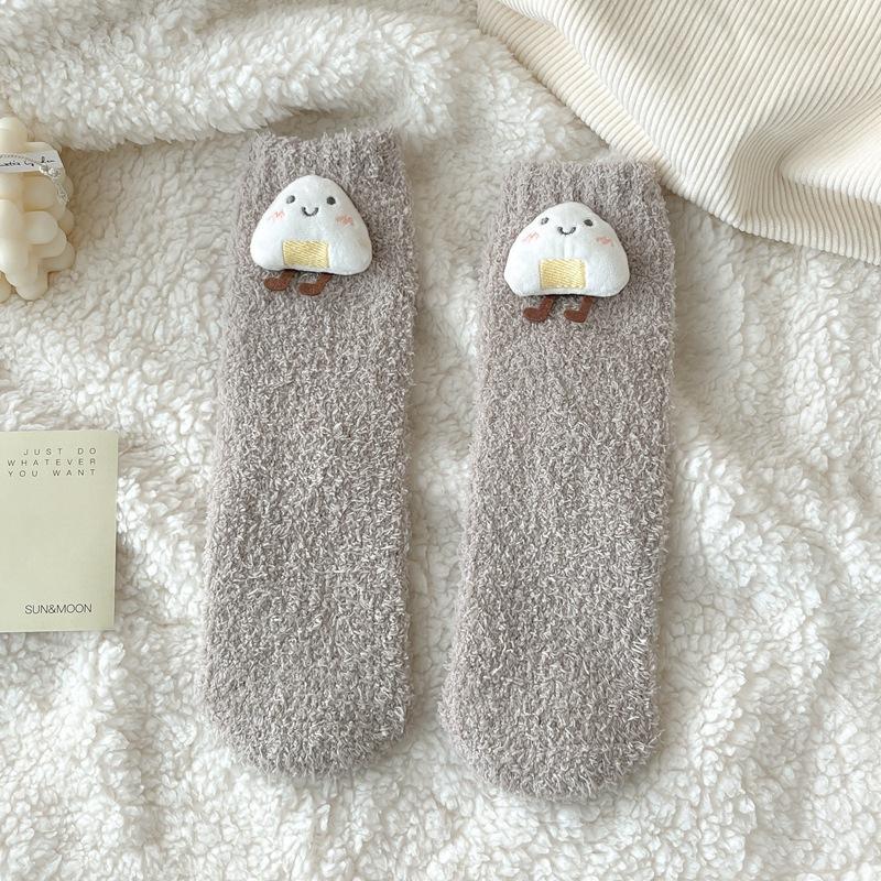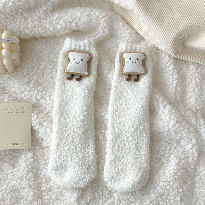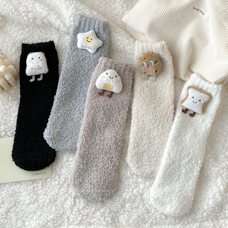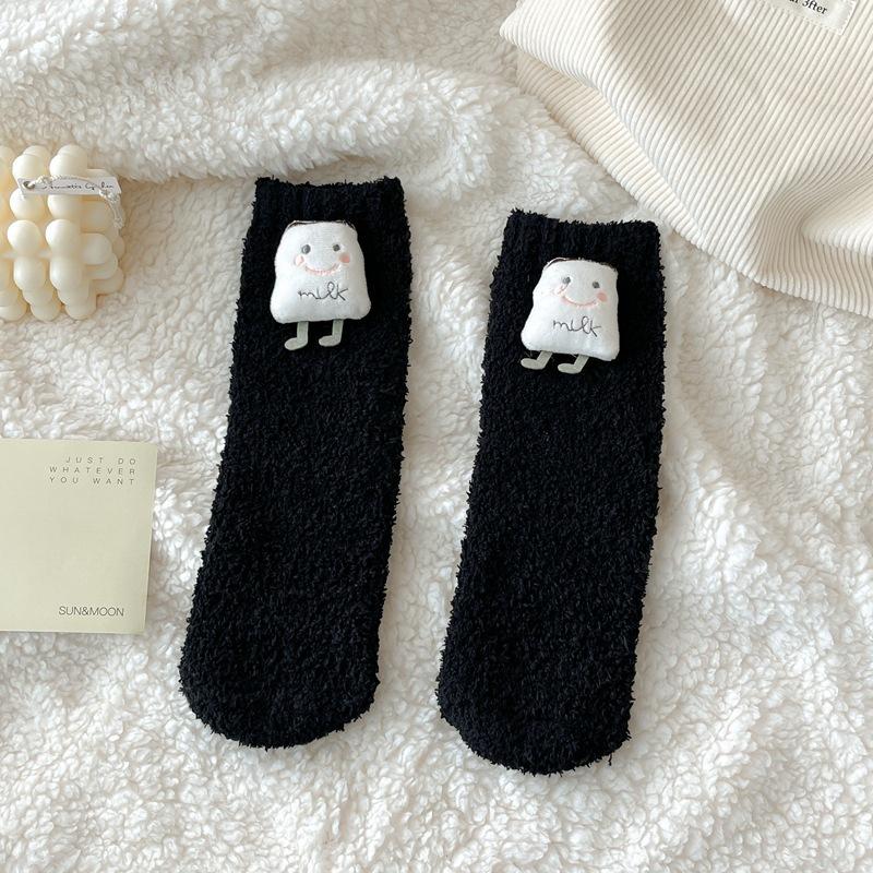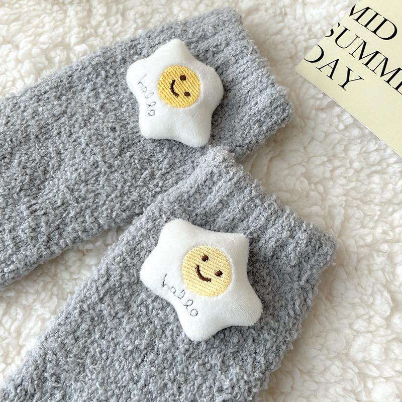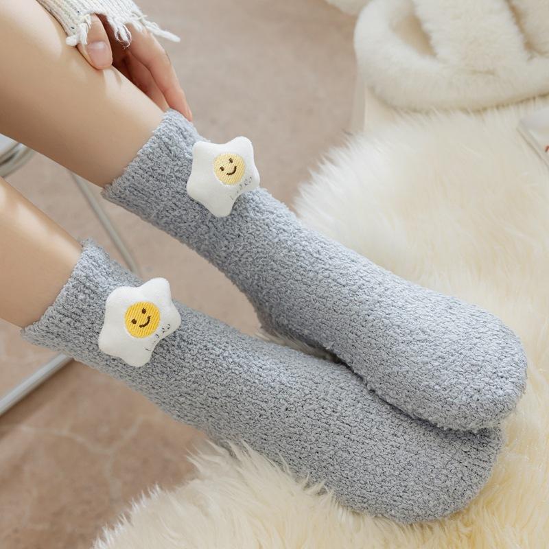 Calcetines de Terciopelo Coral para Mujer Otoño e Invierno Forrados de Felpa Gruesos de Toalla para Piso Calcetines de Luna de Dibujos Animados Calcetines Cálidos para Dormir