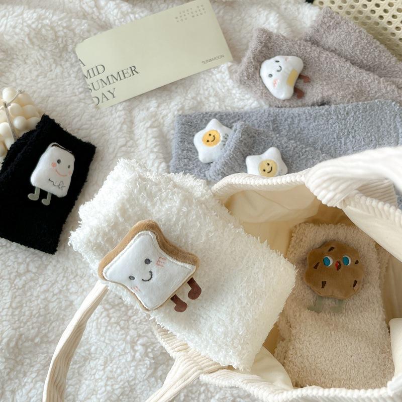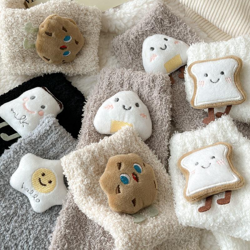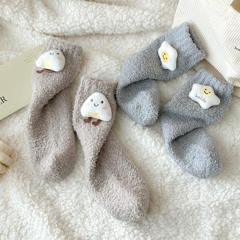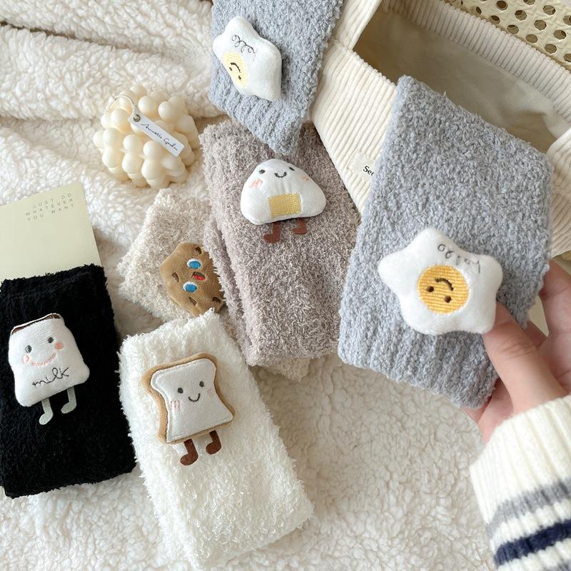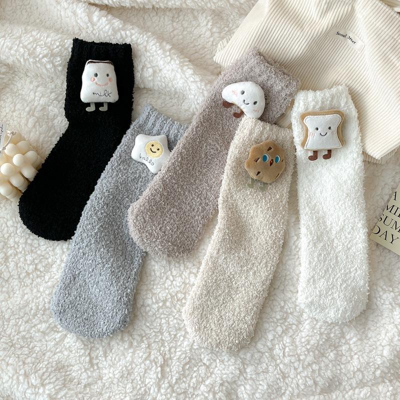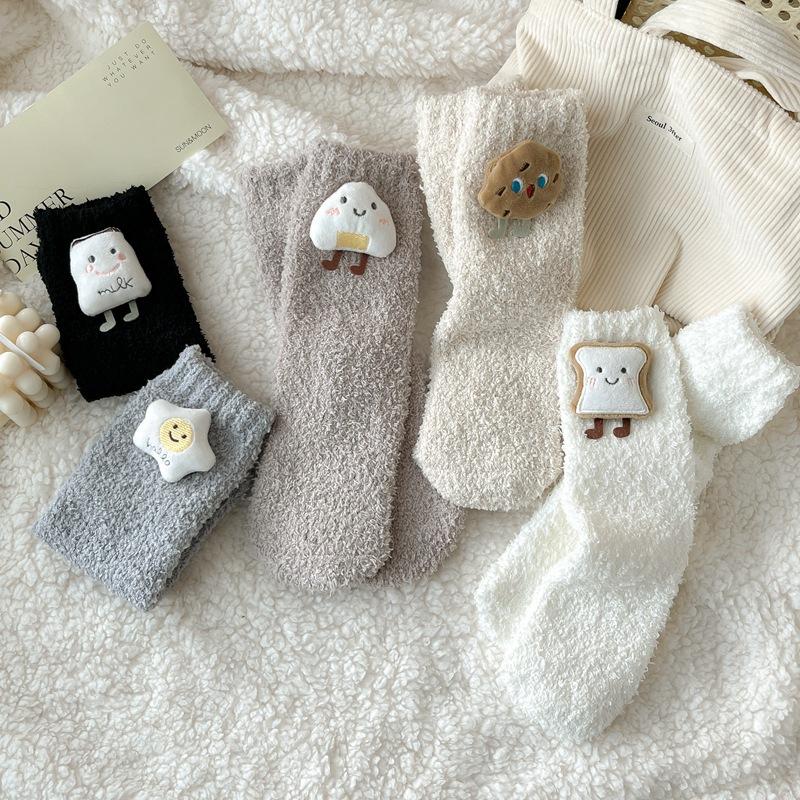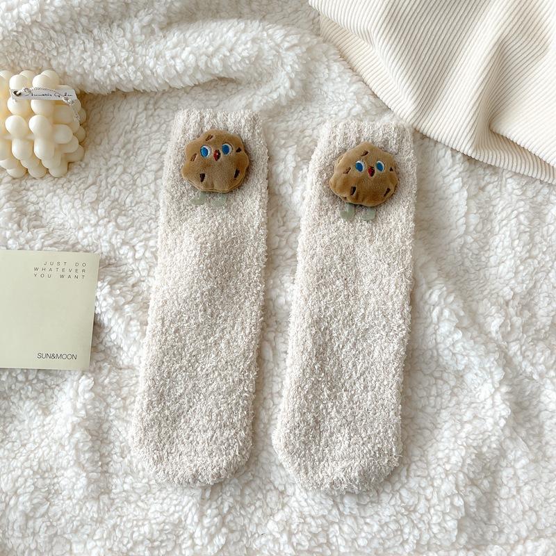 Calcetines de Terciopelo Coral para Mujer Otoño e Invierno Forrados de Felpa Gruesos de Toalla para Piso Calcetines de Luna de Dibujos Animados Calcetines Cálidos para Dormir