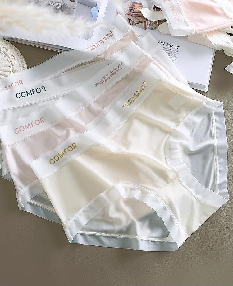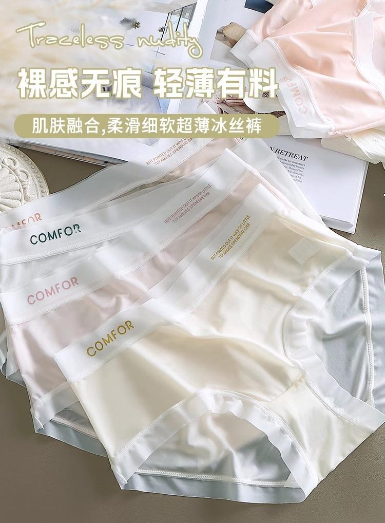 Pantalones de máscara facial finos y resbaladizos de seda de hielo sin costuras para niña, ropa interior de algodón de cintura media y entrepierna de cadera de secado rápido sin costuras para mujer