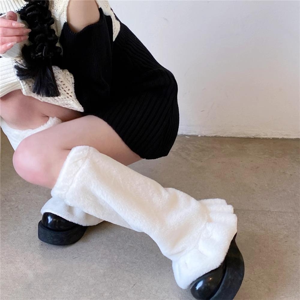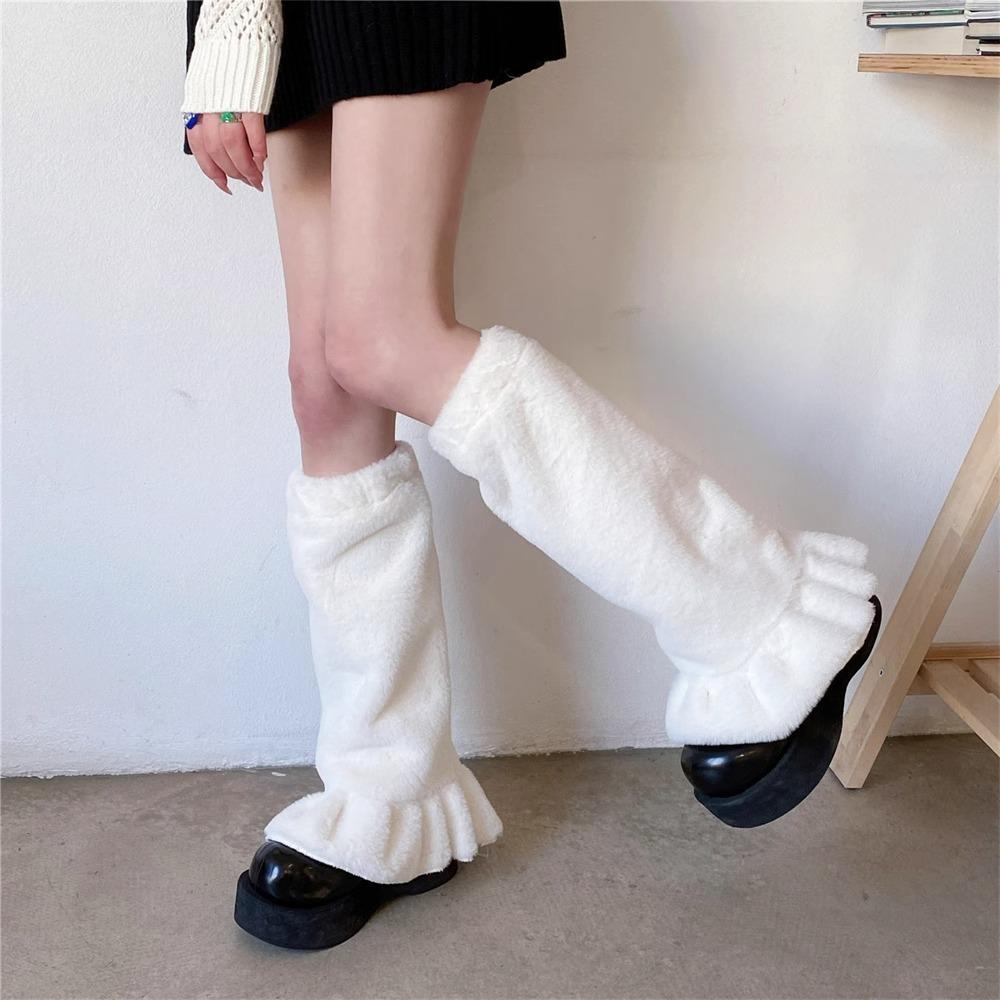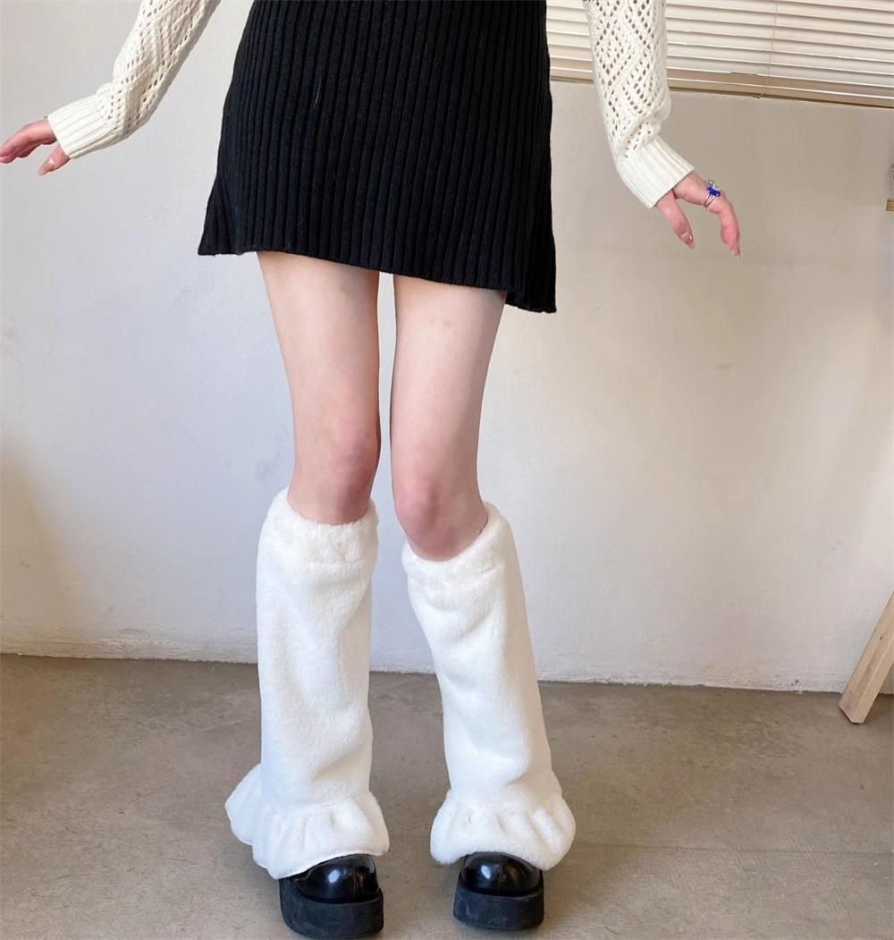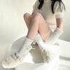 Calcetines de felpa cultura asiática otoño e invierno cálidos niña dulce felpa blanca cubre pantorrilla pierna ancha encaje media pantorrilla calcetines de rizo