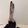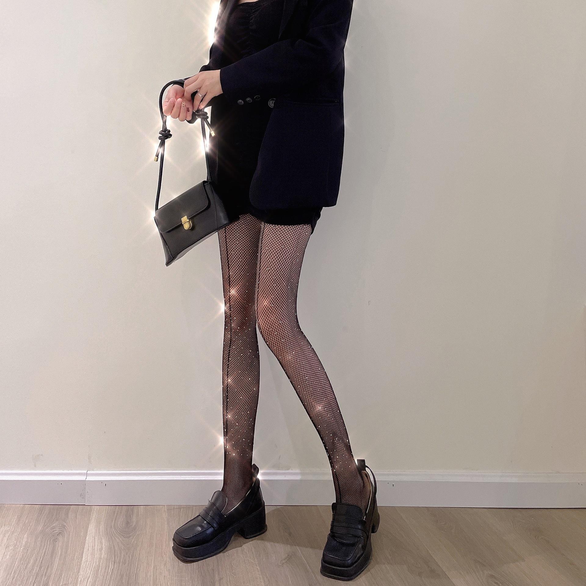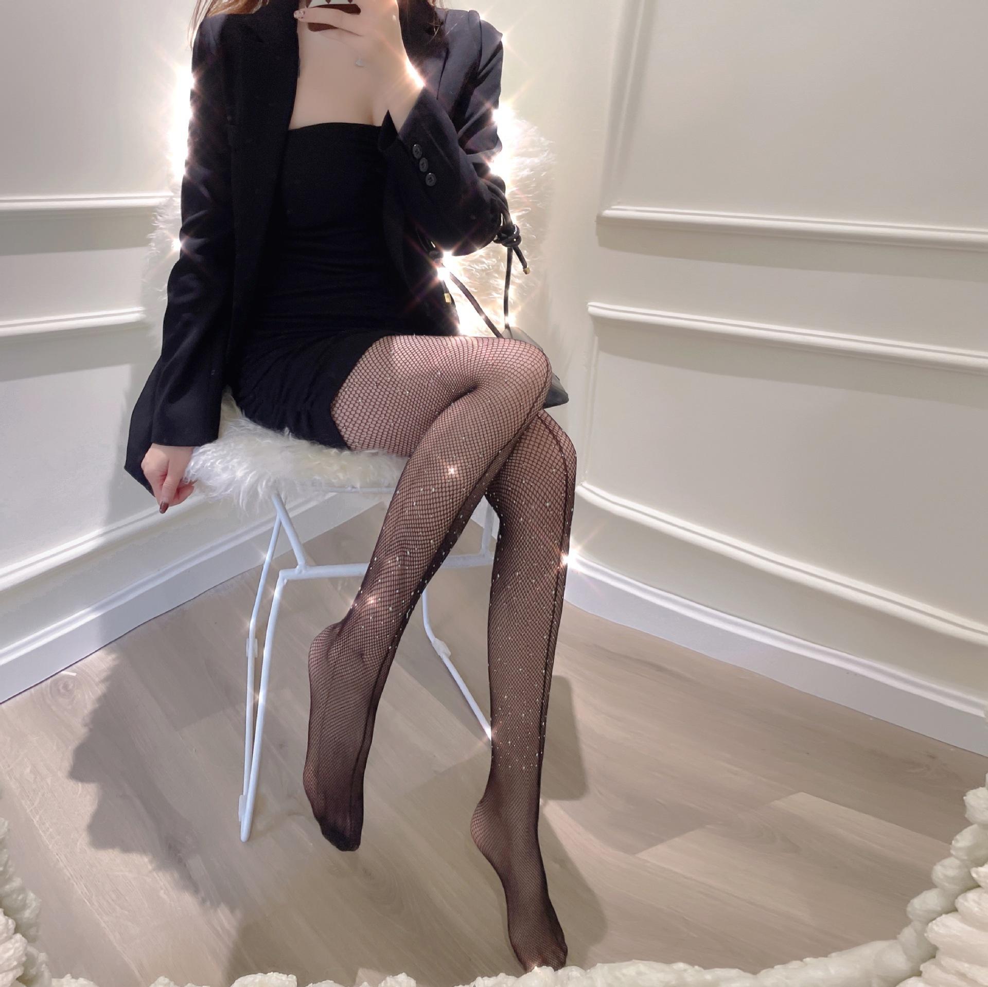 Calcetines finos de verano de una sola línea con diamantes de imitación para mujer, tendencia sexy, pantimedias ajustadas de seda negra al por mayor