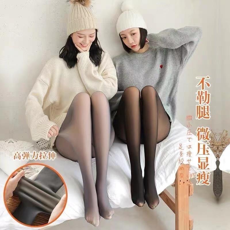Leggings de mujer otoño e invierno con forro polar pantimedias una negra transparente engrosada cálida azafata falsa transparente grasa piernas ligeras
