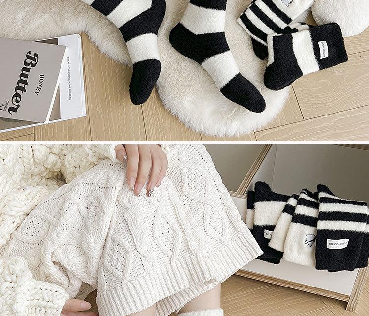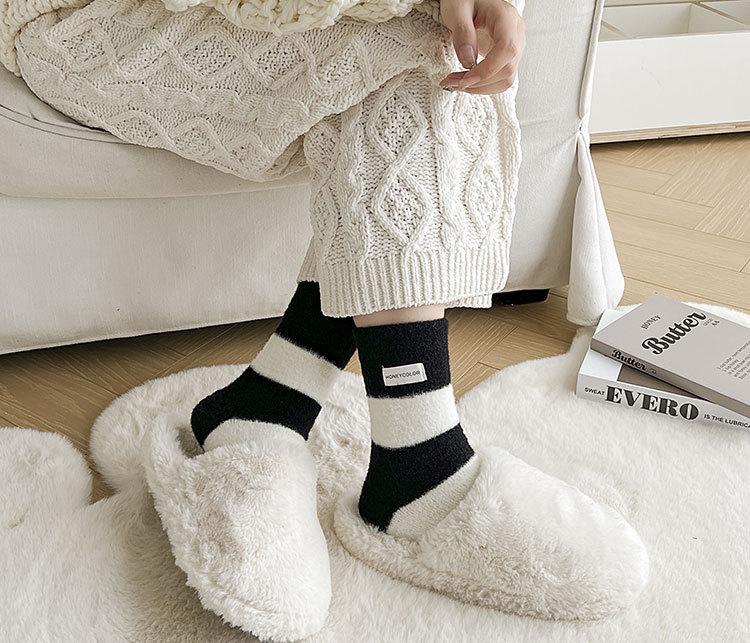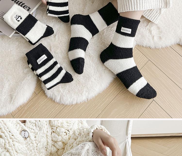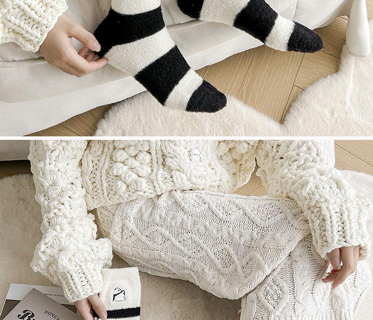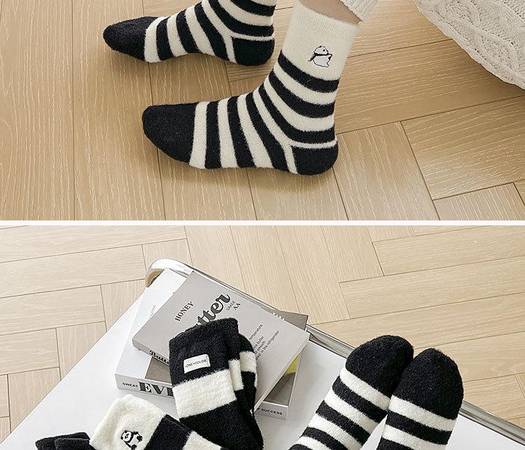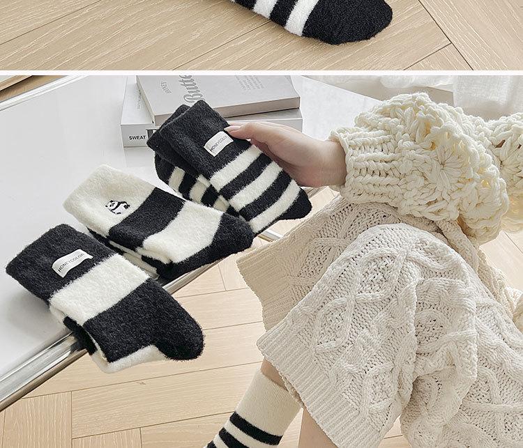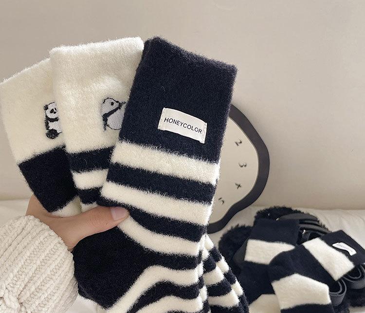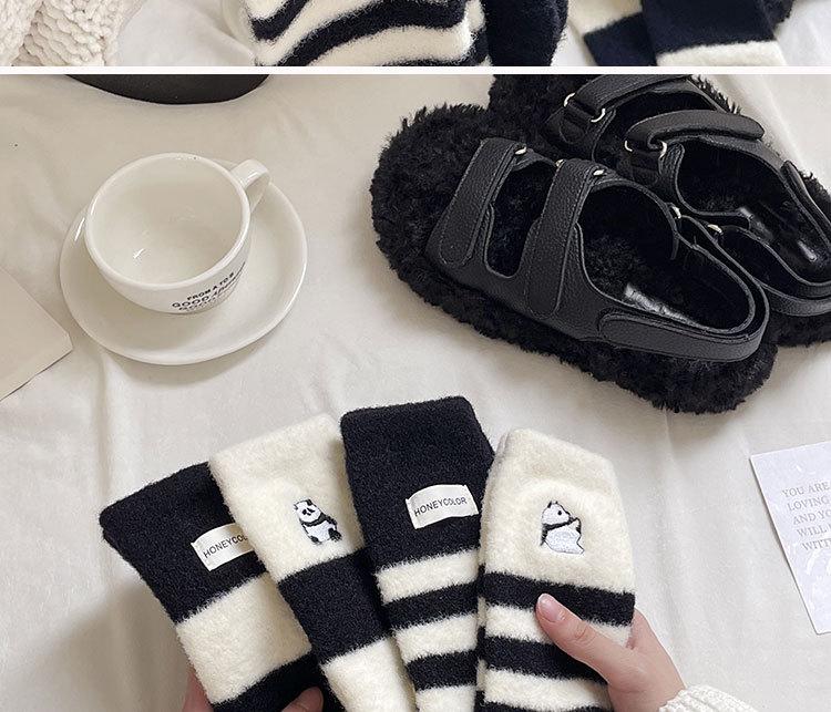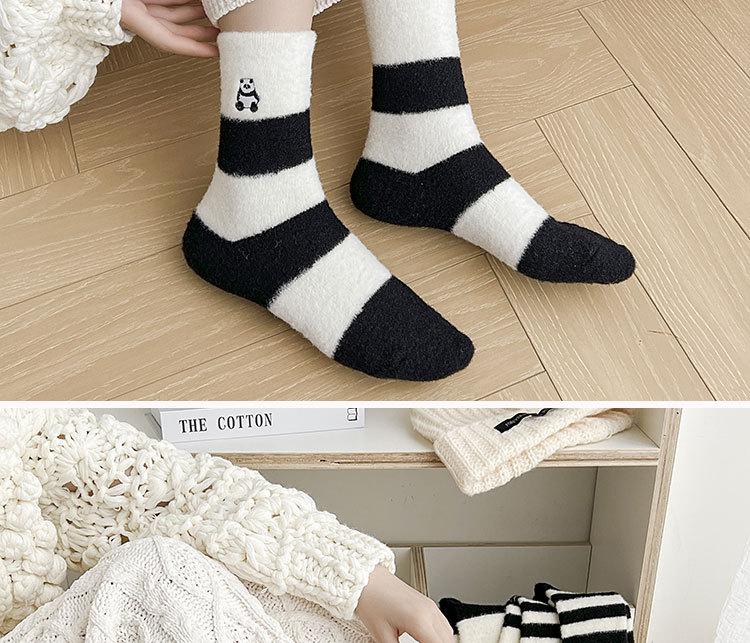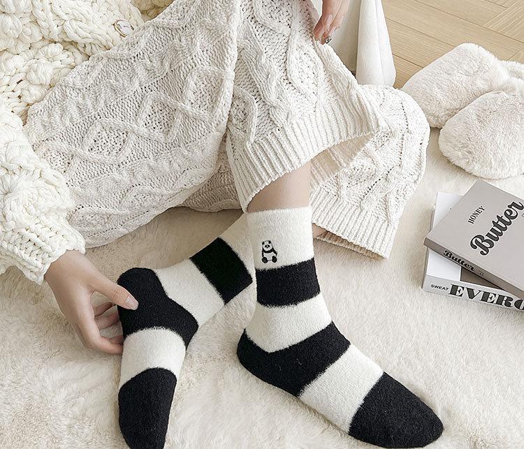 Calcetines de terciopelo australiano a rayas de panda hasta la mitad de la pantorrilla, calcetines de otoño e invierno para mujer, calcetines cálidos con forro polar grueso, calcetines de terciopelo coral para dormir en el suelo.