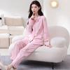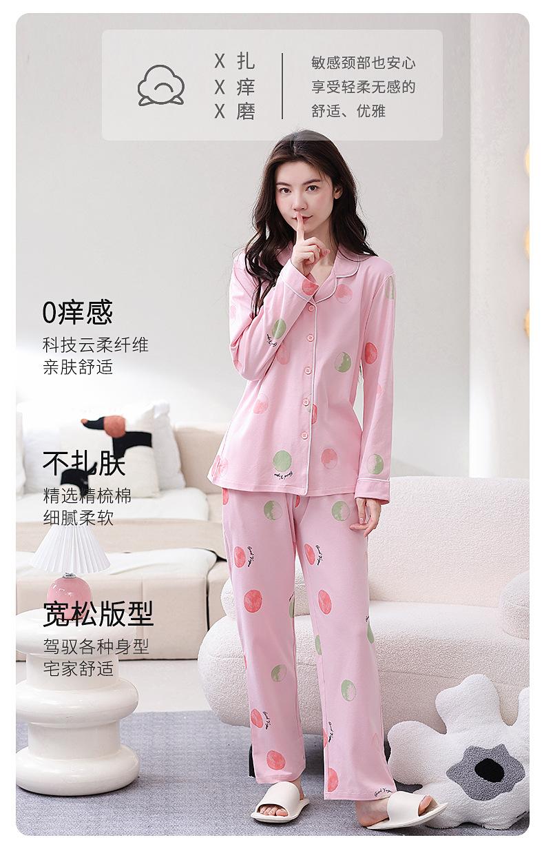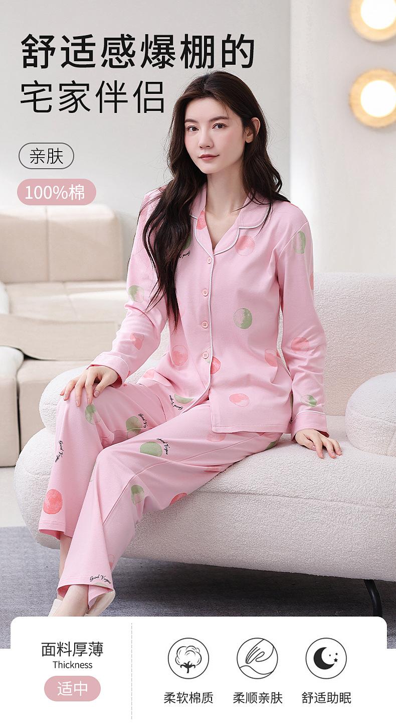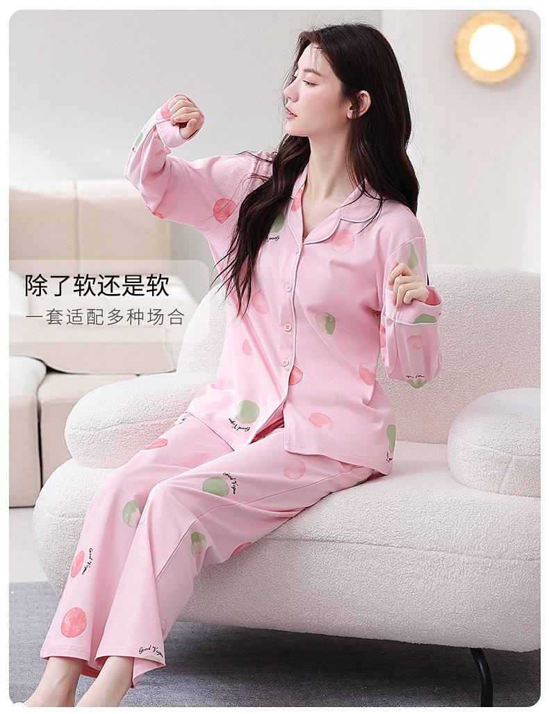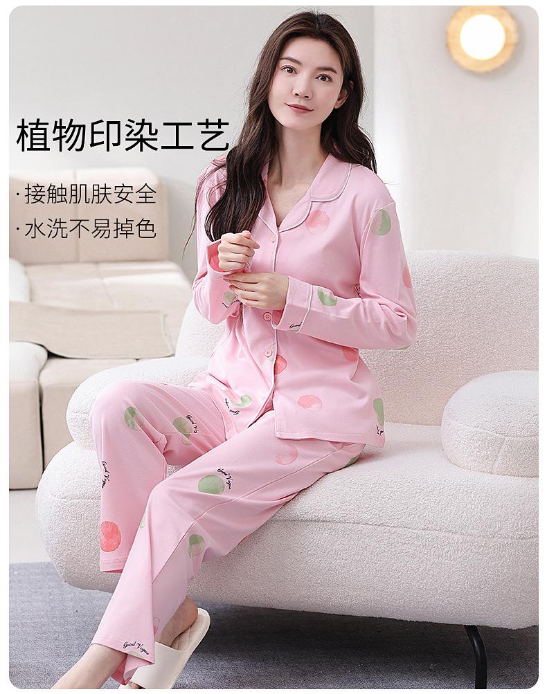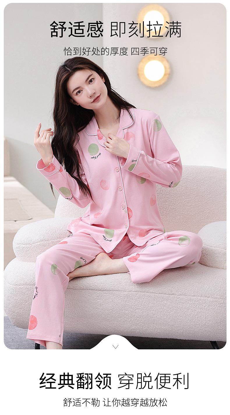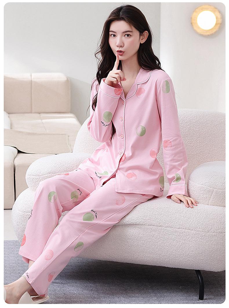 Pijama de algodón puro para mujer, primavera y otoño, cárdigan de solapa simple, pantalones de manga larga, ropa de abrigo sencilla, ropa de casa para mamás de mediana edad