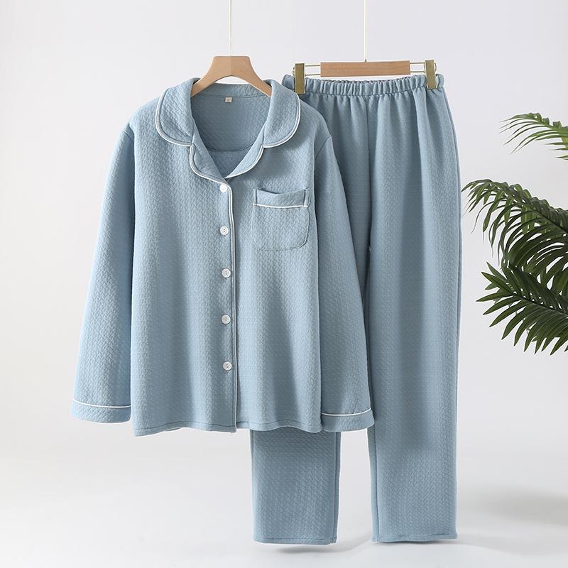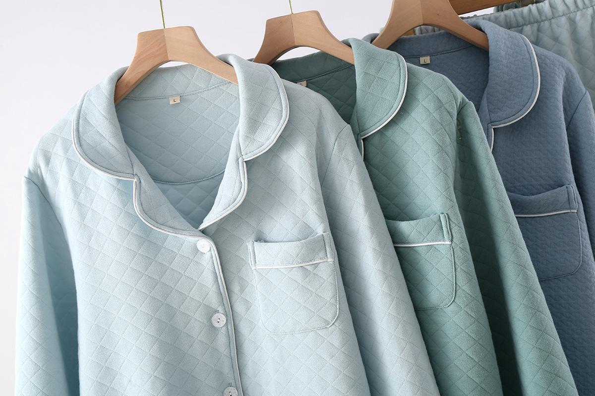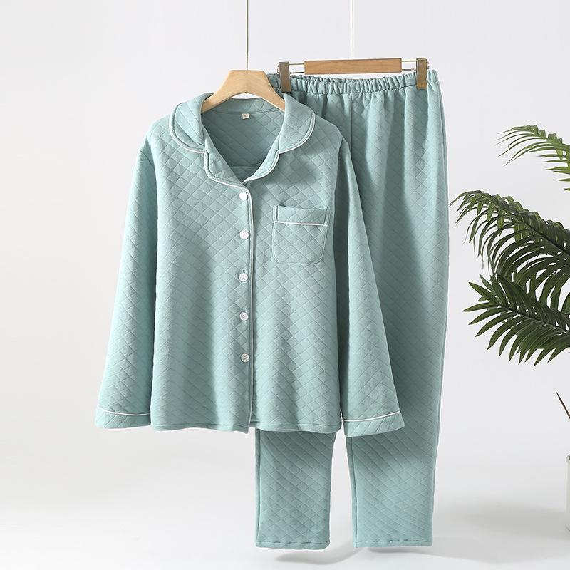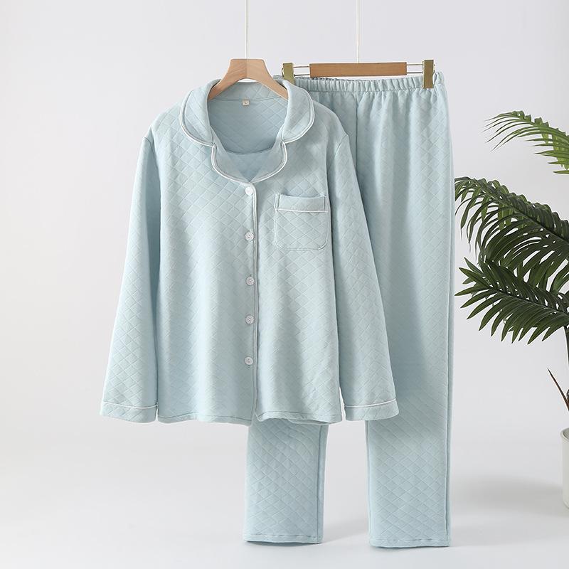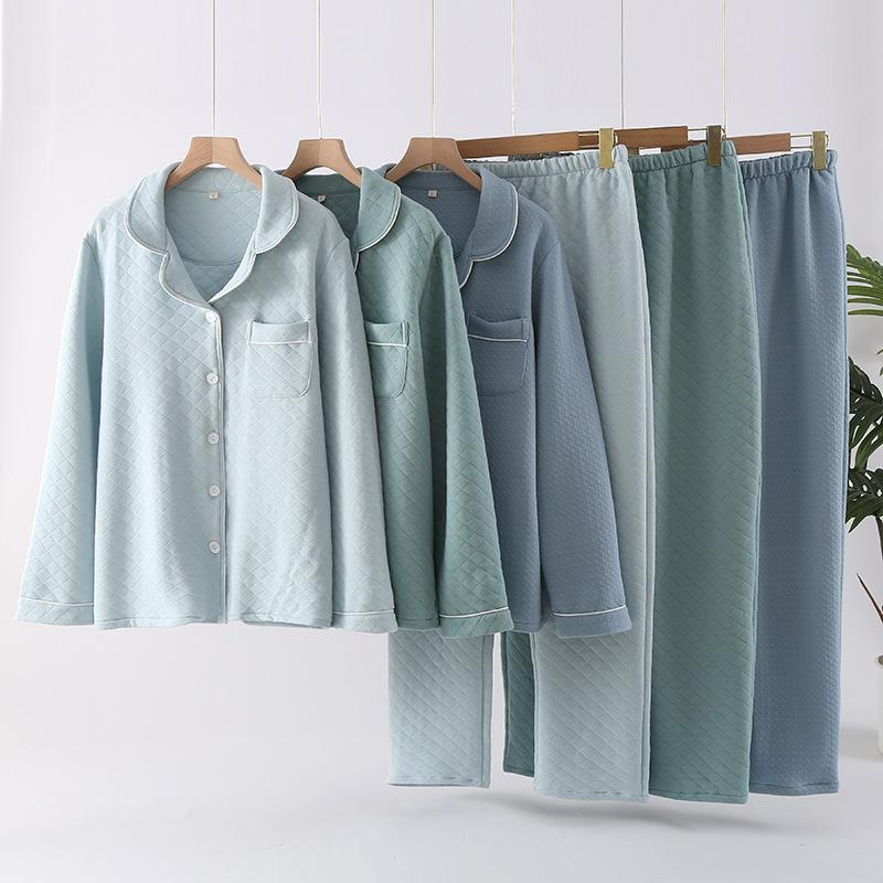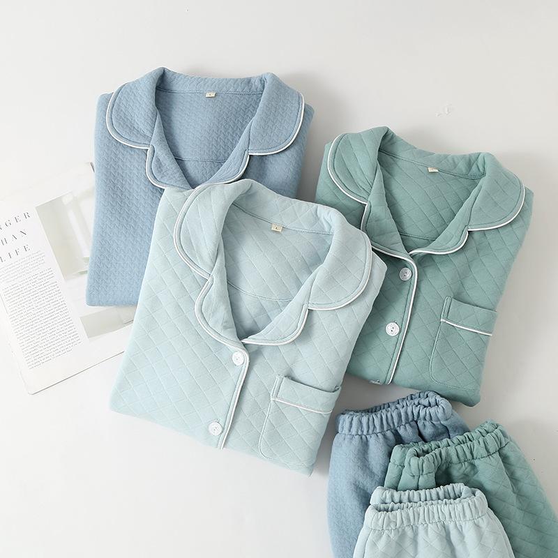 Pijamas de Algodón Aire para Pareja de Otoño e Invierno Gruesos Japoneses para Mujer Muji Ropa para el Hogar Buenos Productos Pijamas al por Mayor Acolchado de Tres Capas