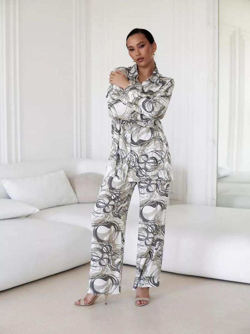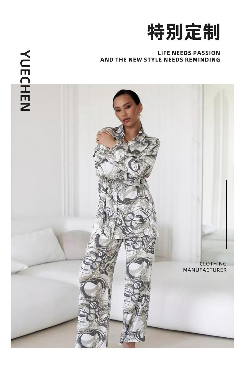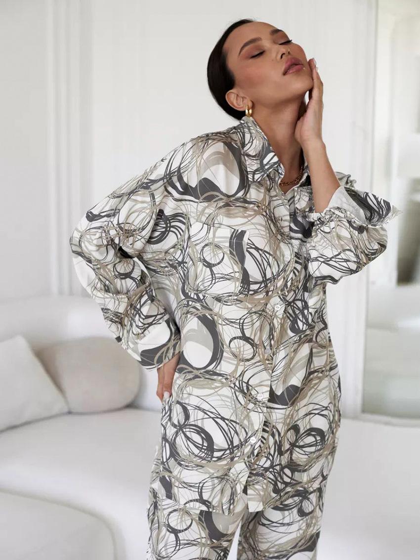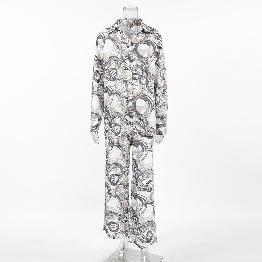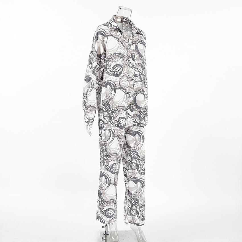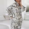 Pijamas de manga larga holgados y cómodos con estampado de nueva moda de otoño europeo y americano de 2024, ropa de hogar para mujer al por mayor
