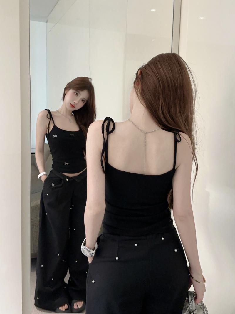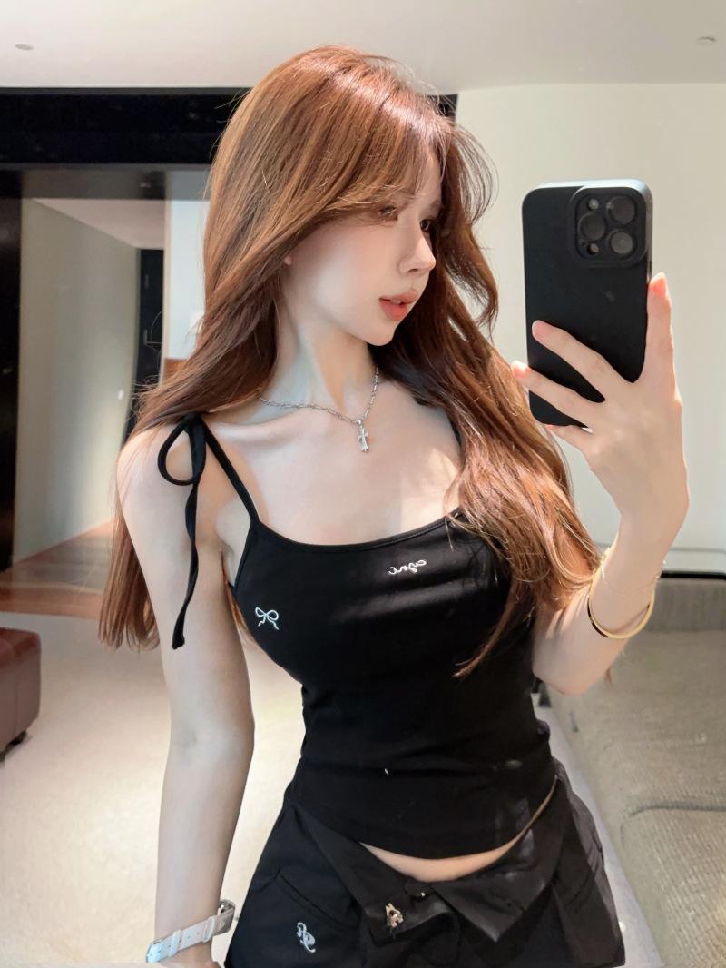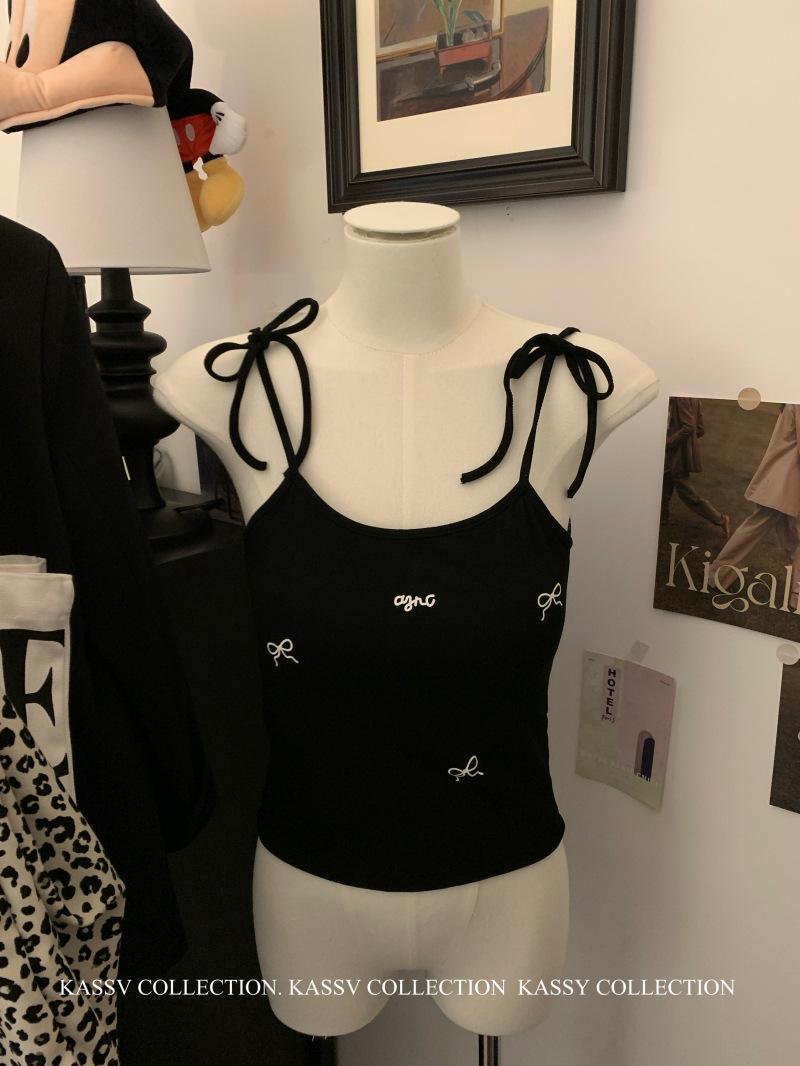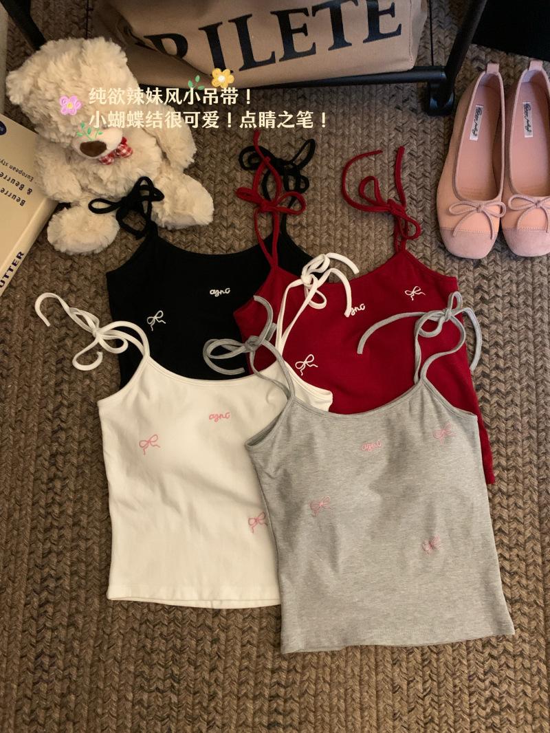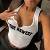Camisola de verano para mujer, diseño con estampado de letras y lazo, estilo Spice Girls, sexy, ajustada, corta y adelgazante.