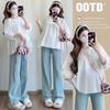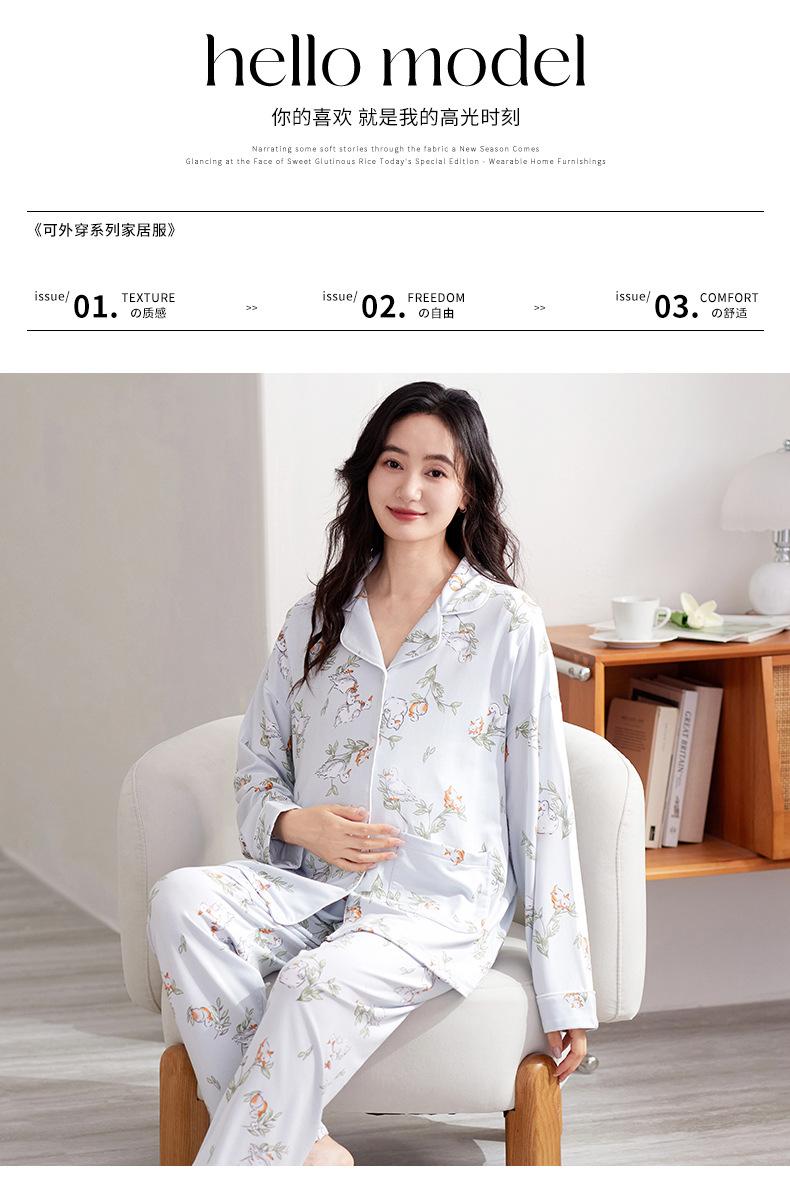 Xiyue Primavera y Otoño Nuevo Cárdigan de Manga Larga con Solapa Dulce Lindo Mujeres Embarazadas Mujeres Embarazadas Lactancia Materna Ropa de Ocio para el Hogar