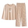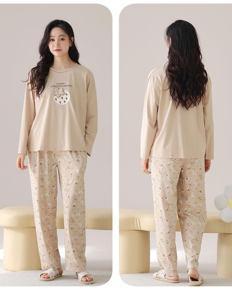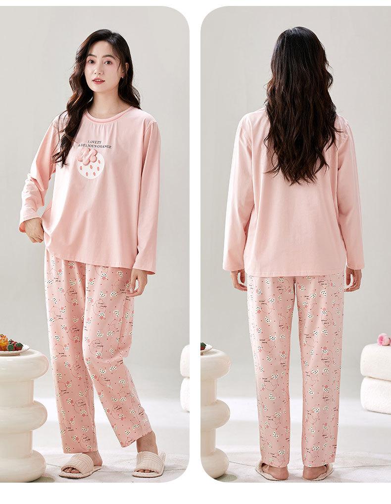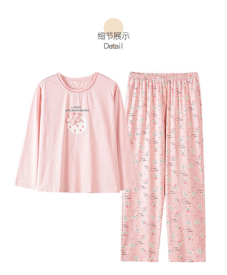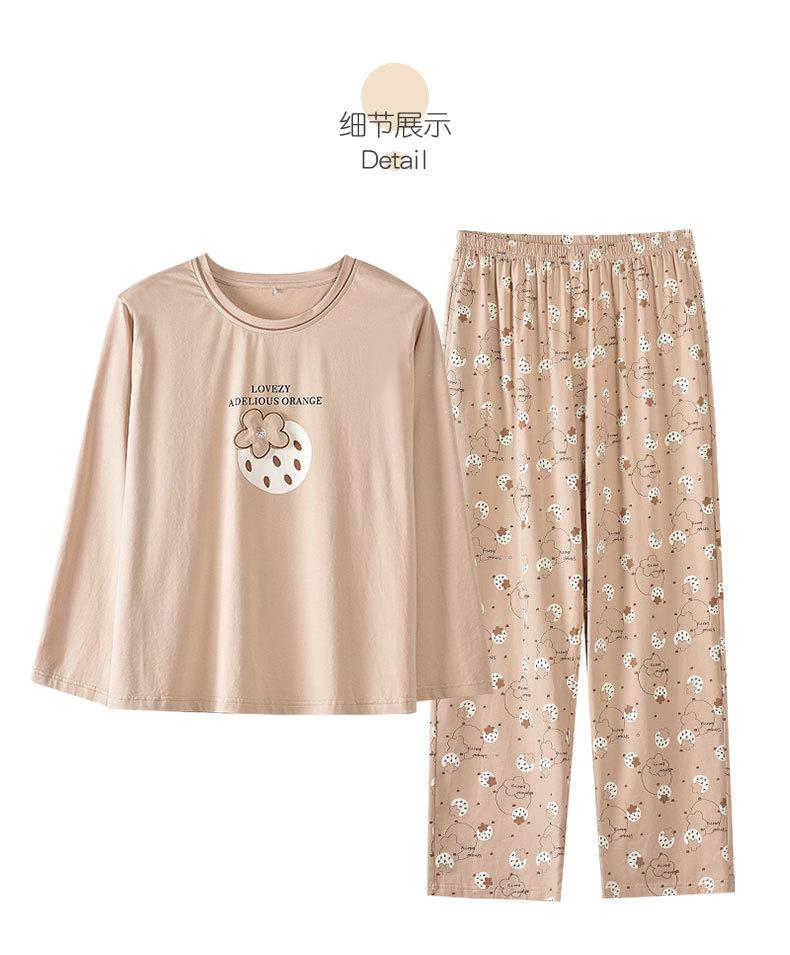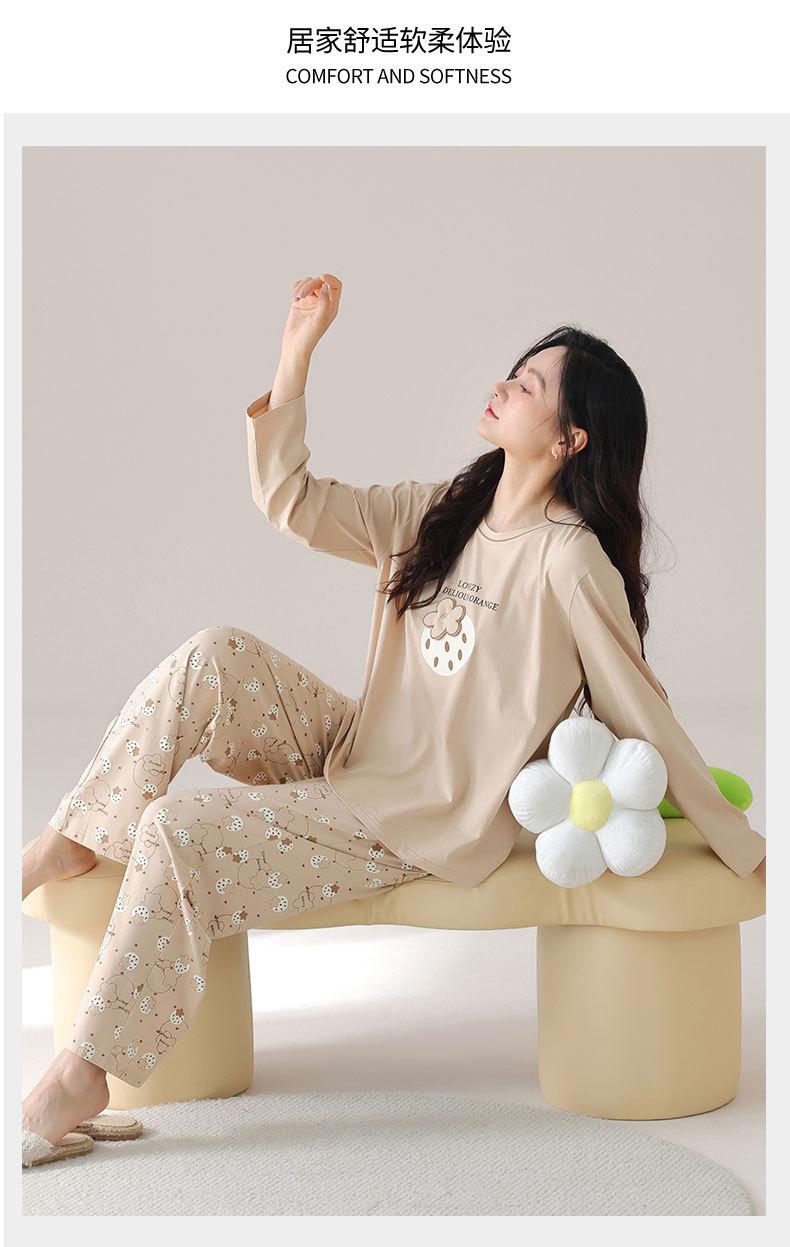 Pijama de algodón de primavera y otoño para mujer, pantalón de manga larga, traje informal con estampado de dibujos animados, ropa juvenil para exteriores y hogar.