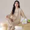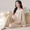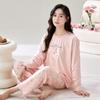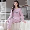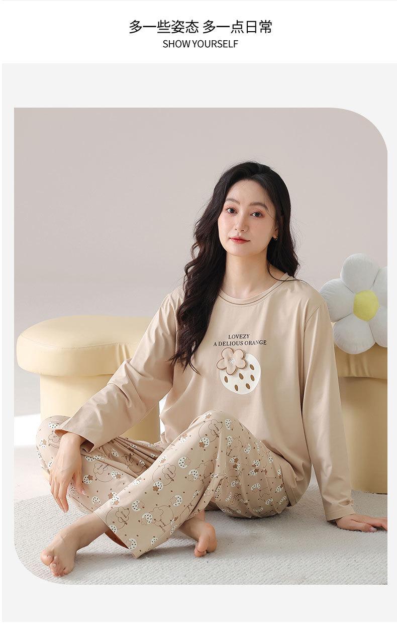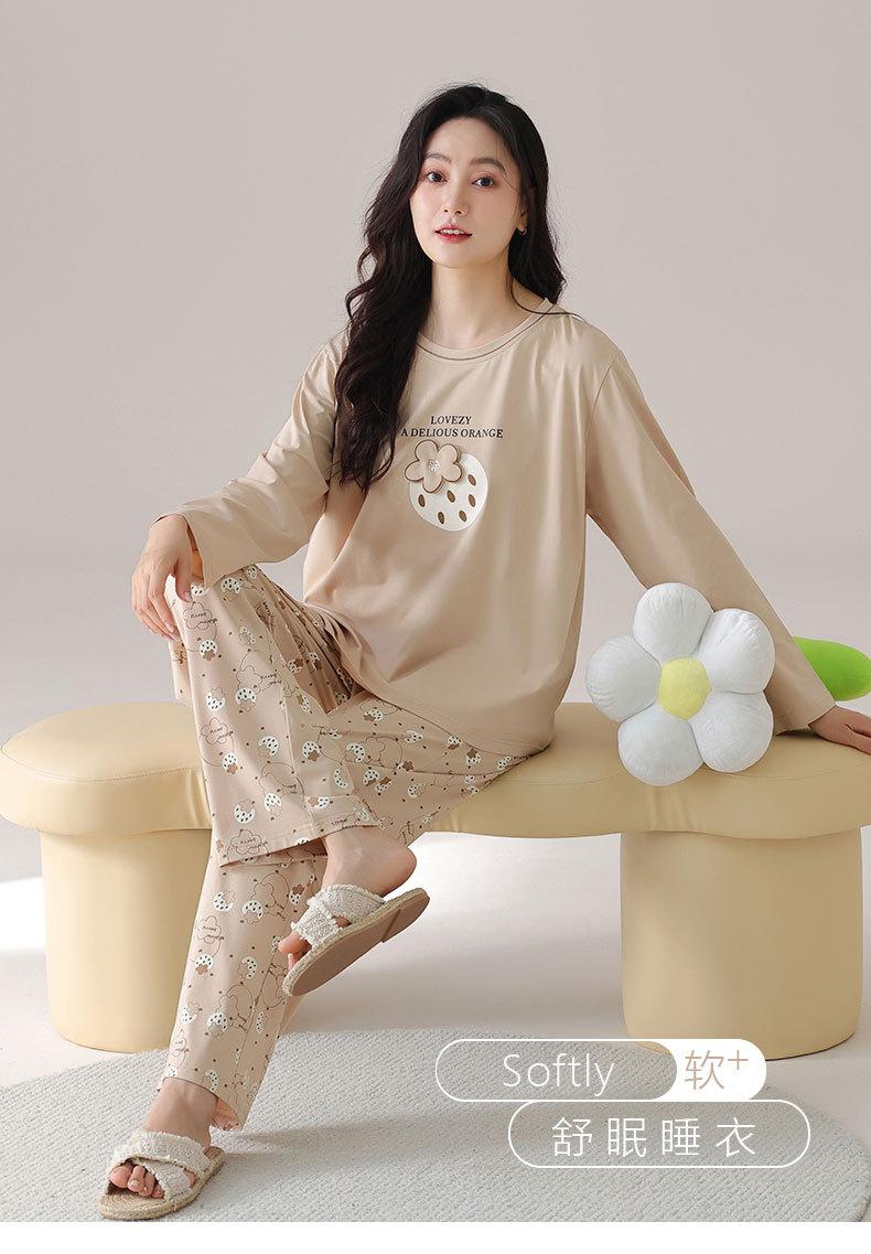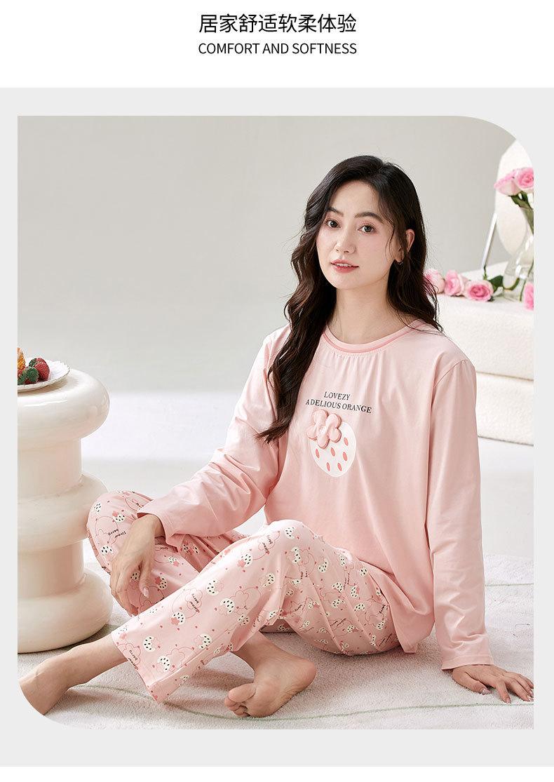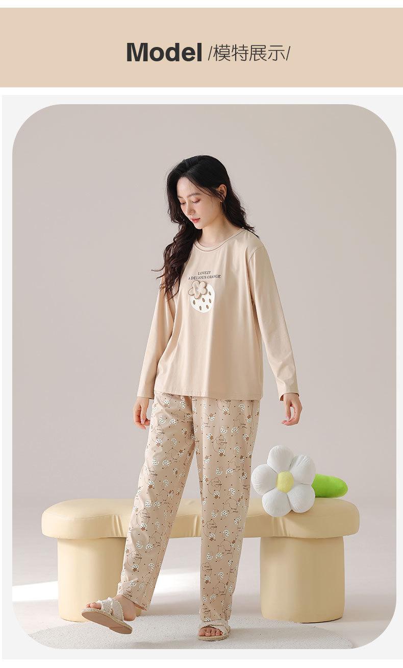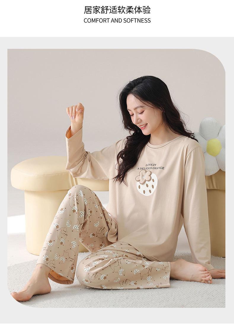 Pijama de algodón de primavera y otoño para mujer, pantalón de manga larga, traje informal con estampado de dibujos animados, ropa juvenil para exteriores y hogar.