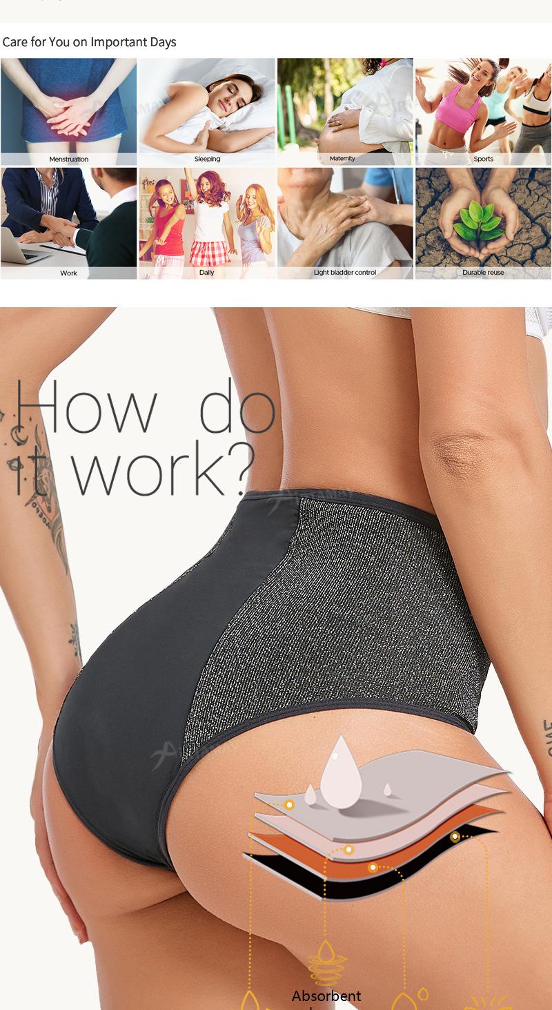 Ropa interior fisiológica a prueba de fugas con costuras de lentejuelas de cuatro capas para mujeres transfronterizas europeas y americanas con gran absorción y pantalones de tía fisiológicos transpirables para mujeres