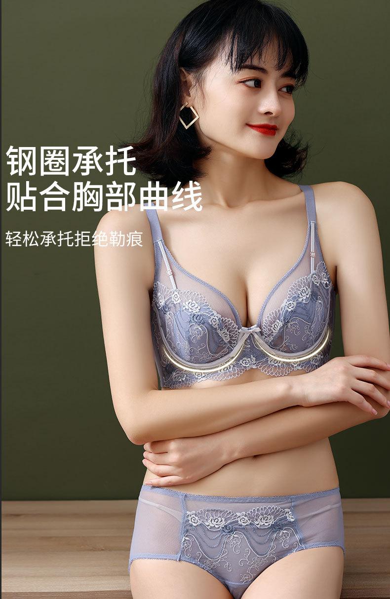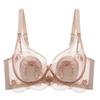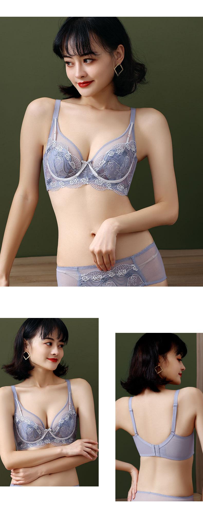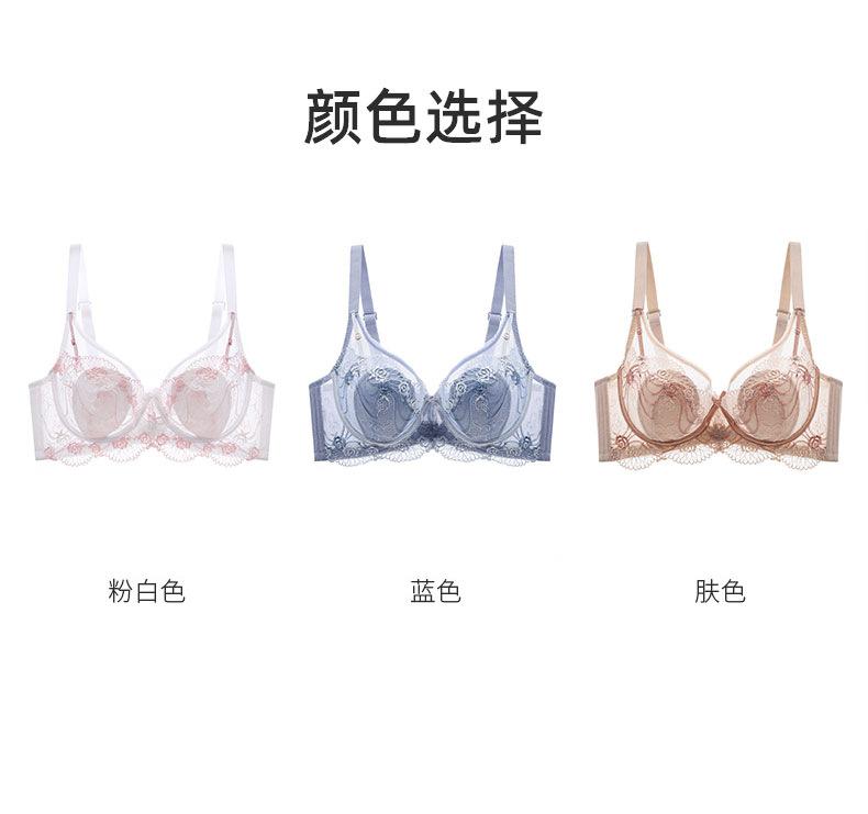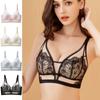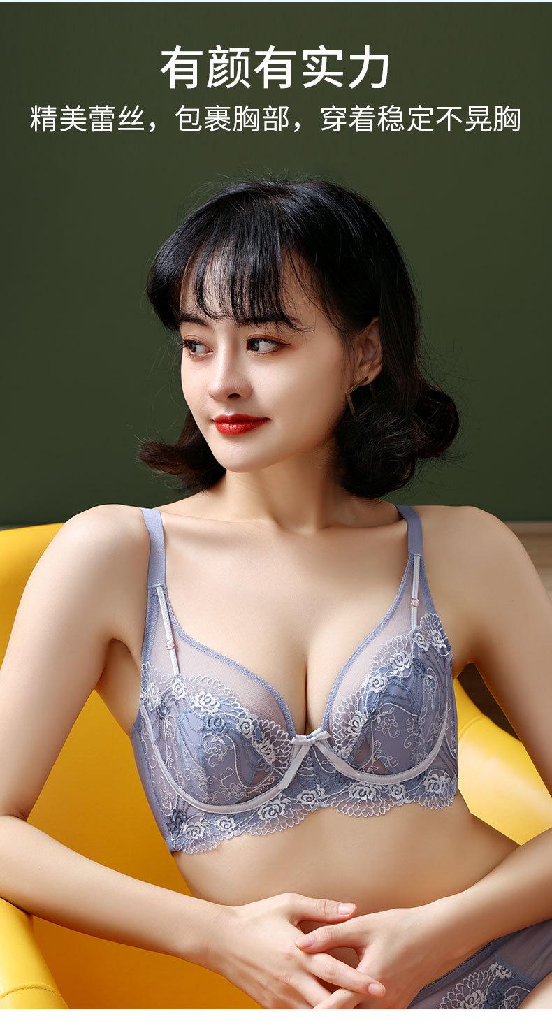 Ropa interior sexy de encaje bordado con aro de acero, copas recogidas tipo oreja de conejo para busto grande, ultradelgado, transpirable, sujetador superior