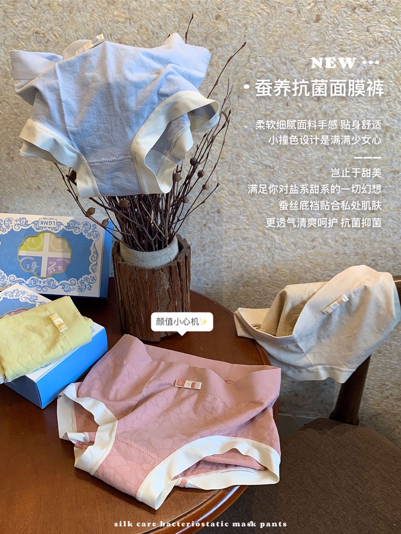 Mascarilla Antibacterial de Seda Oxígeno Ropa Interior para Mujer Fondo de Seda Transpirable Entrepierna Sin Costuras Invisible Calzones de Cintura Media Ropa Interior para Niñas En Caja