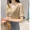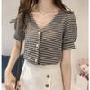 Camisa a cuadros con cuello en V para mujer, estilo nuevo de verano 2023, top corto holgado y adelgazante, elegante, estilo coreano