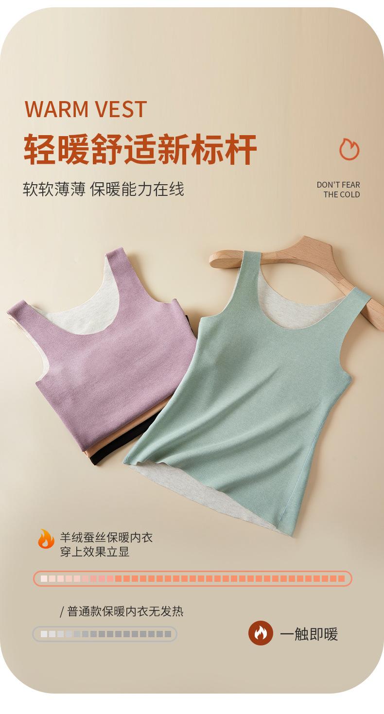 Chaleco cálido de terciopelo de seda de cachemira, ropa interior de mujer con ondas de una pieza, copa fija, autocalentable, ropa interior de otoño e invierno