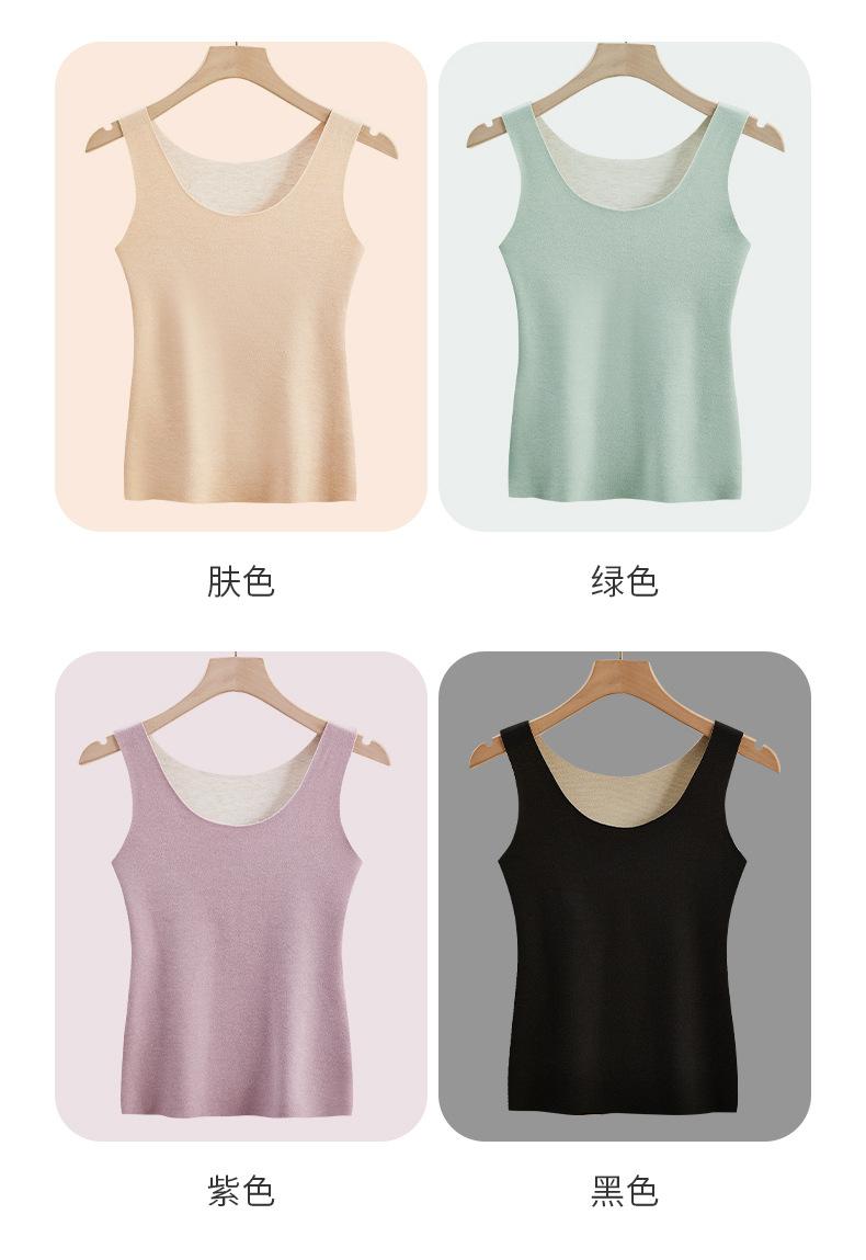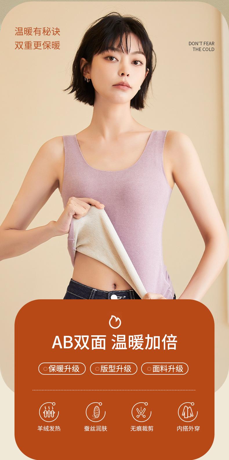 Chaleco cálido de terciopelo de seda de cachemira para mujer, ropa interior con escote en V ondulado, copa fija integrada, autocalentamiento, parte inferior de otoño e invierno