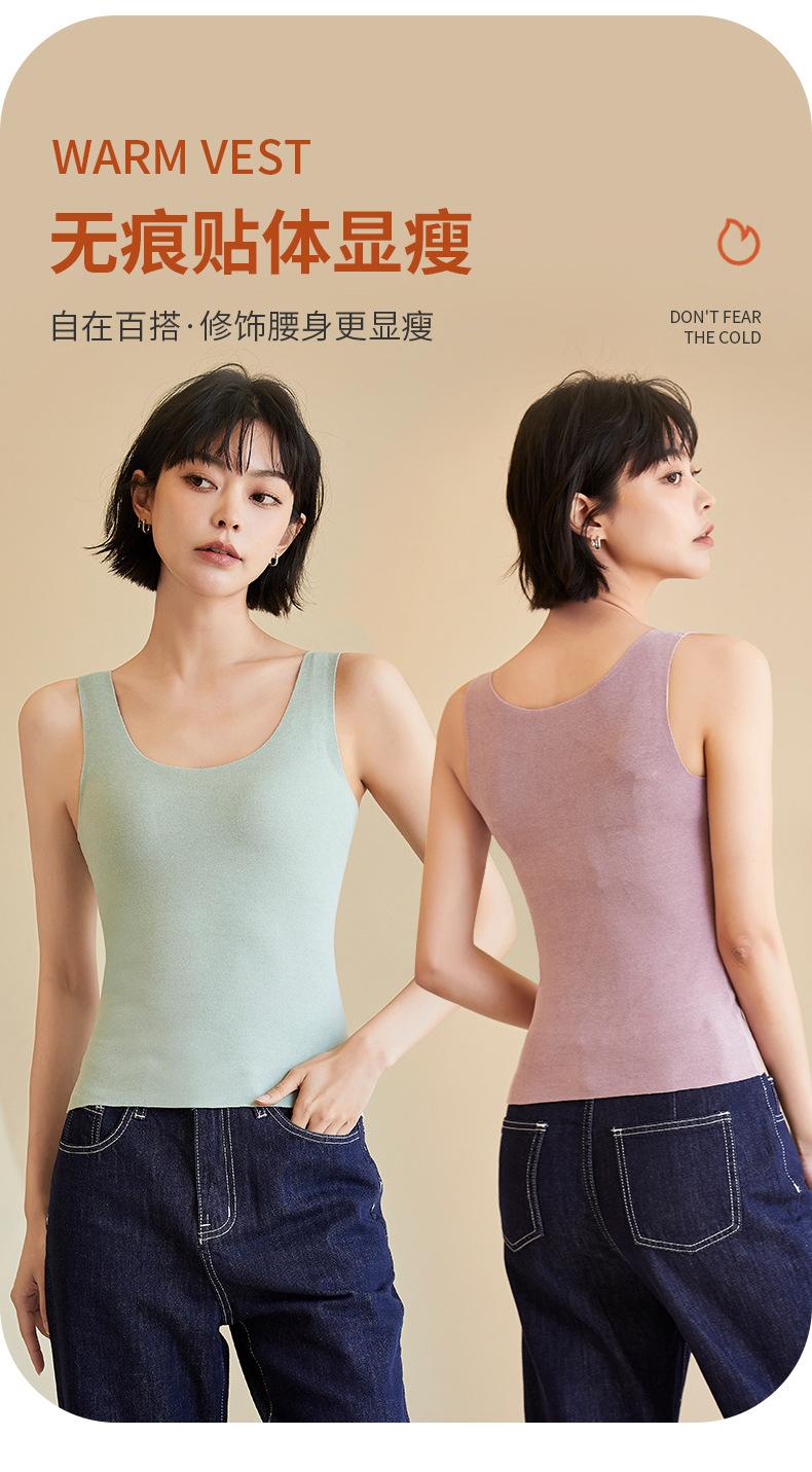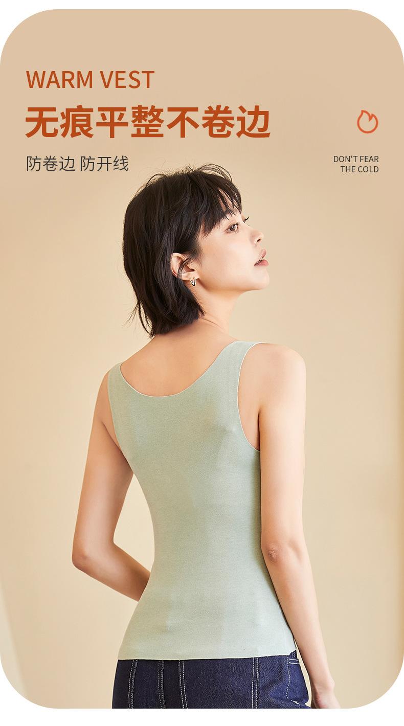 Chaleco cálido con tirantes de terciopelo y autocalentamiento sin costuras para otoño e invierno para mujer, camiseta de fondo con espalda calentada y vientre engrosado