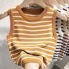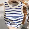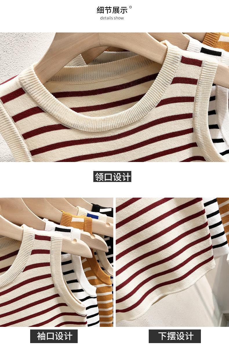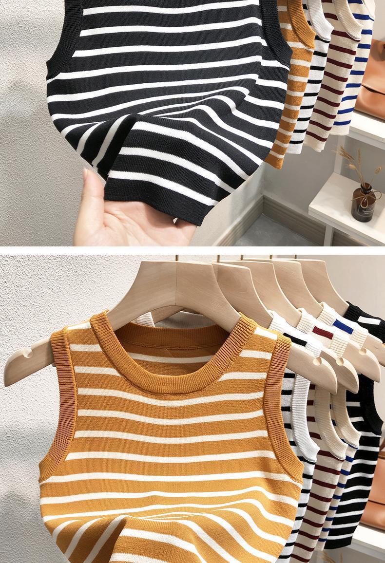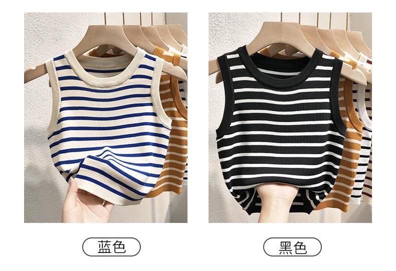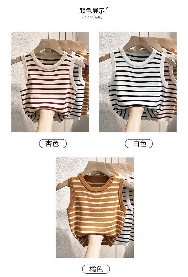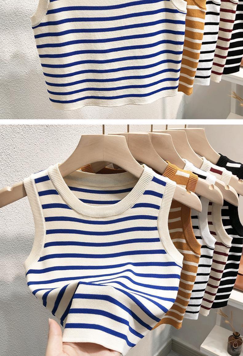 Camisola de seda de hielo para mujer, camiseta interior de verano, para uso interior y exterior, año nuevo, top de punto corto a rayas negro