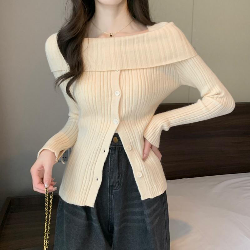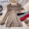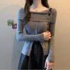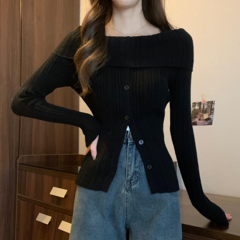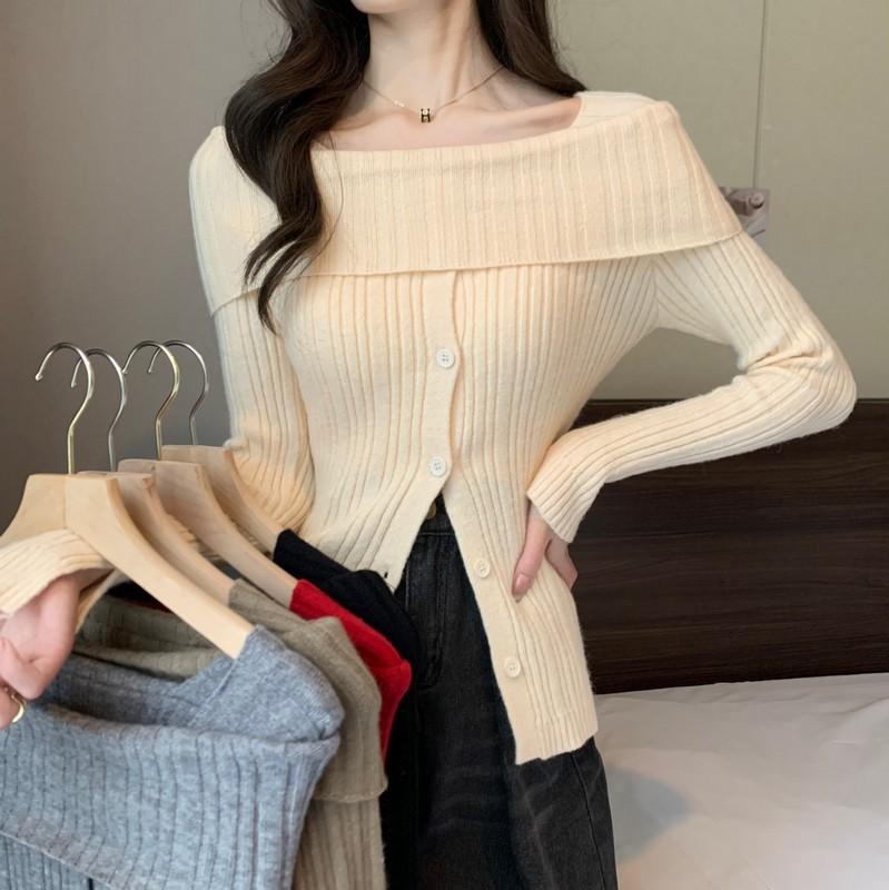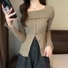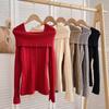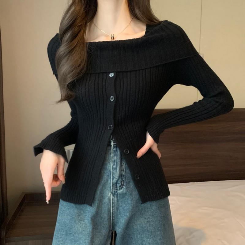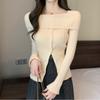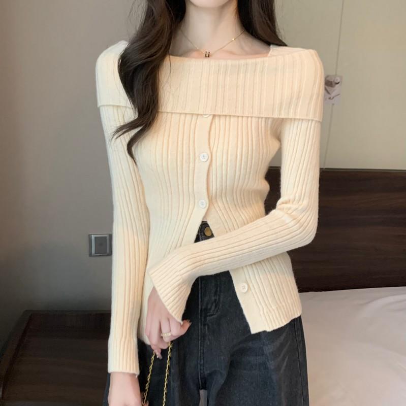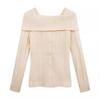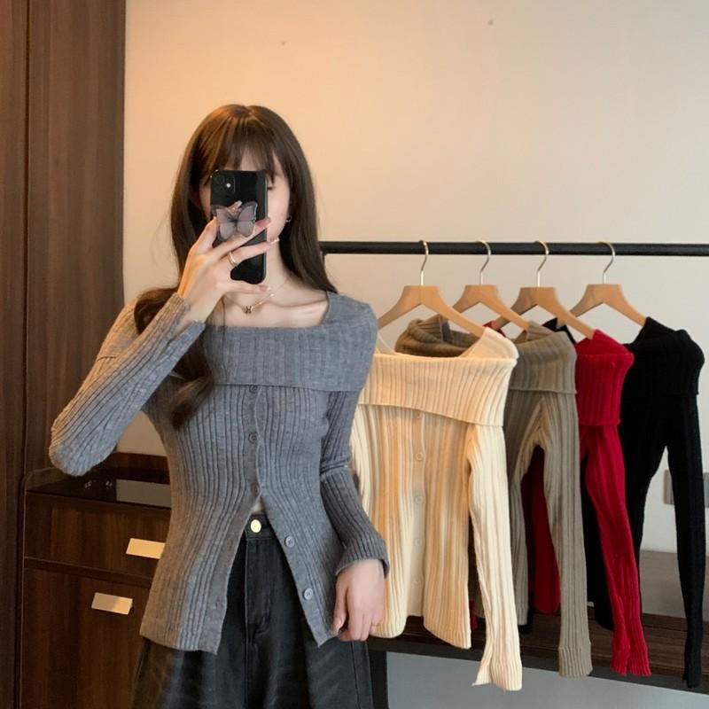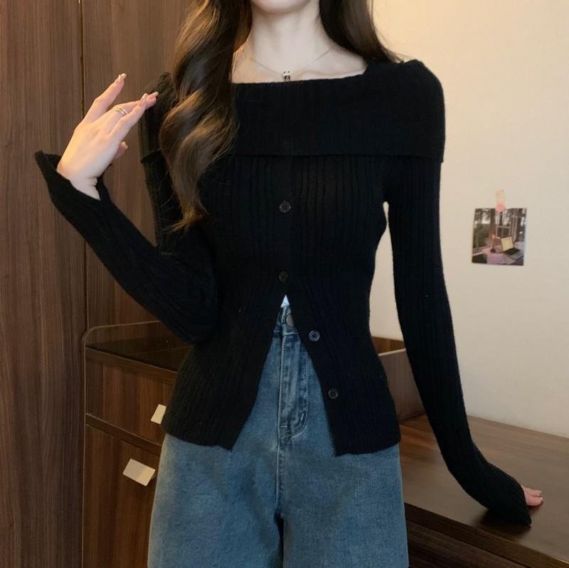 Suéter de cuello cuadrado dividido con diseño de estilo coreano de estilo suave para mujer, nueva moda elegante de otoño, top adelgazante ajustado