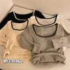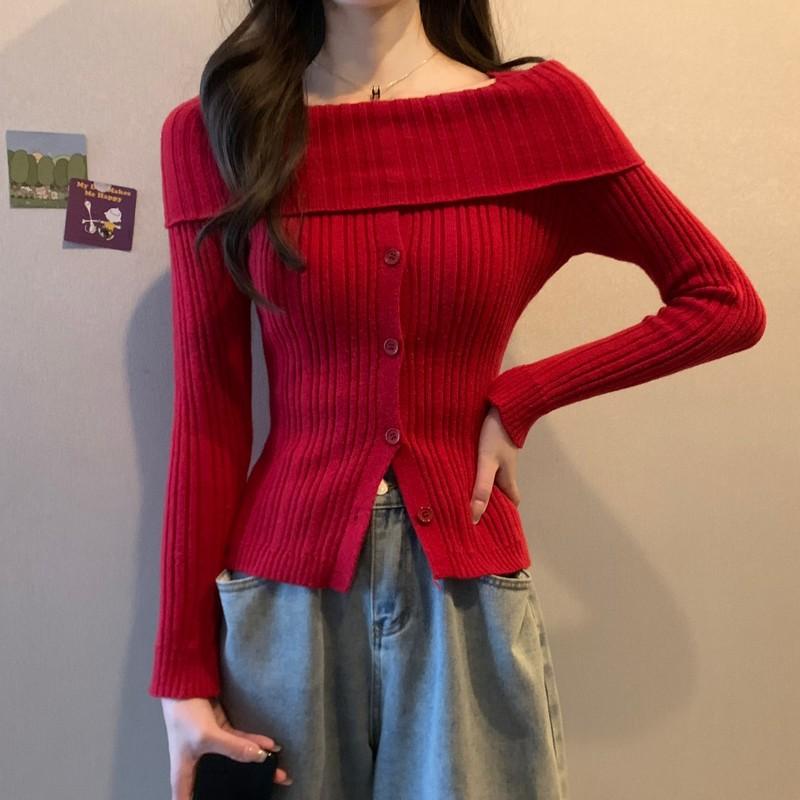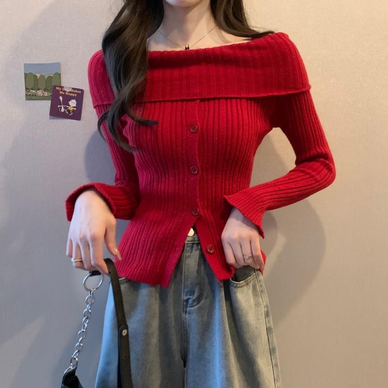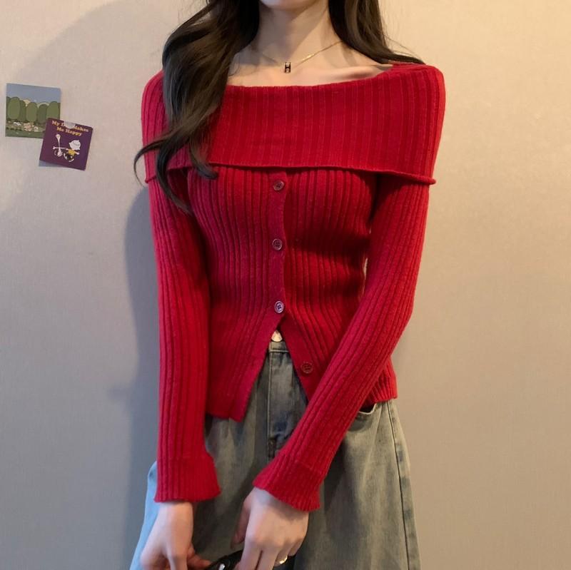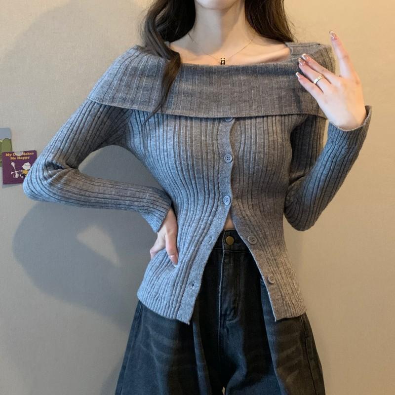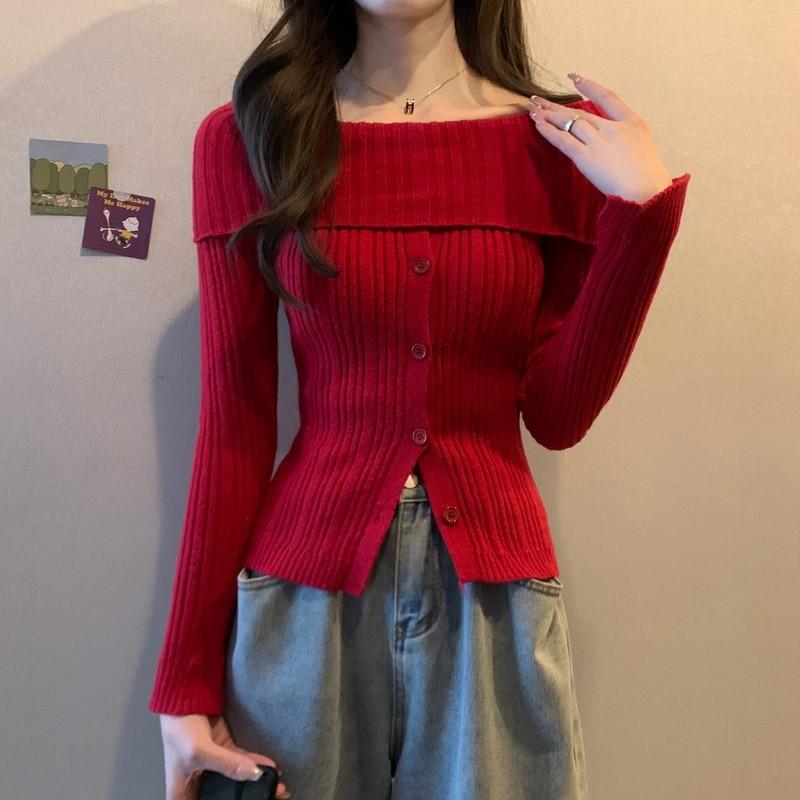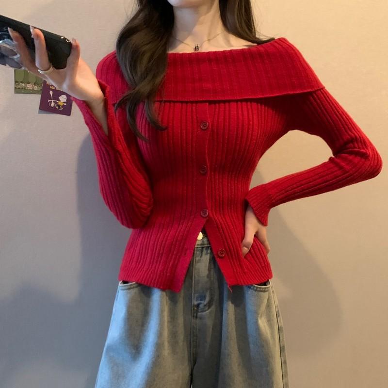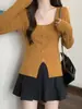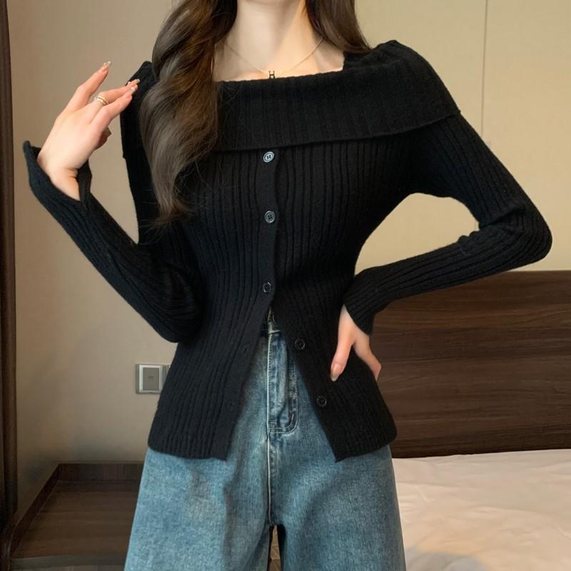 Suéter de cuello cuadrado dividido con diseño de estilo coreano de estilo suave para mujer, nueva moda elegante de otoño, top adelgazante ajustado