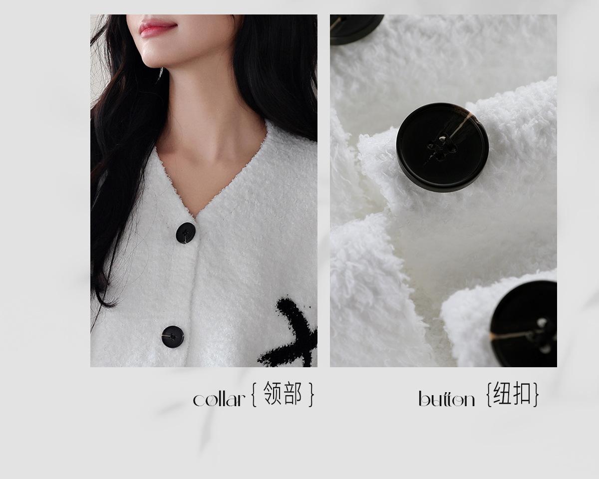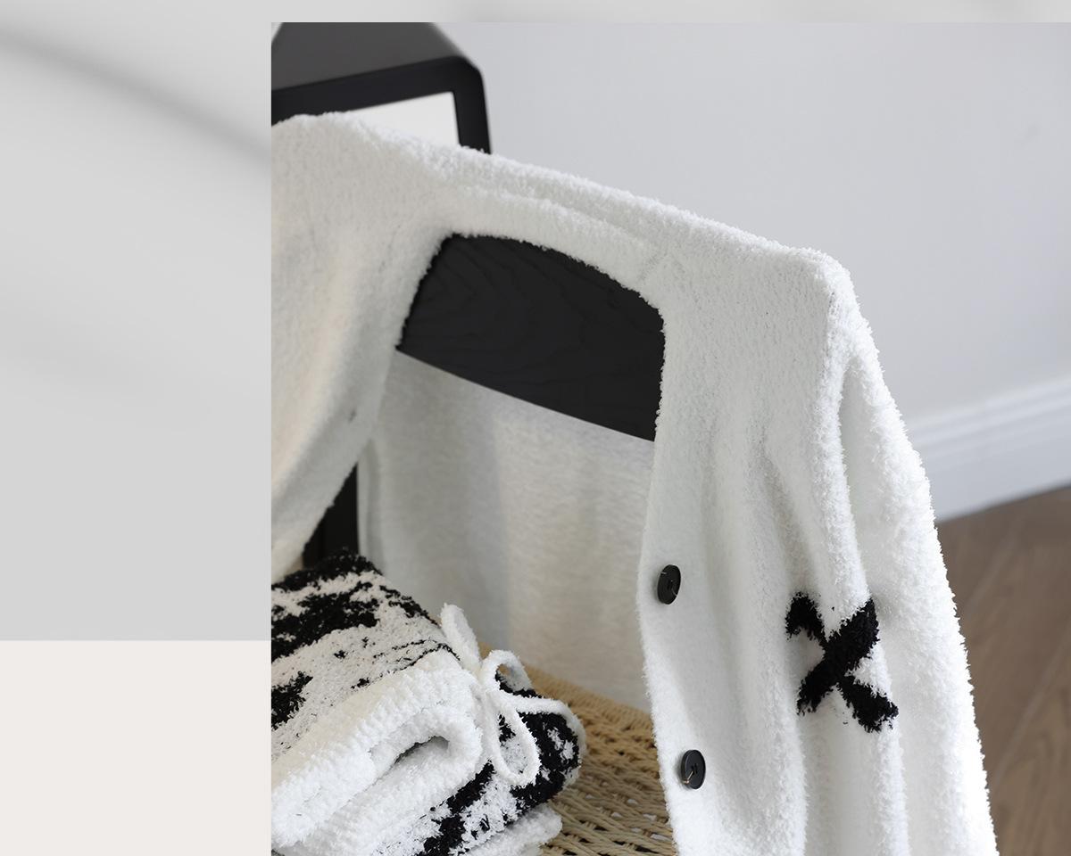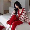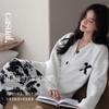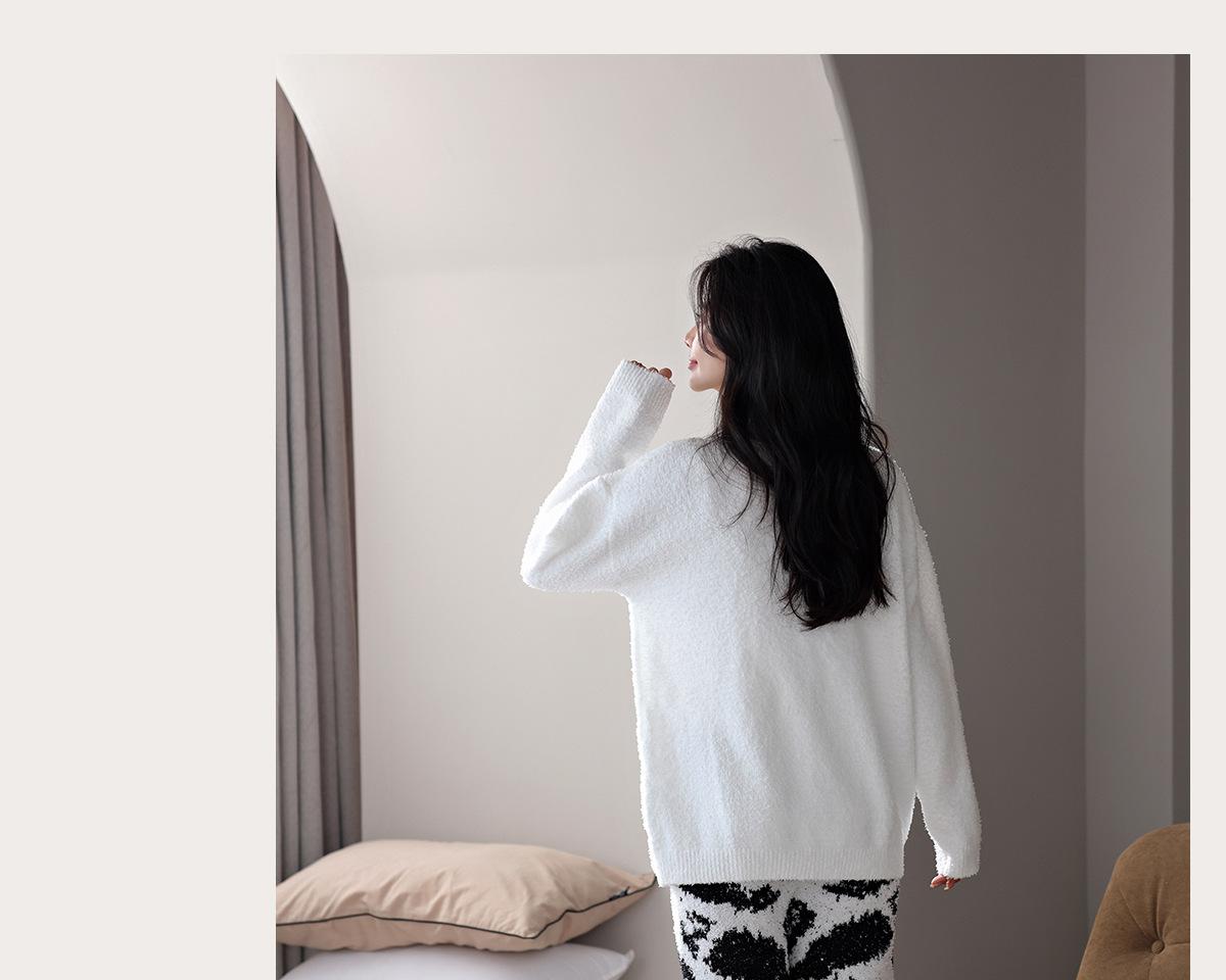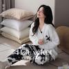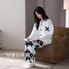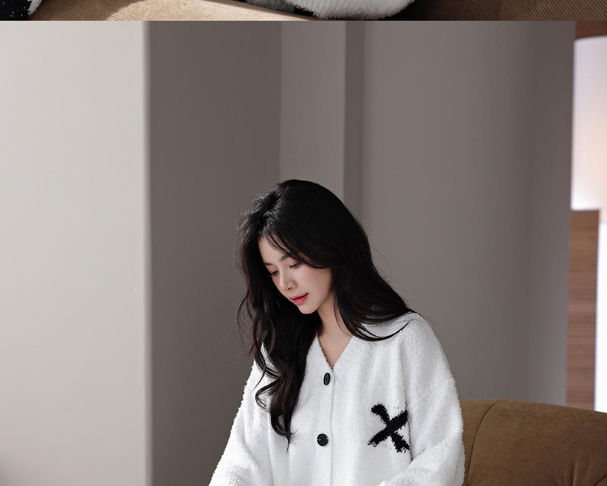 [Terciopelo Suave y Esponjoso] Pijama de Color Contrastante Blanco y Negro para Mujer, Otoño e Invierno Cálido Terciopelo Coral Engrosado Set para Casa de Niña