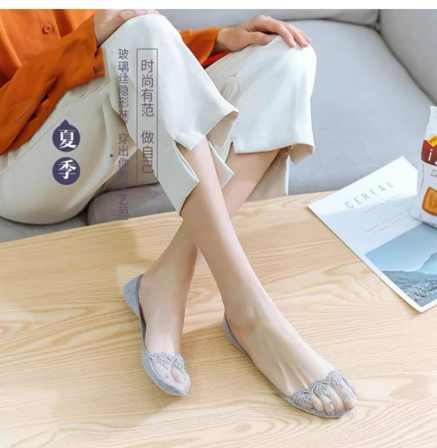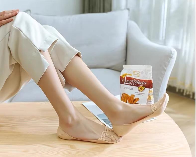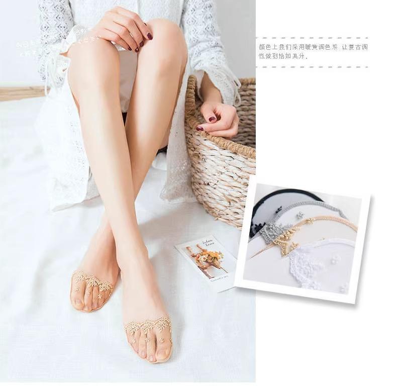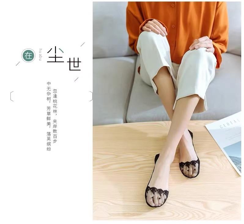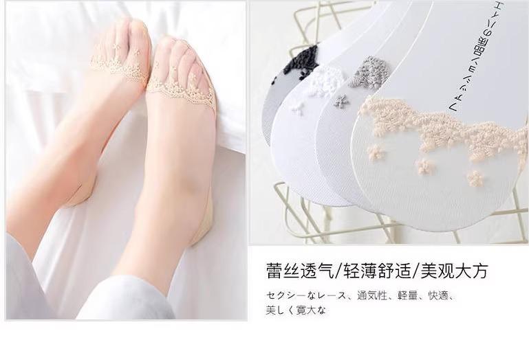 Calcetines tobilleros de encaje para mujer, de corte bajo, de silicona, antideslizantes, sexys, finos, de verano, con tacones altos, calcetines invisibles bordados.