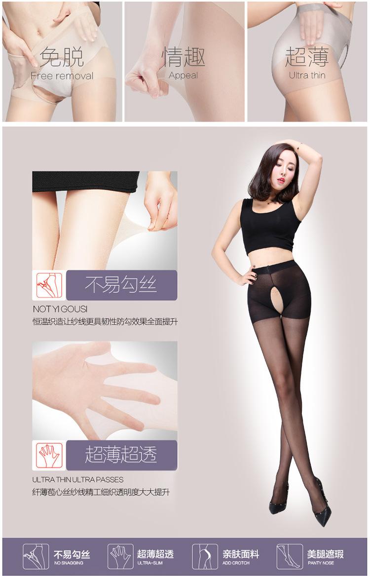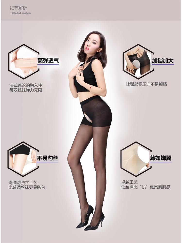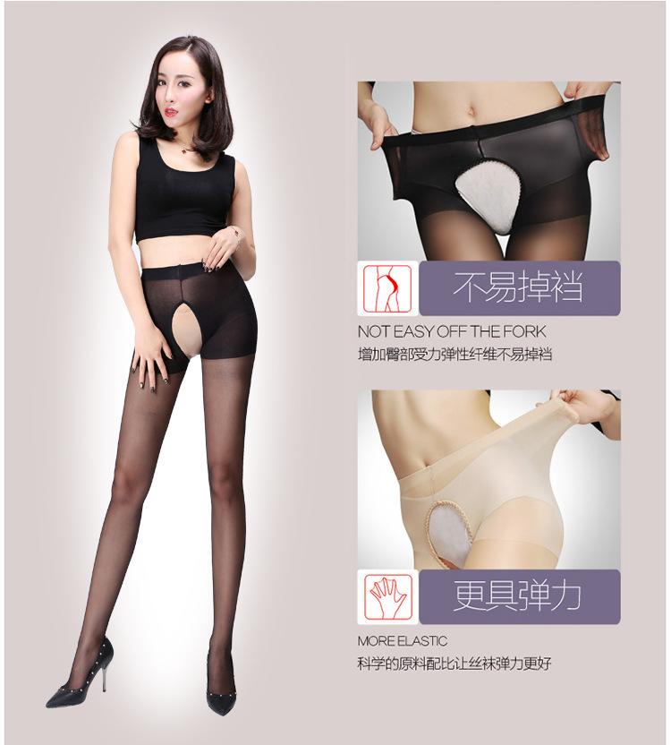 Medias de seda sexys de verano con entrepierna abierta, uniformes, largas y finas, de seda negra.
