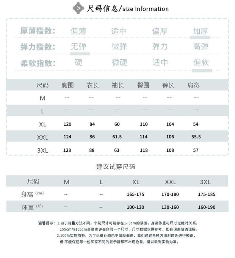 XL Height 165-175 Weight 50-65kg, XXL Height 170-180 Weight 65-80kg, XXXL Height 175-185 Weight 80-95kg
