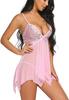 Pijamas Sexy para Mujer, Aberturas de Color, Espalda Hermosa, Tentación de Encaje, Pechos Pequeños, Tirantes Grandes, Camisón de Malla, Falda Fina al Mayoreo