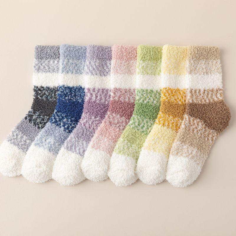 Calcetines de terciopelo coral de otoño e invierno calcetines de piso para hombres y mujeres calcetines para dormir de medio terciopelo calcetines de tubo gruesos y cálidos de invierno