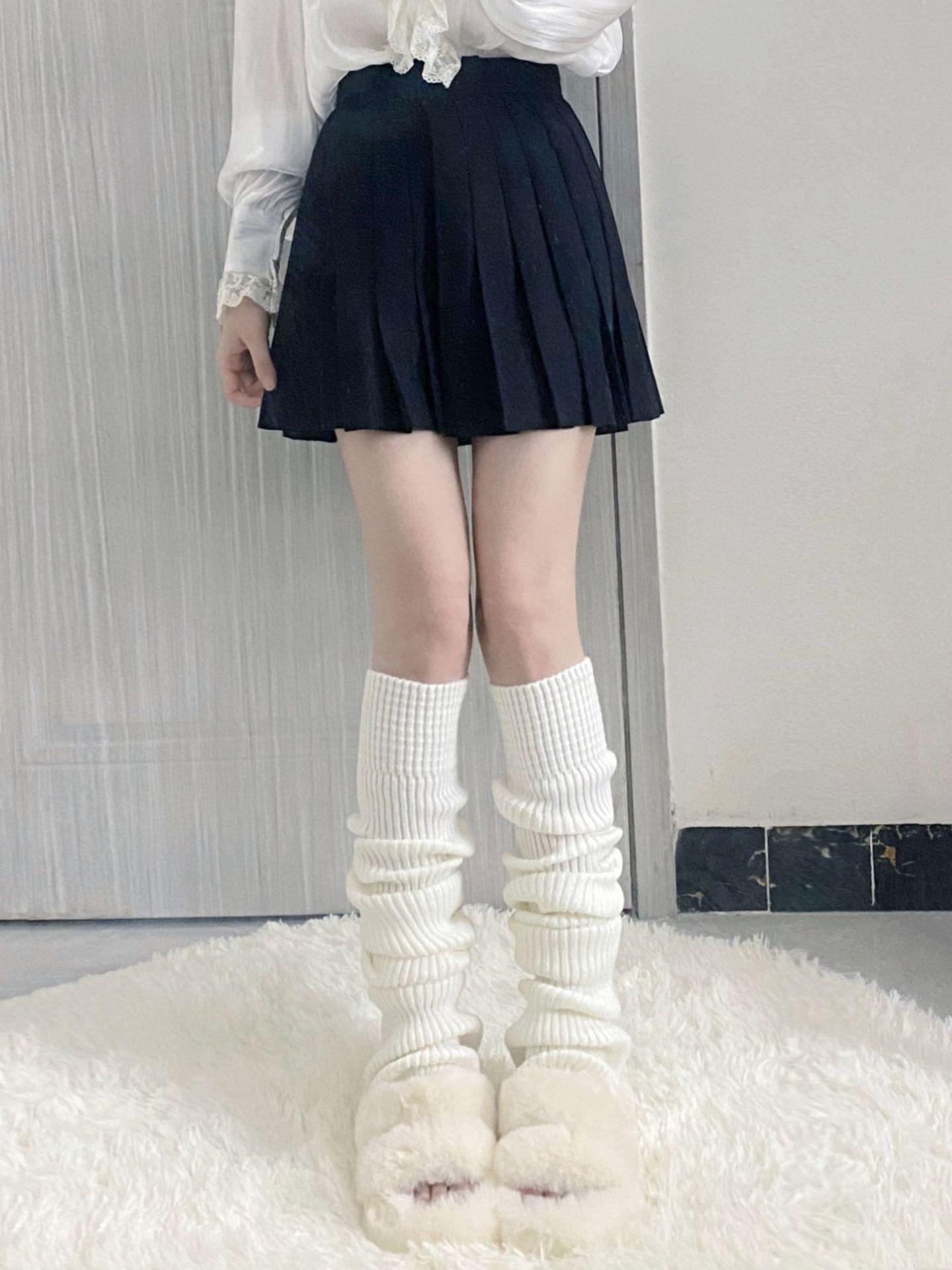 Calcetines por encima de la rodilla para mujer, de punto blanco, hasta la mitad de la pantorrilla, cálidos, japoneses, para otoño e invierno