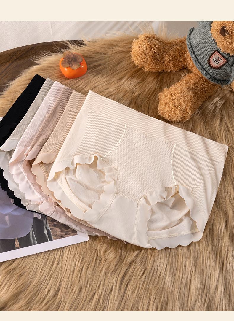 Ropa Interior de Algodón Puro Japonés para Mujer Calzones Espiral de Cintura Media sin Costuras Vientre Cadera Melocotón Parte Inferior de Algodón Ondulado