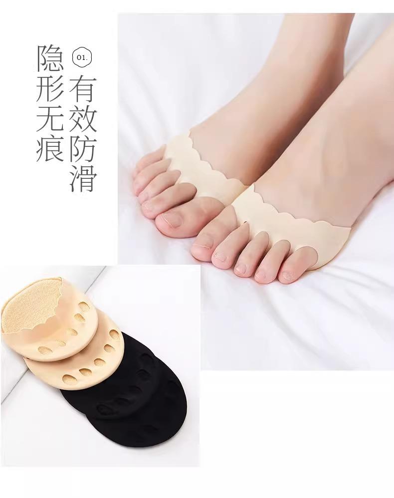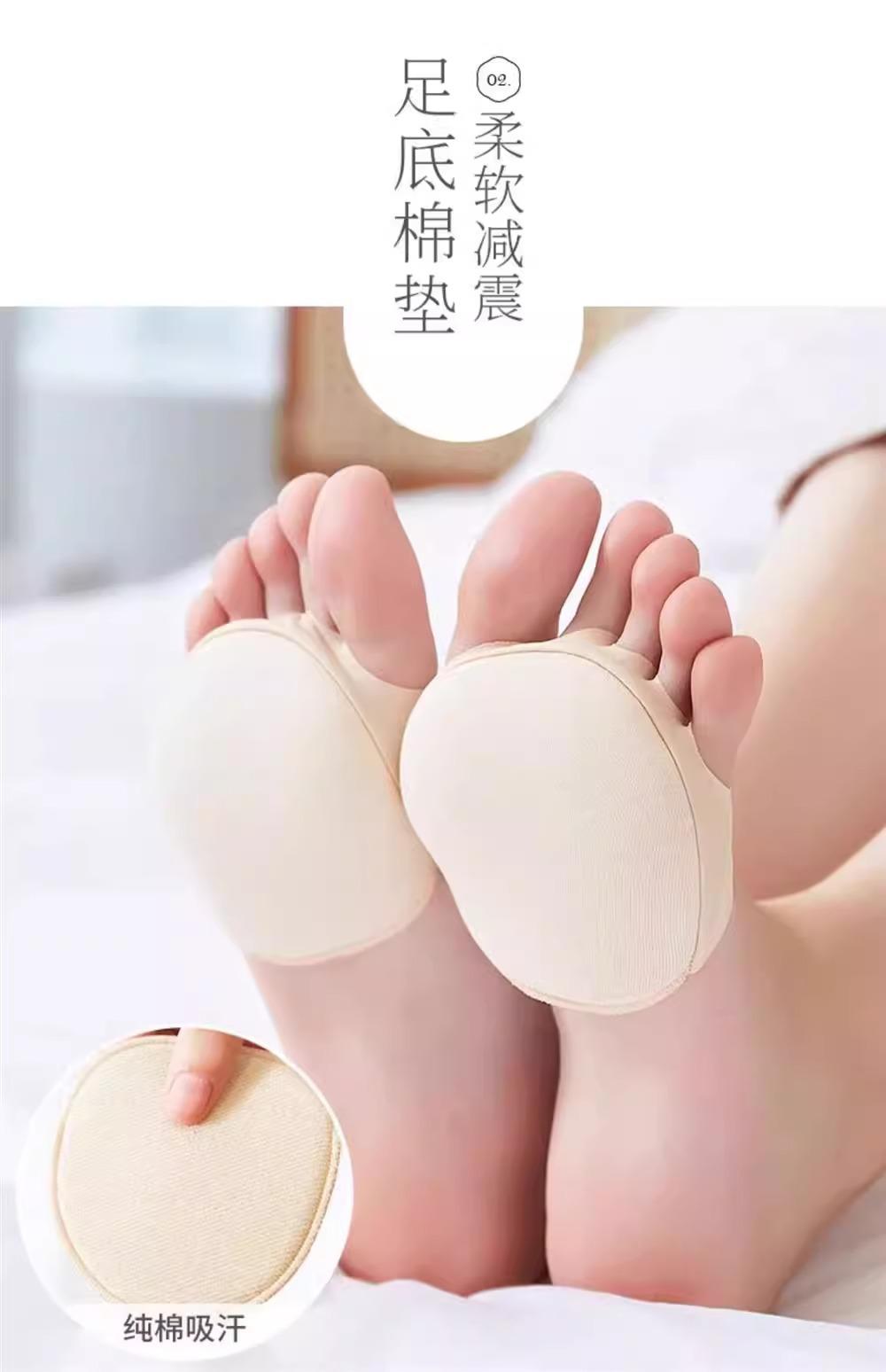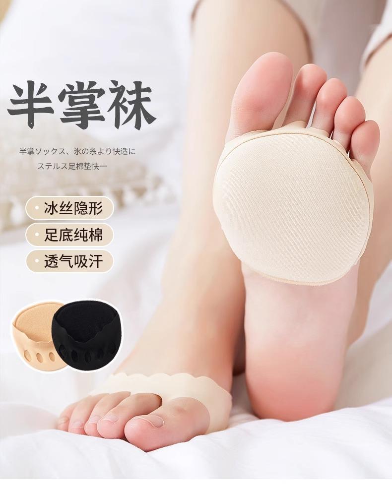 Calcetines de media palma para mujer, almohadillas para los pies de cinco dedos, almohadilla para el antepié, suela de algodón, absorbentes del sudor, antideslizantes, tacones altos, calcetines invisibles de medio pie, venta al por mayor