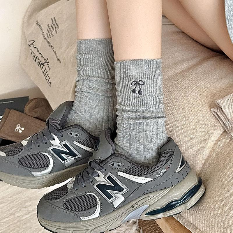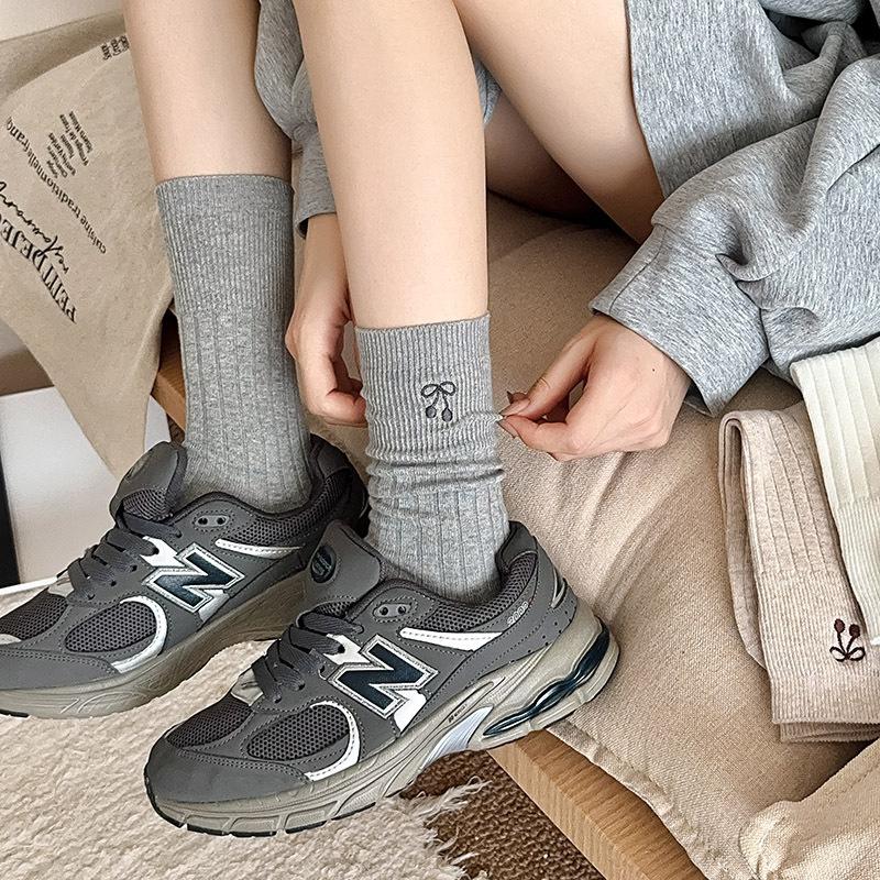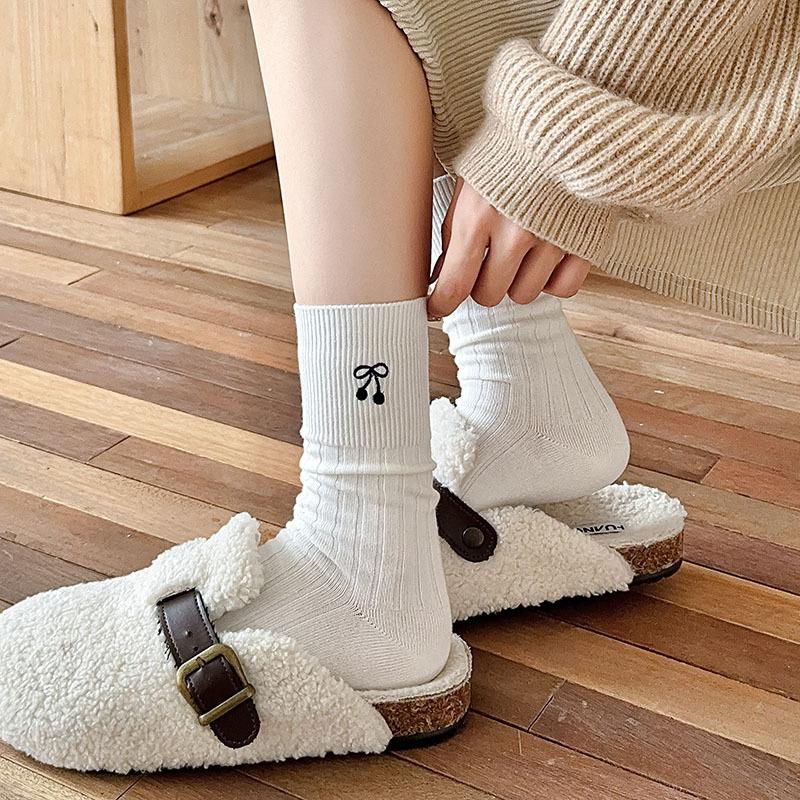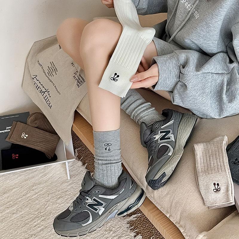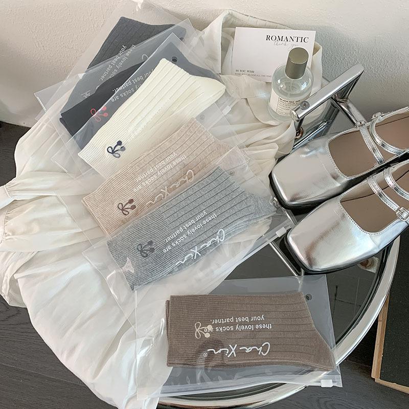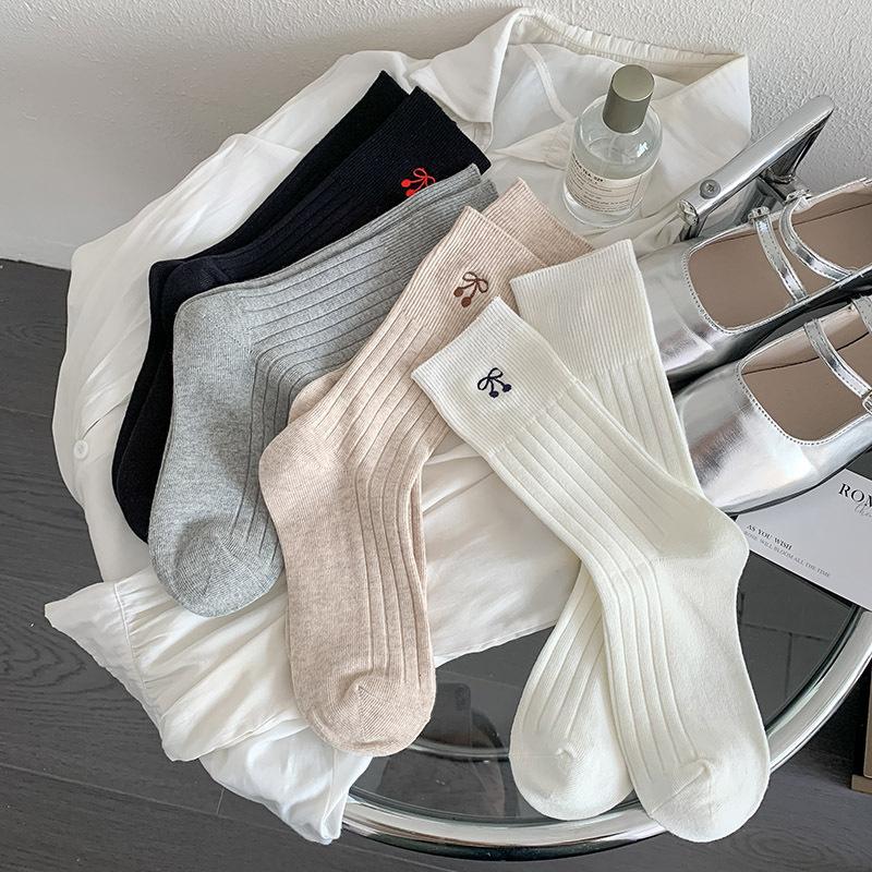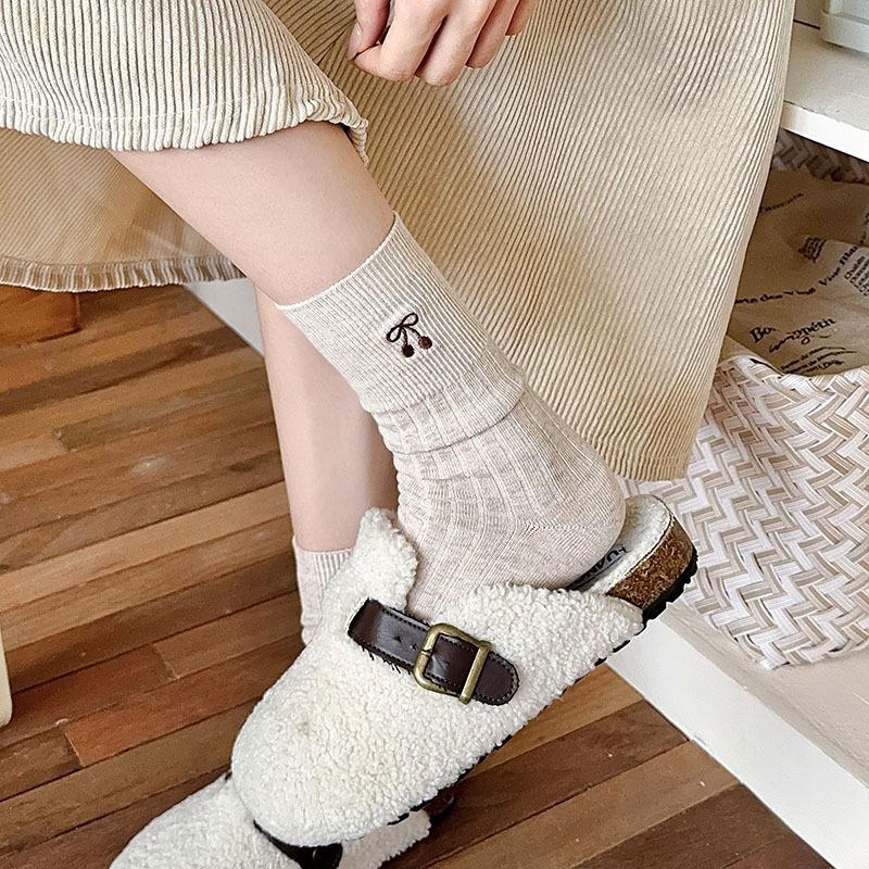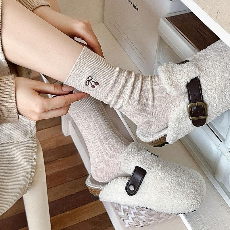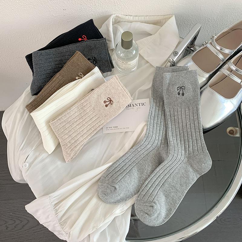 Medias japonesas con bordado de cerezas de colores para niños, calcetines de mujer, cajones, calcetines apilados de moda de otoño e invierno, algodón, venta al por mayor, embalaje independiente