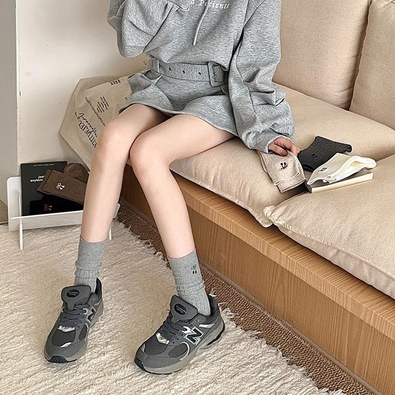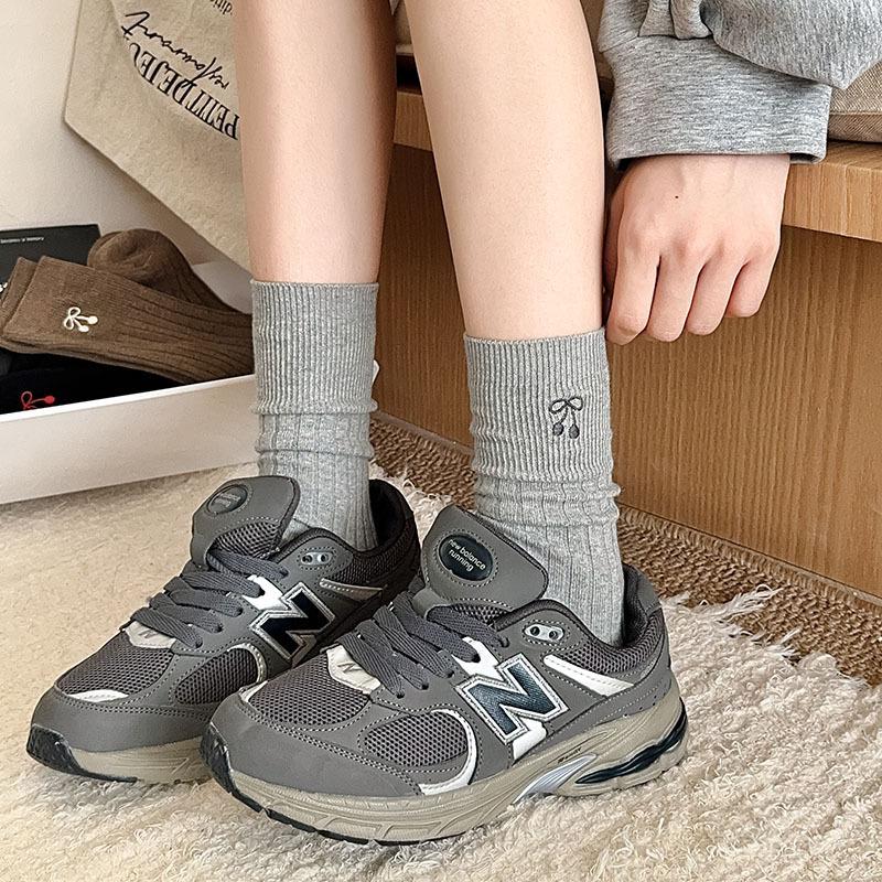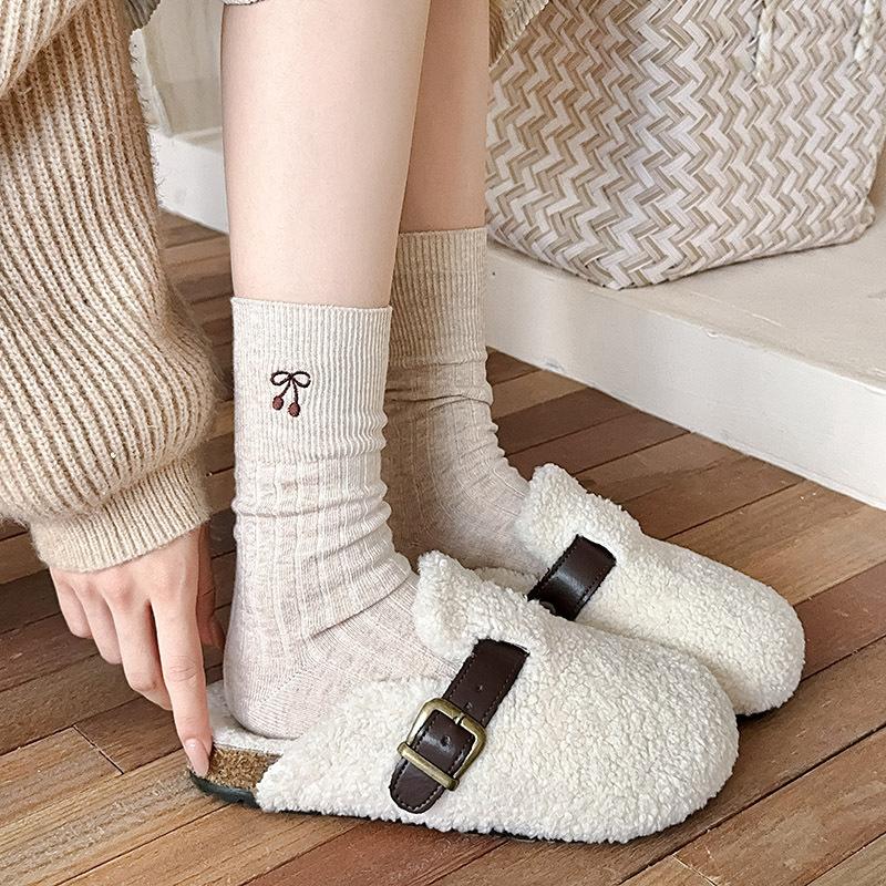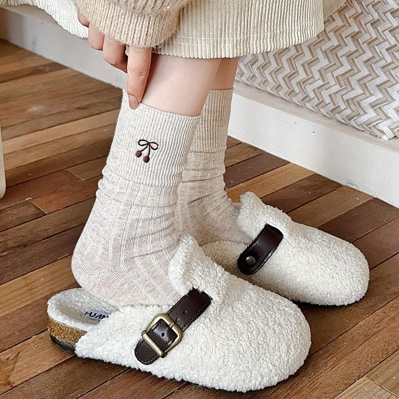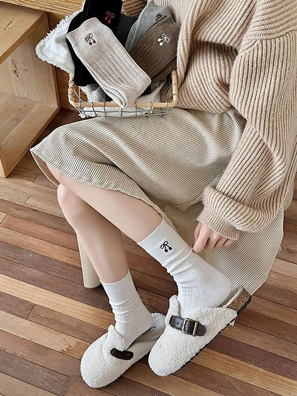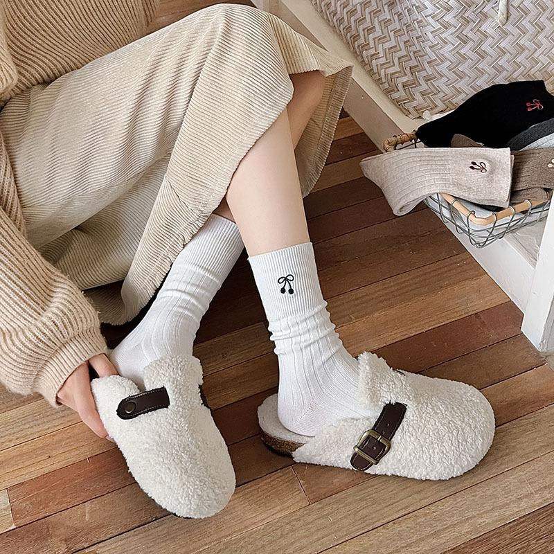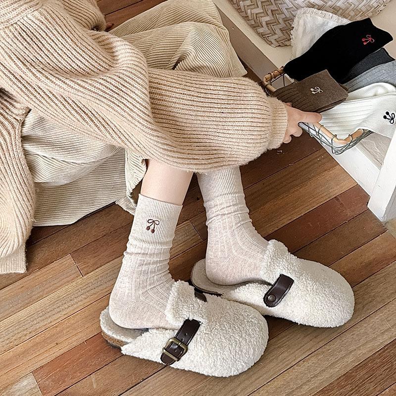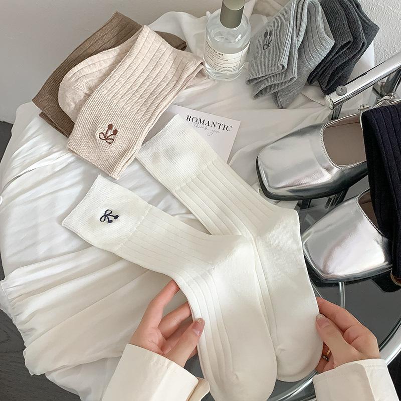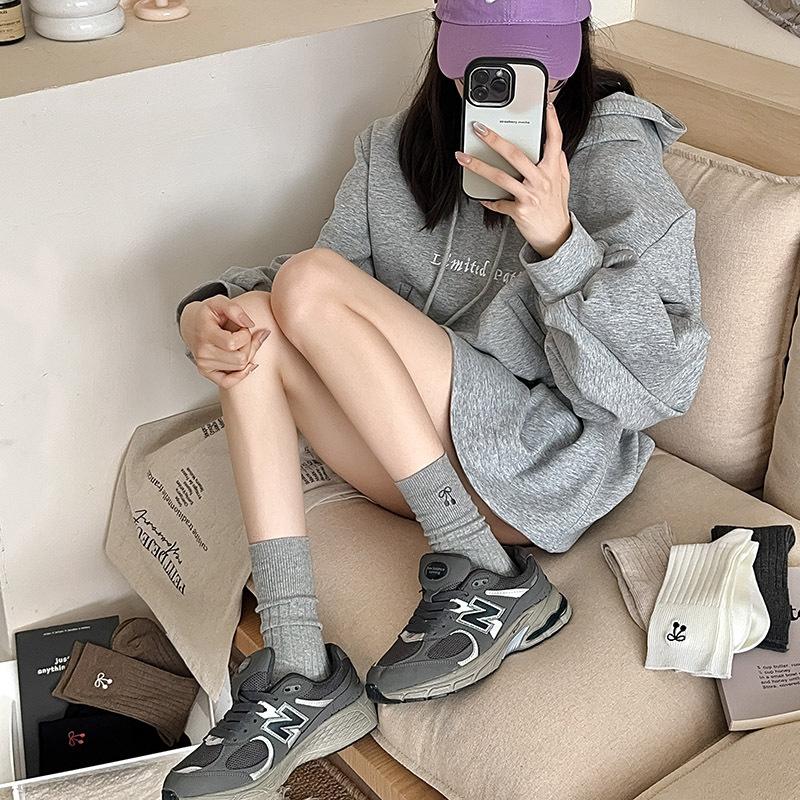 Medias japonesas con bordado de cerezas de colores para niños, calcetines de mujer, cajones, calcetines apilados de moda de otoño e invierno, algodón, venta al por mayor, embalaje independiente