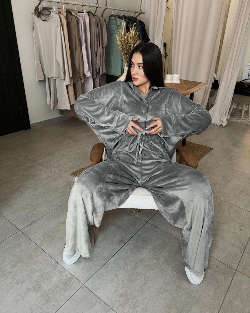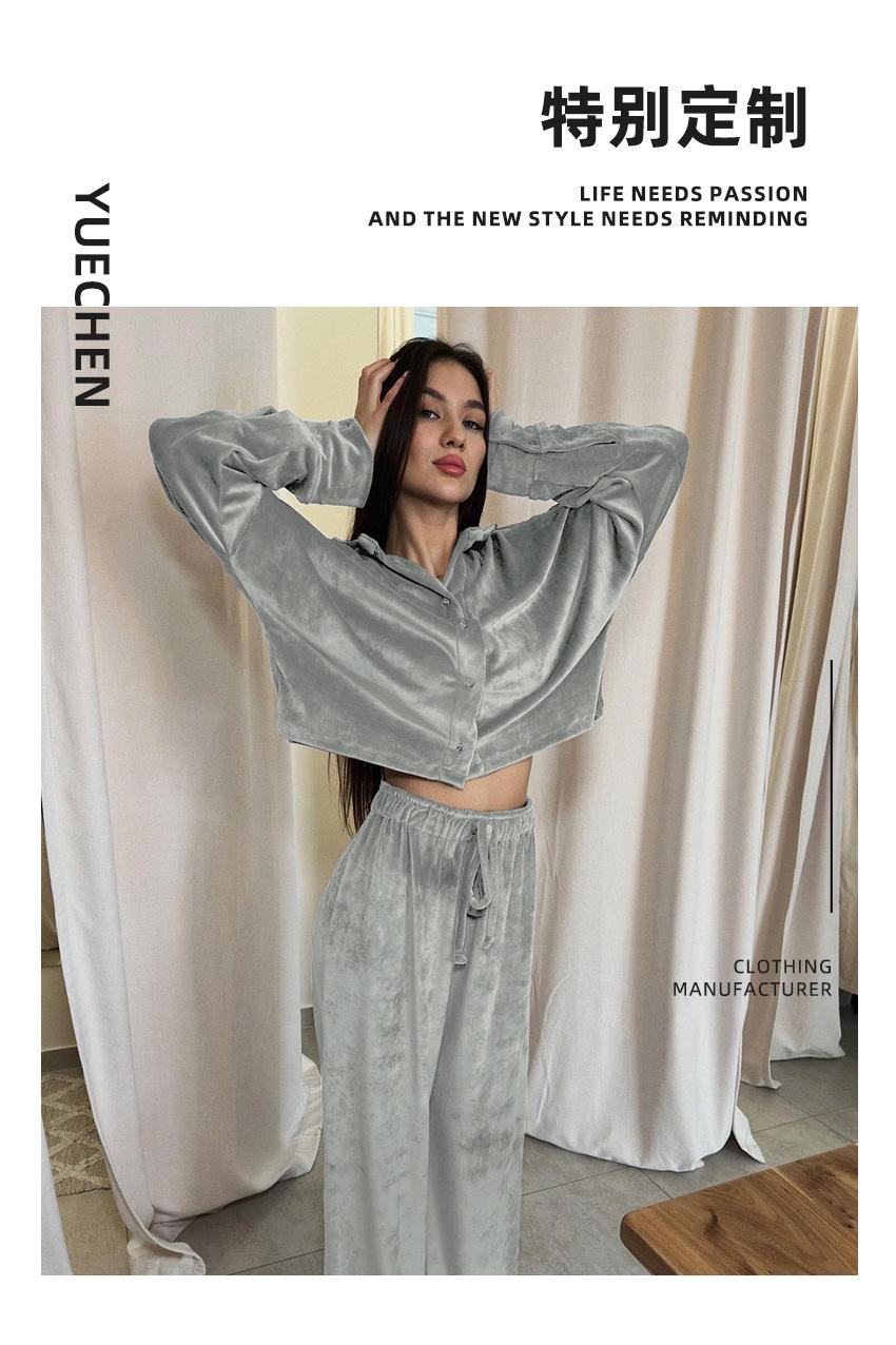 Pijamas de mujer de manga larga, cómodos y cálidos, de terciopelo, sueltos, de otoño e invierno, de estilo europeo y americano, venta al por mayor de ropa para el hogar.