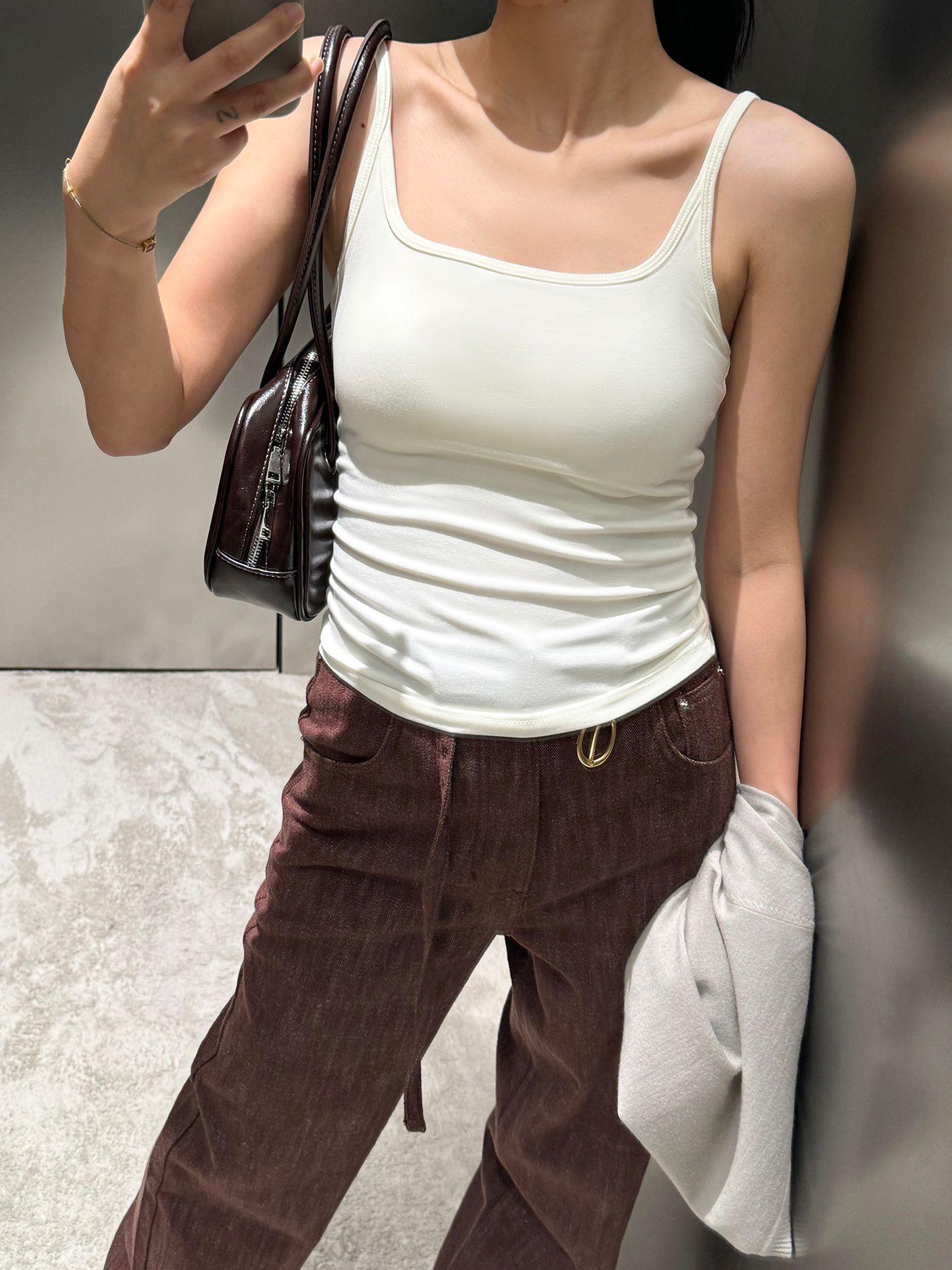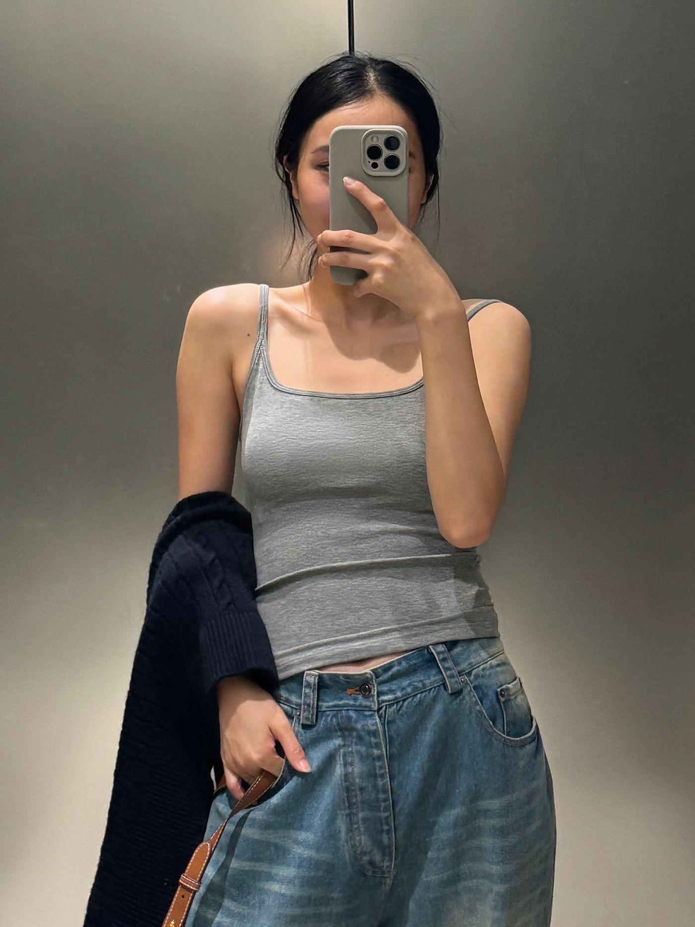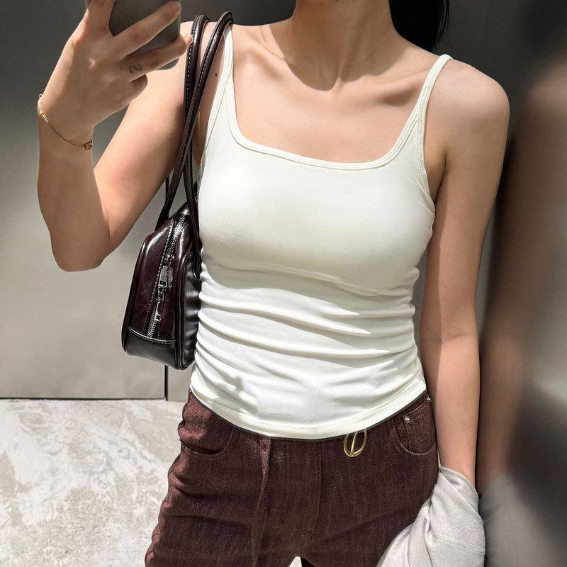 Camisola para Mujer Cinturón Almohadilla para el Pecho Slim Top Base Primavera y Otoño Ropa Interior de Una Pieza Sujetador sin Uso Hermosa Espalda Tira