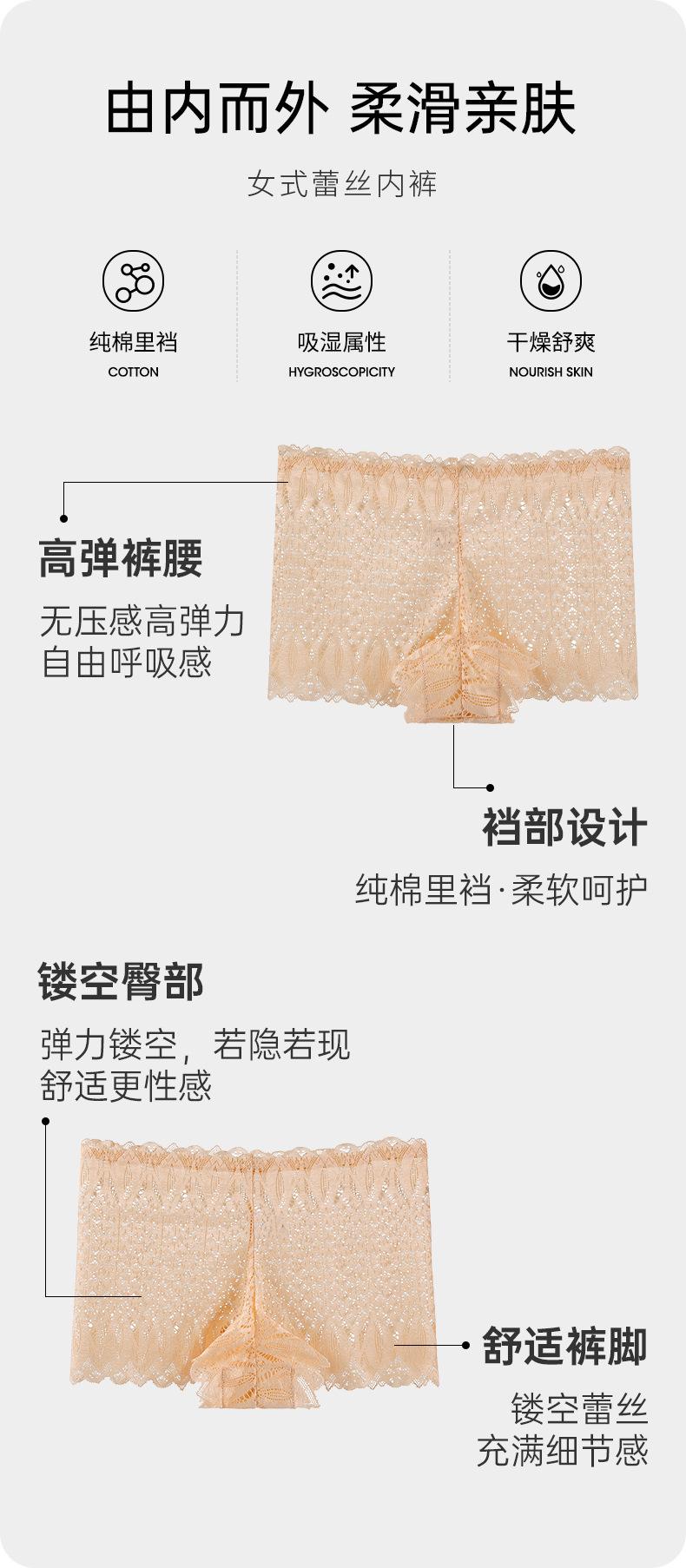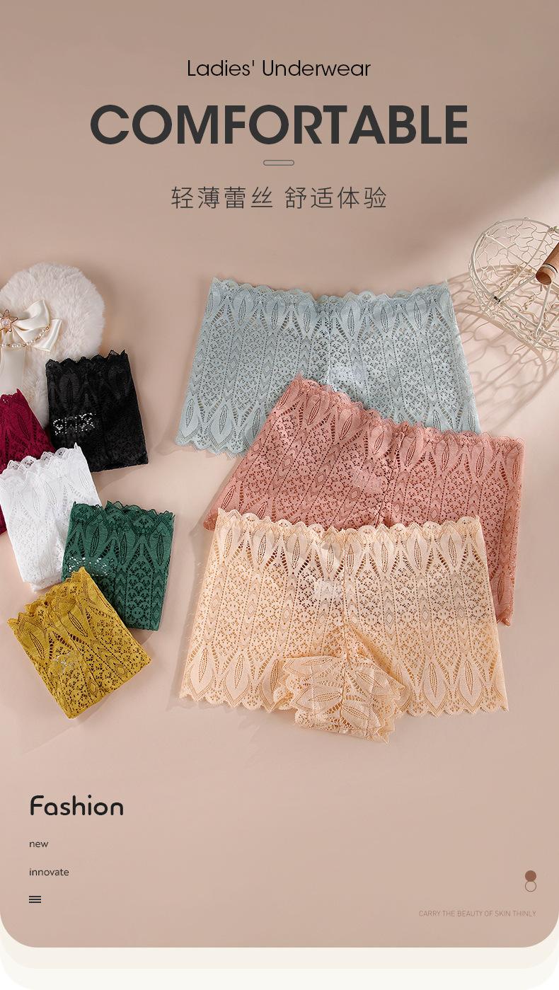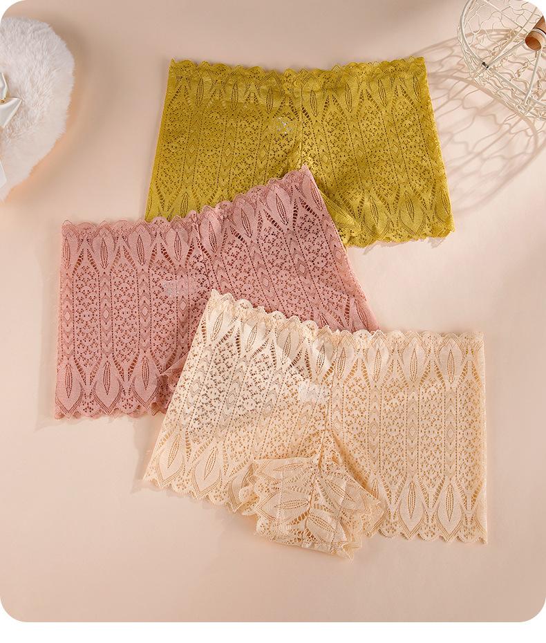 Ropa interior sexy europea y americana para mujer, bóxer de encaje, cintura media, cadera, forma de hoja, hueco, transpirable, talla grande.
