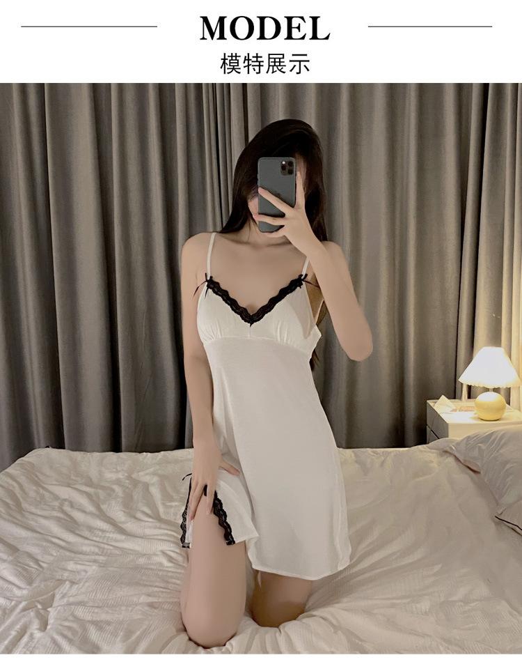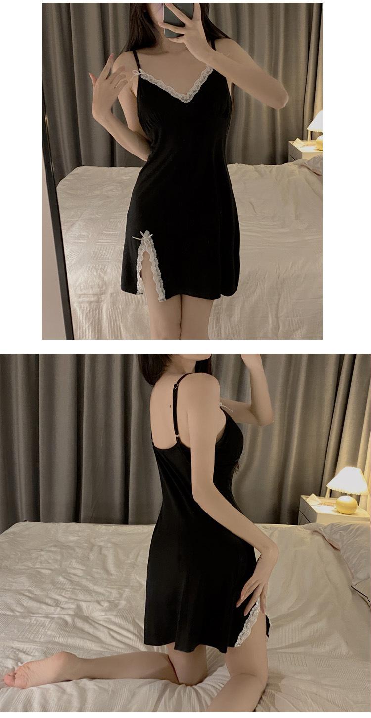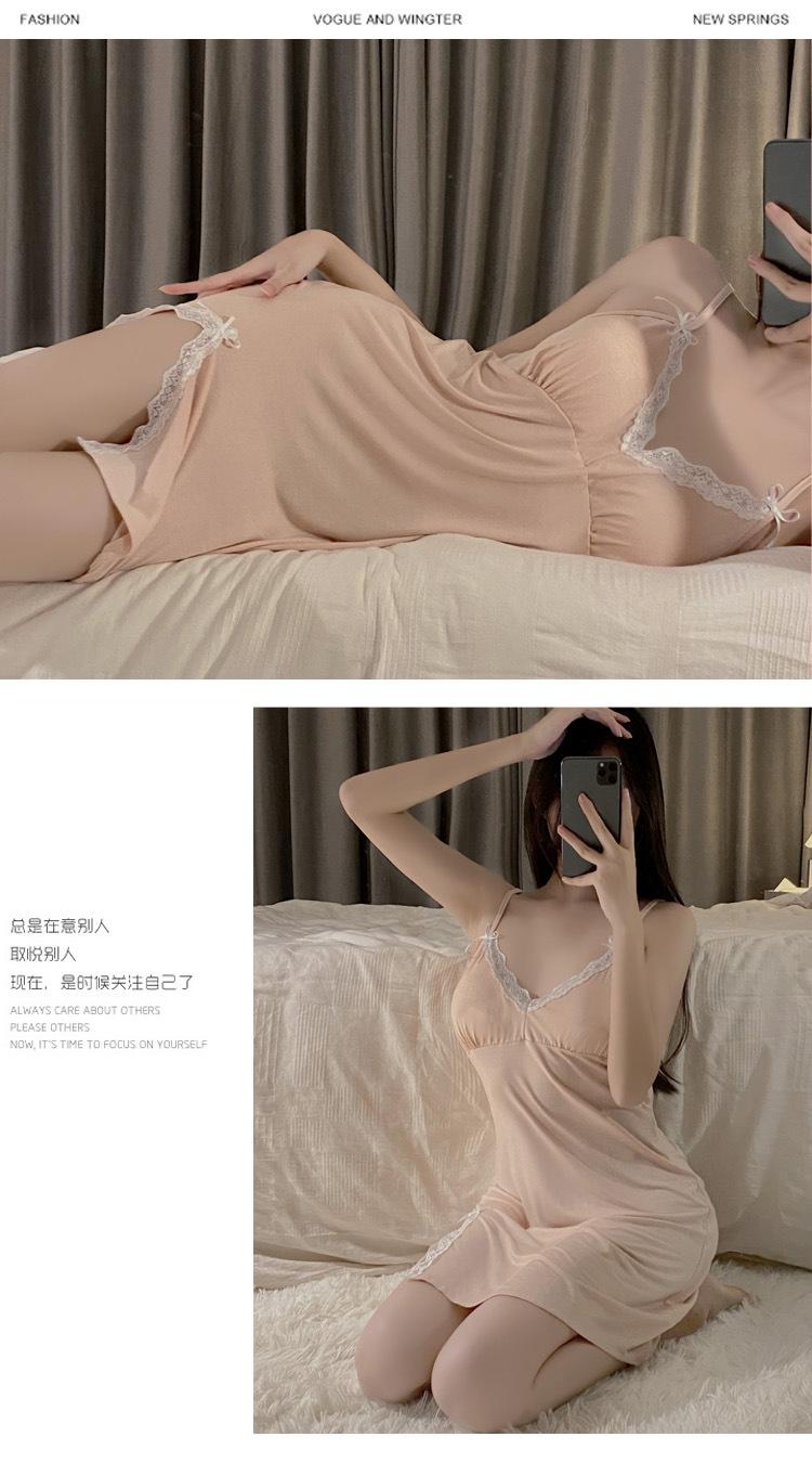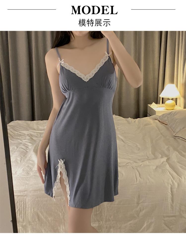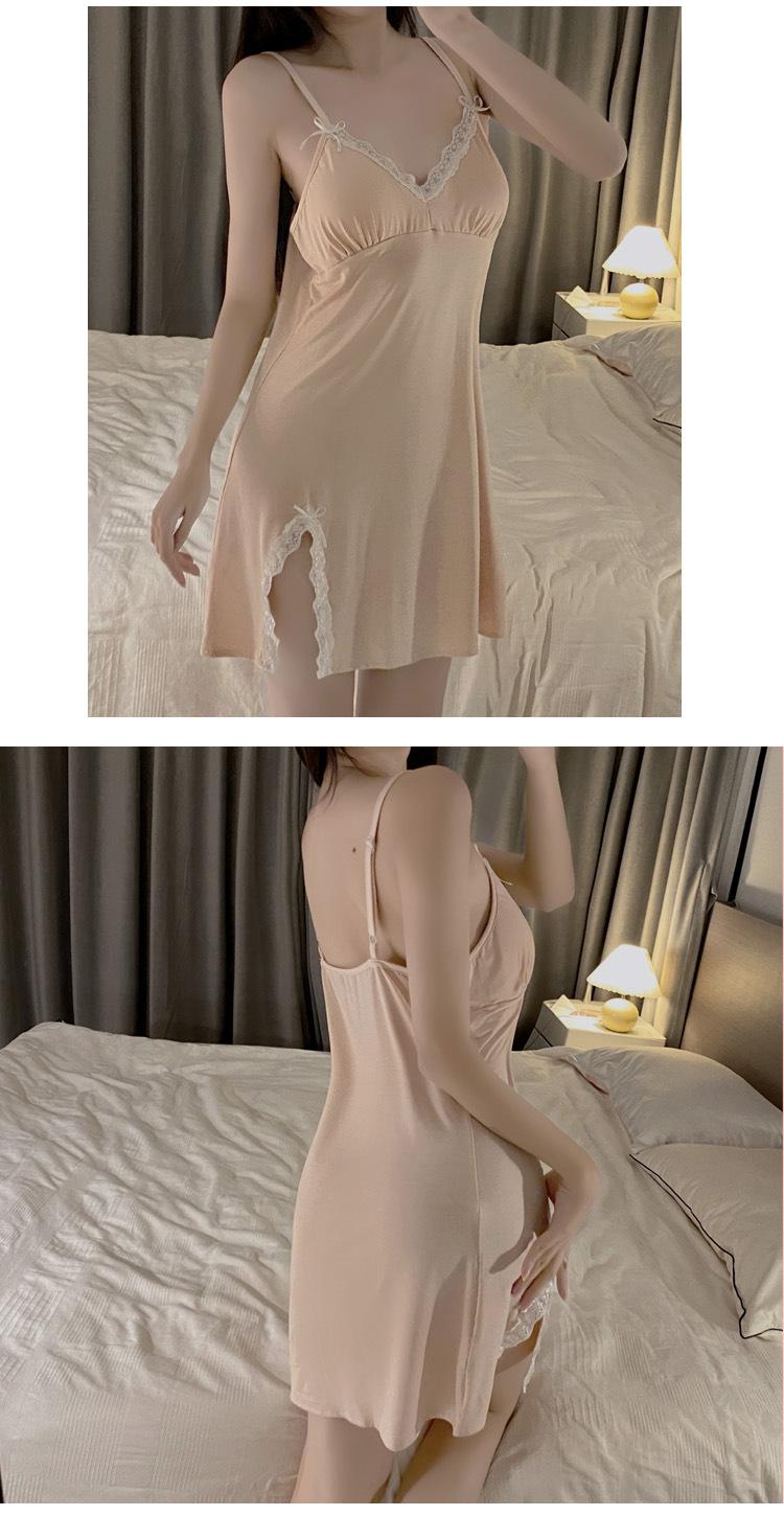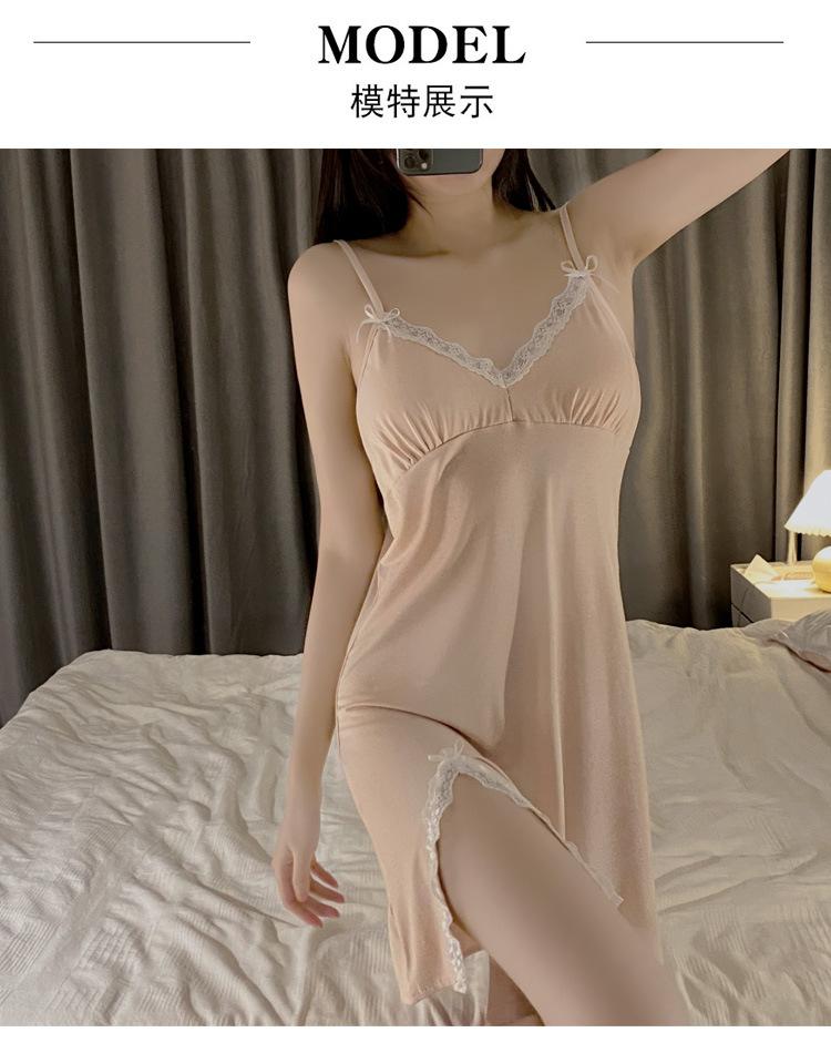 Camisón sexy con tirantes divididos, de verano, modal, color sólido, con encaje, estilo puro deseo, pijama estilo coreano, ropa de casa para mujer