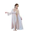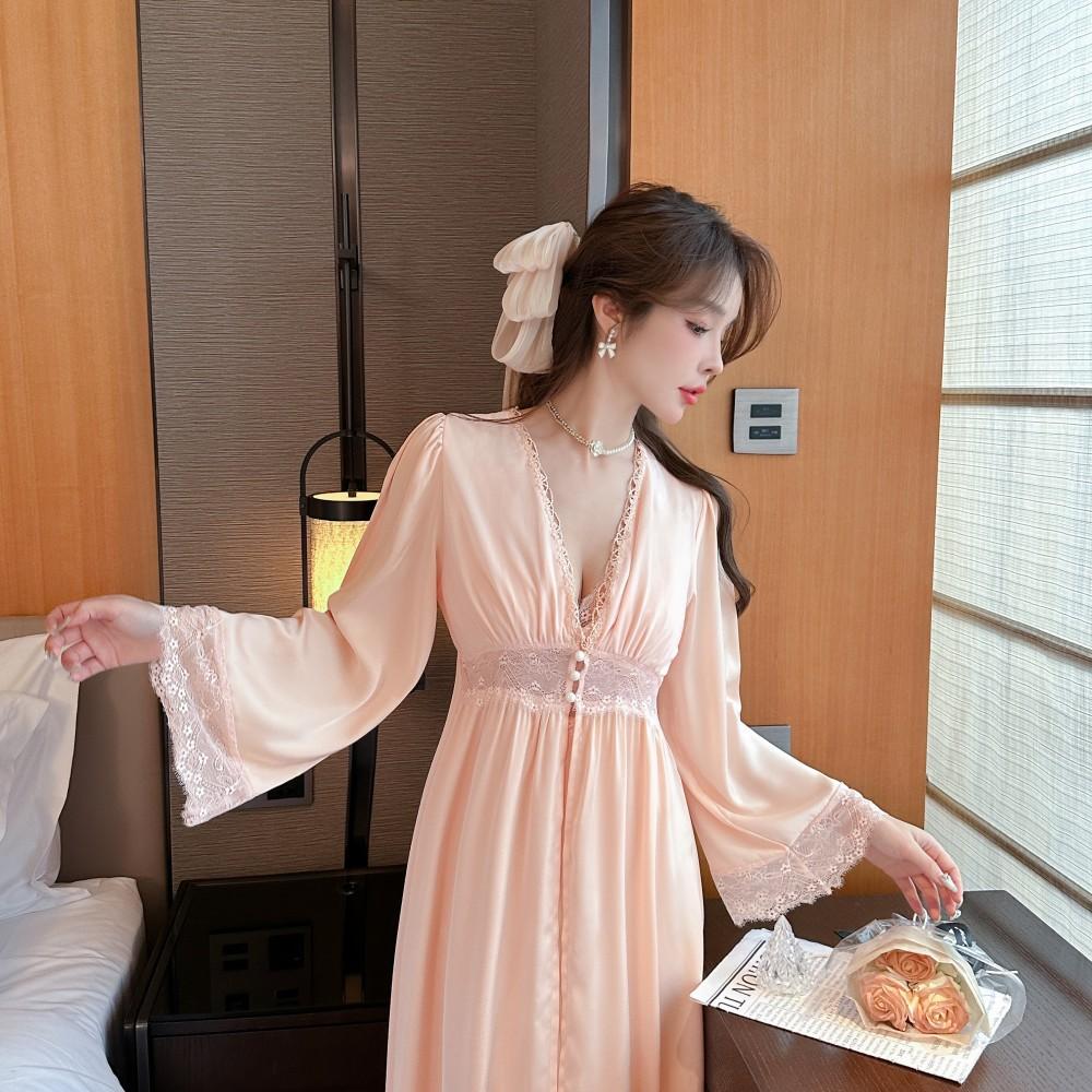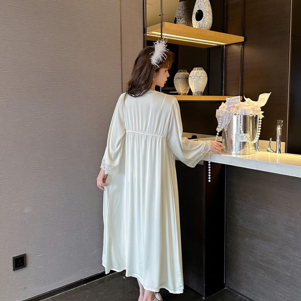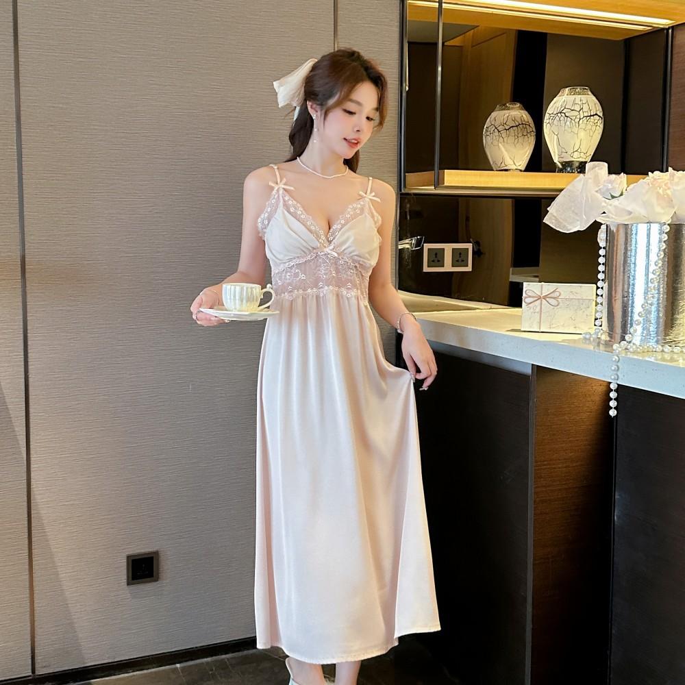 Pijama francés de primavera y otoño para mujer, camisón sexy de dos piezas de encaje de seda helada con tirantes y almohadilla para el pecho, ropa para el hogar