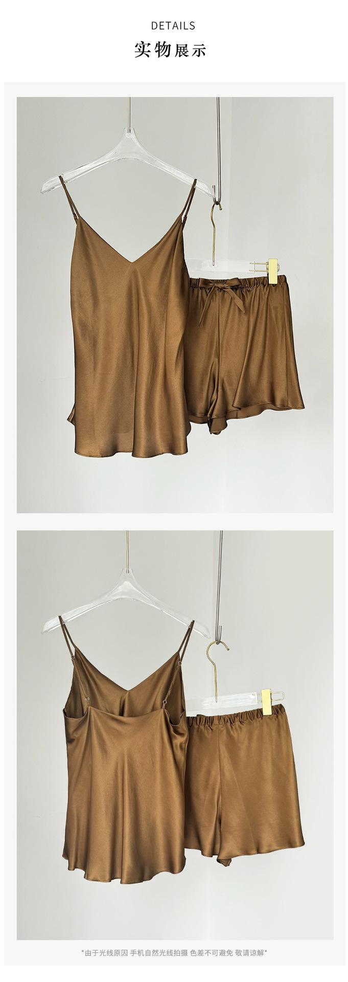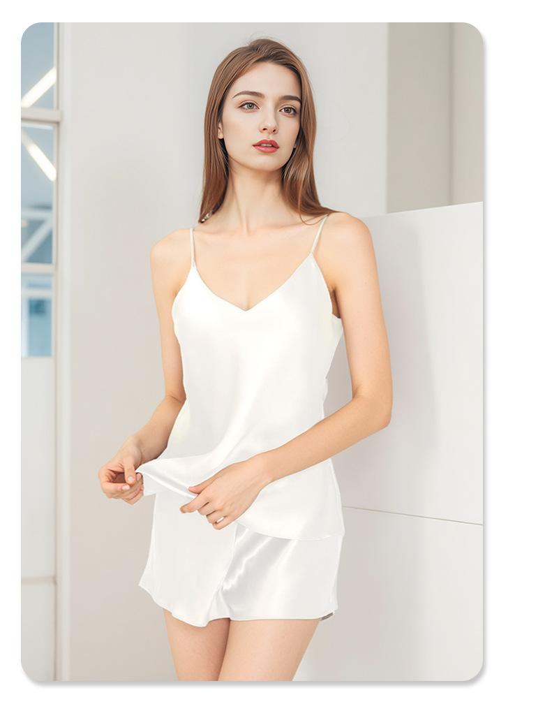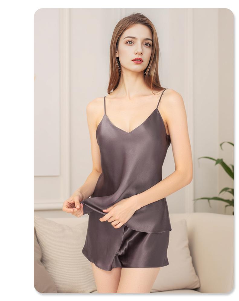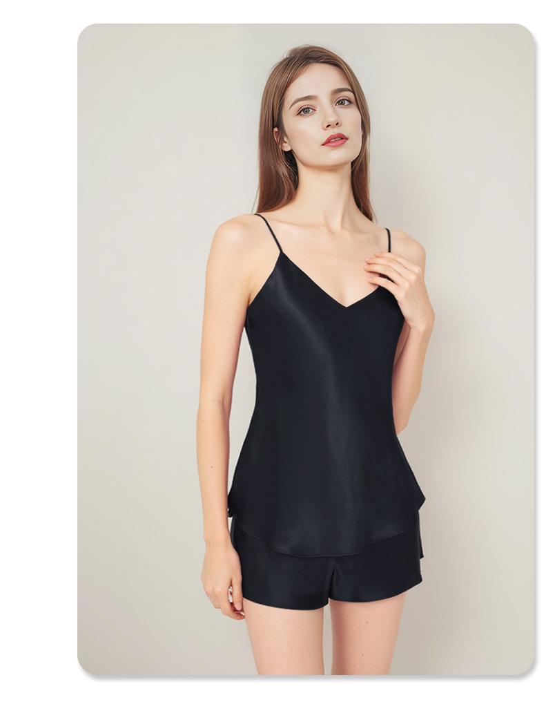 Pijama de Seda de Estilo Sexy de Comercio Exterior para Mujer Verano Seda de Morera Tirantes Shorts Conjunto de Ropa para el Hogar de Dos Piezas Personalización