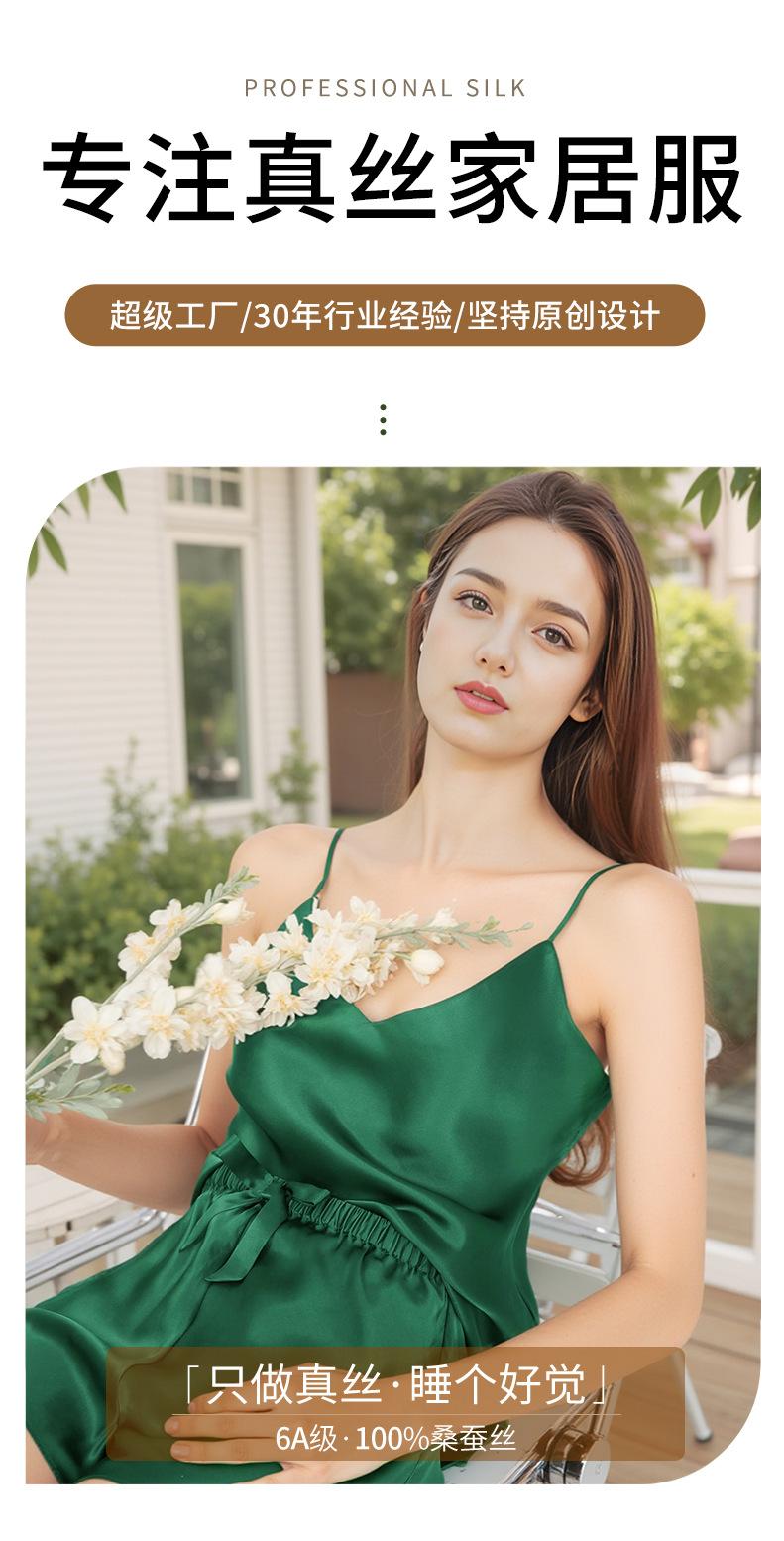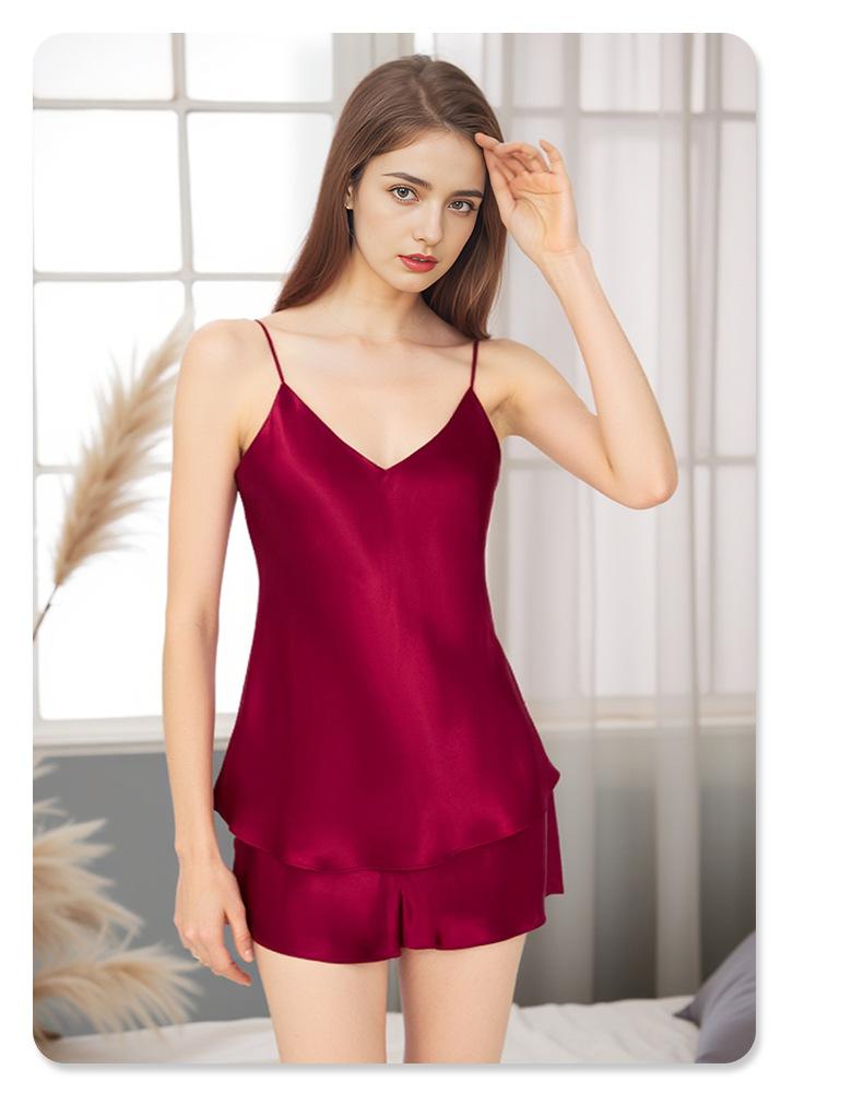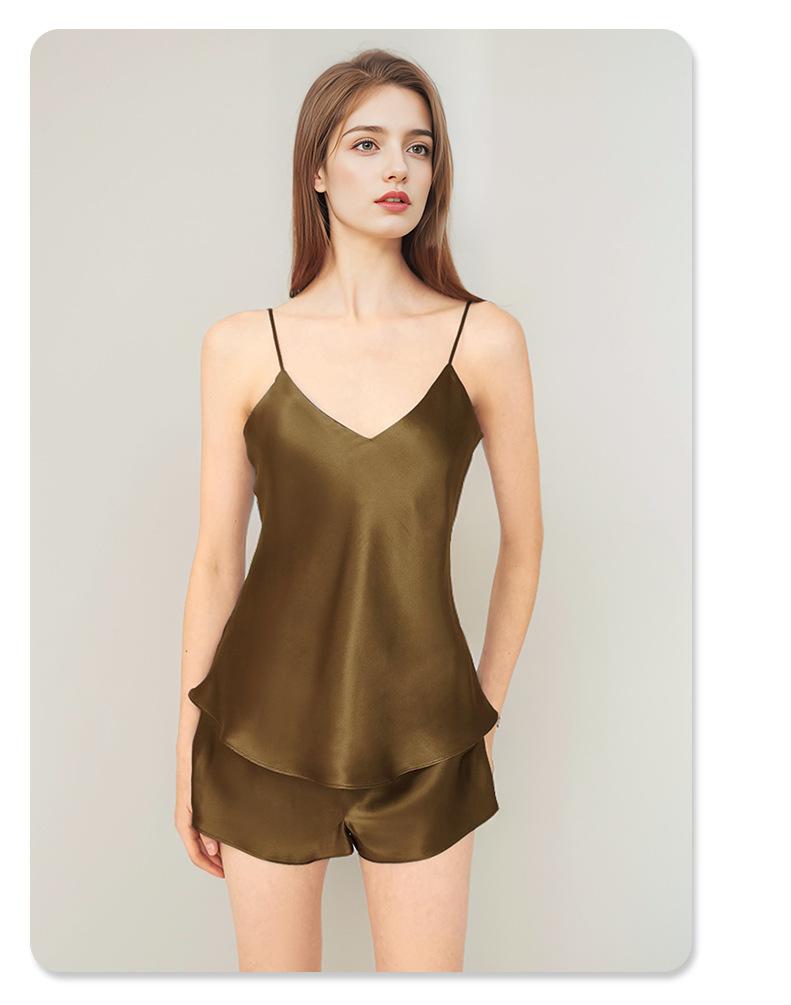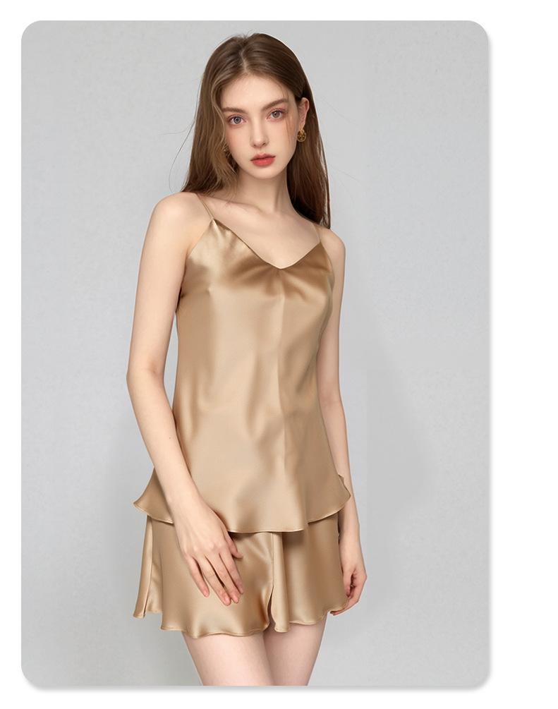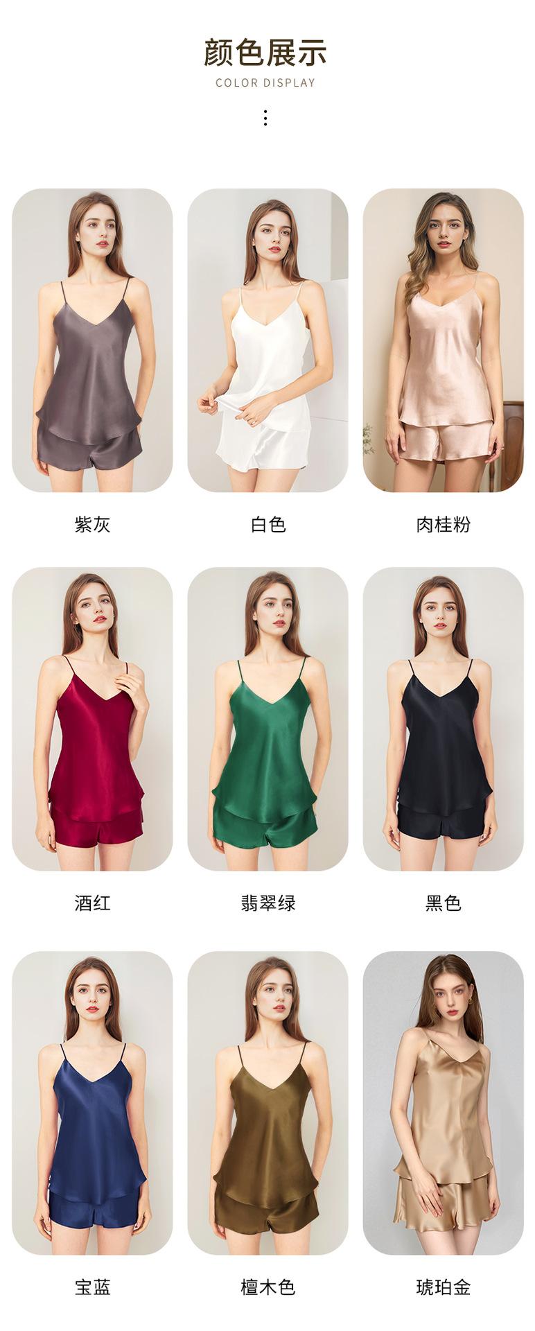 Pijama de Seda de Estilo Sexy de Comercio Exterior para Mujer Verano Seda de Morera Tirantes Shorts Conjunto de Ropa para el Hogar de Dos Piezas Personalización
