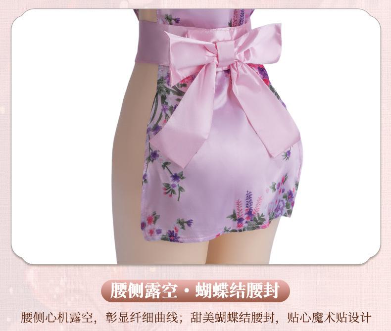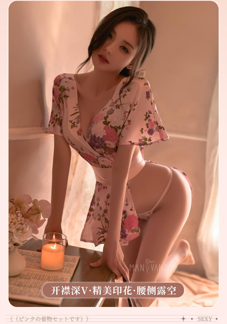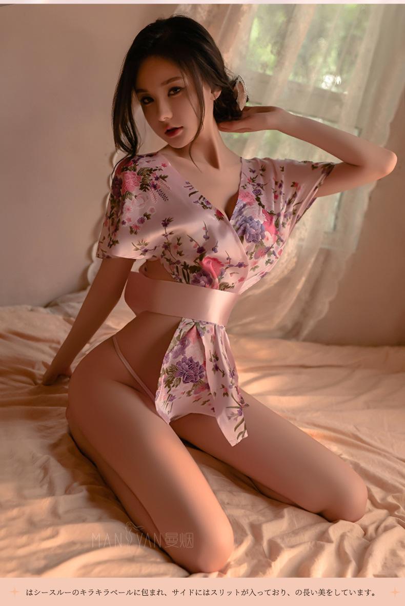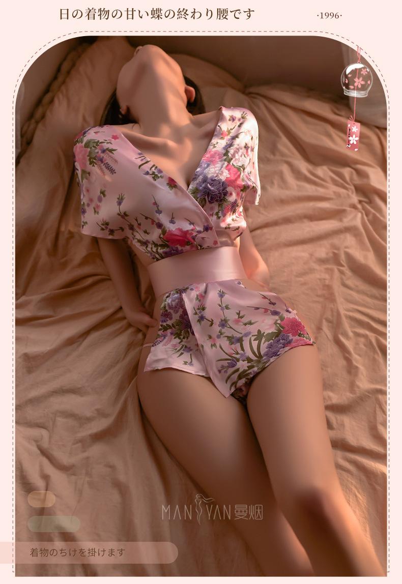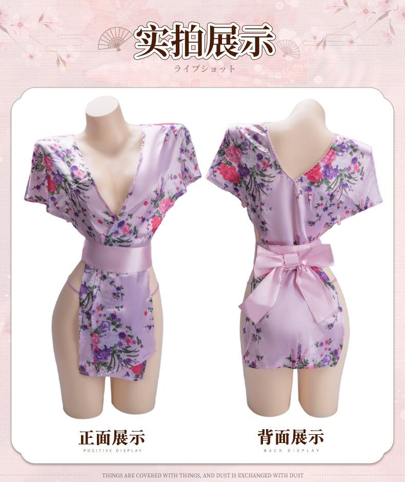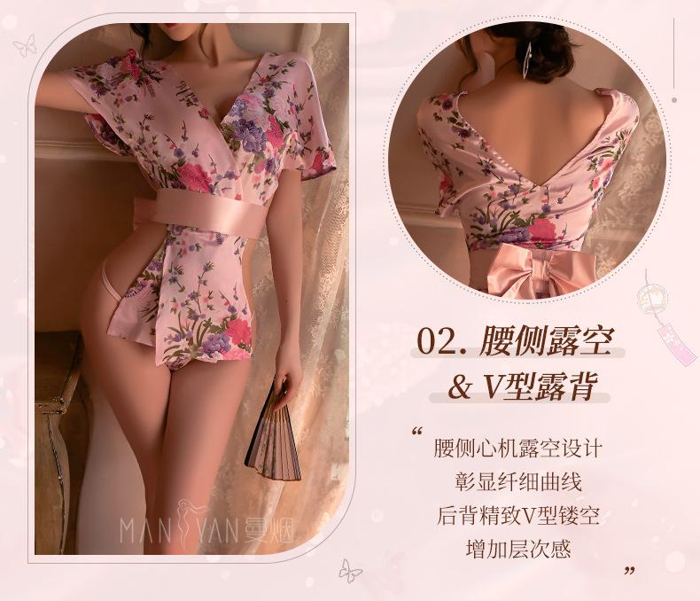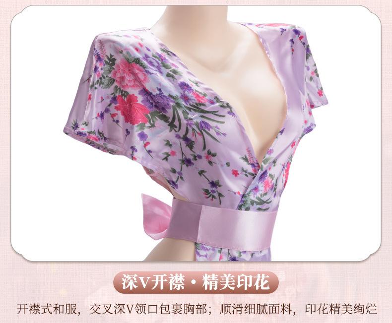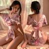 Lencería Sexy para Mujer Sexy Escote en V Profundo Cintura Expuesta Hermosa Espalda Estilo Japonés Cárdigan Estampado Kimono Bata Conjunto 1996